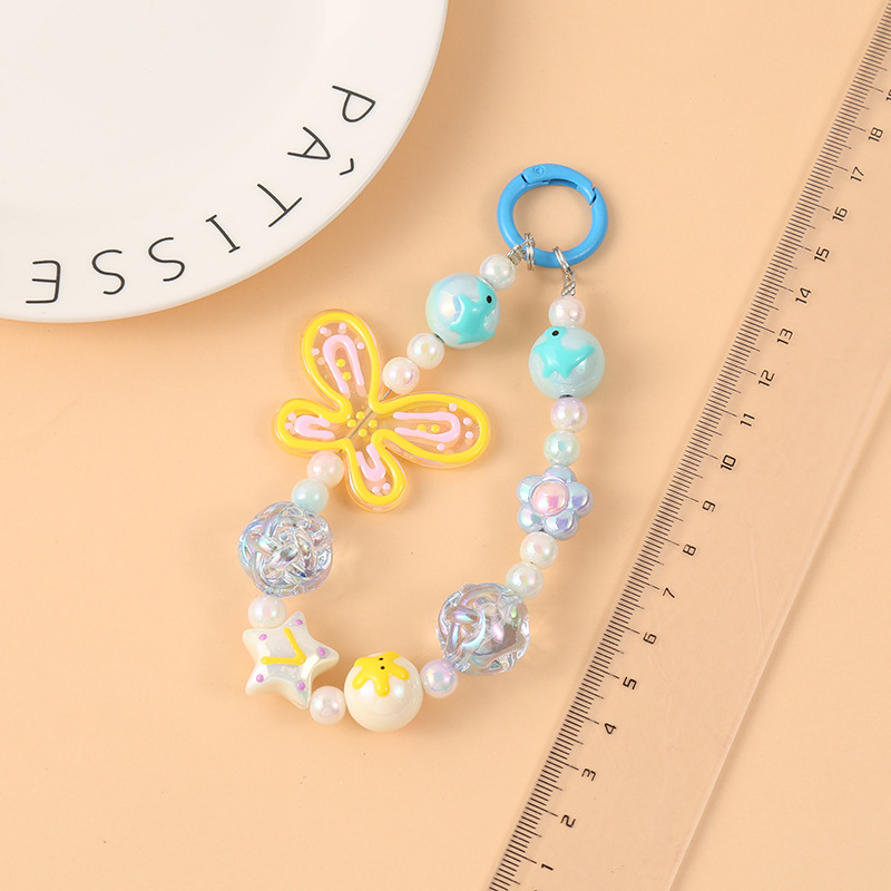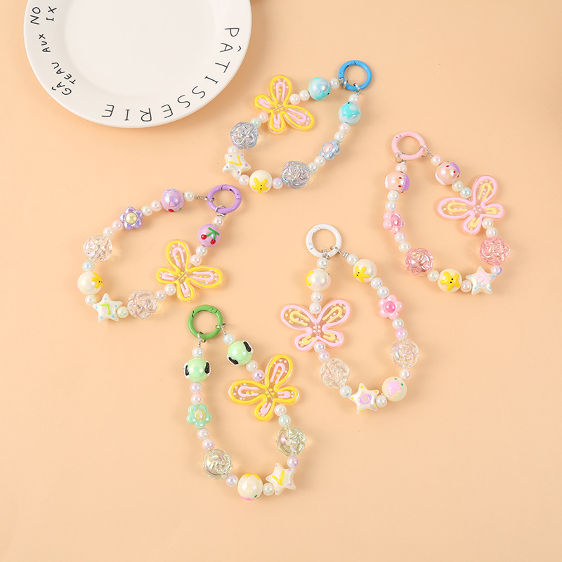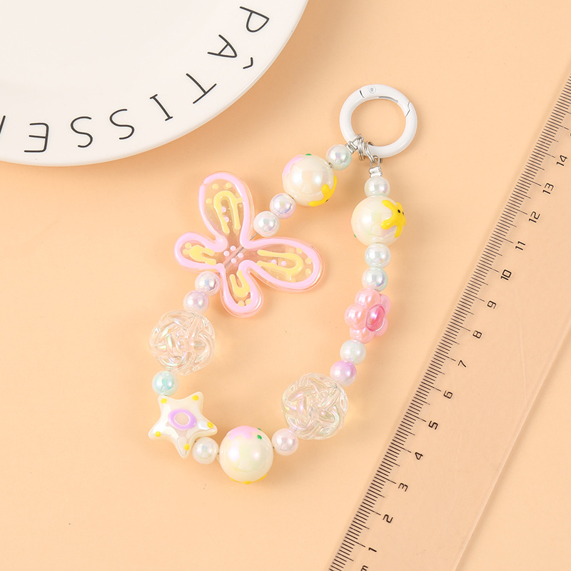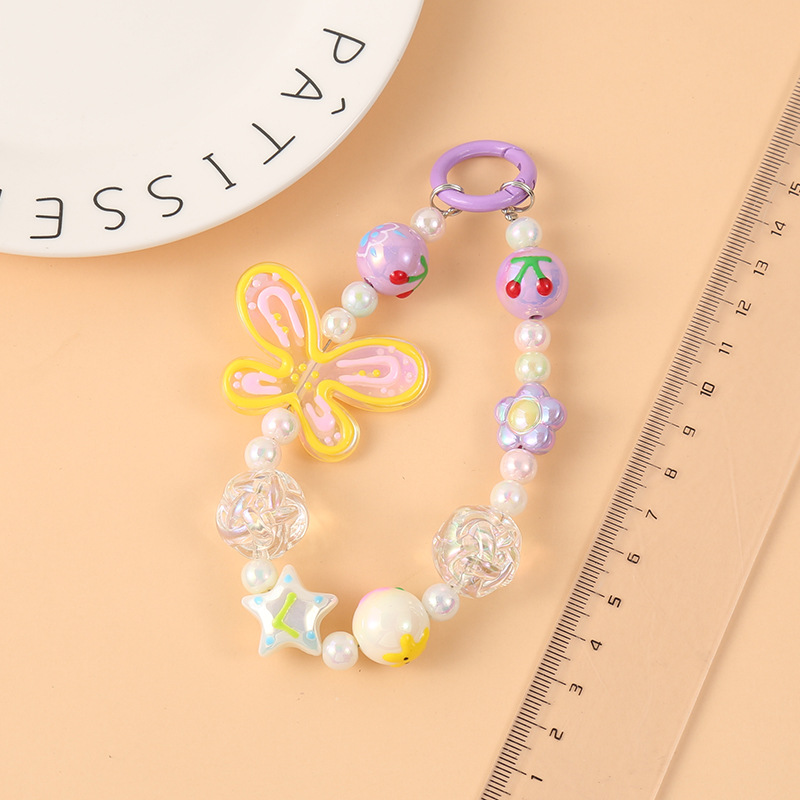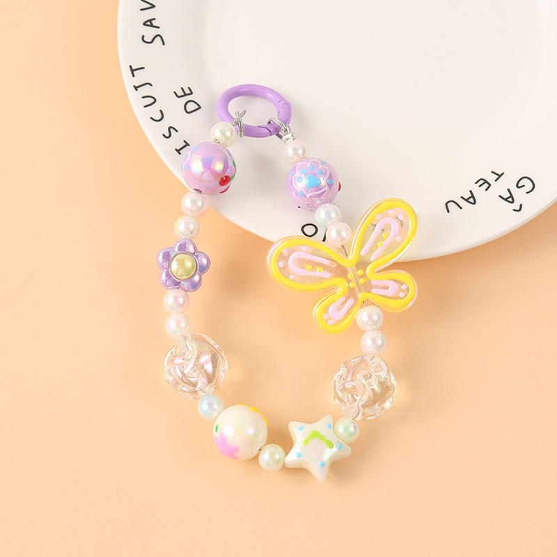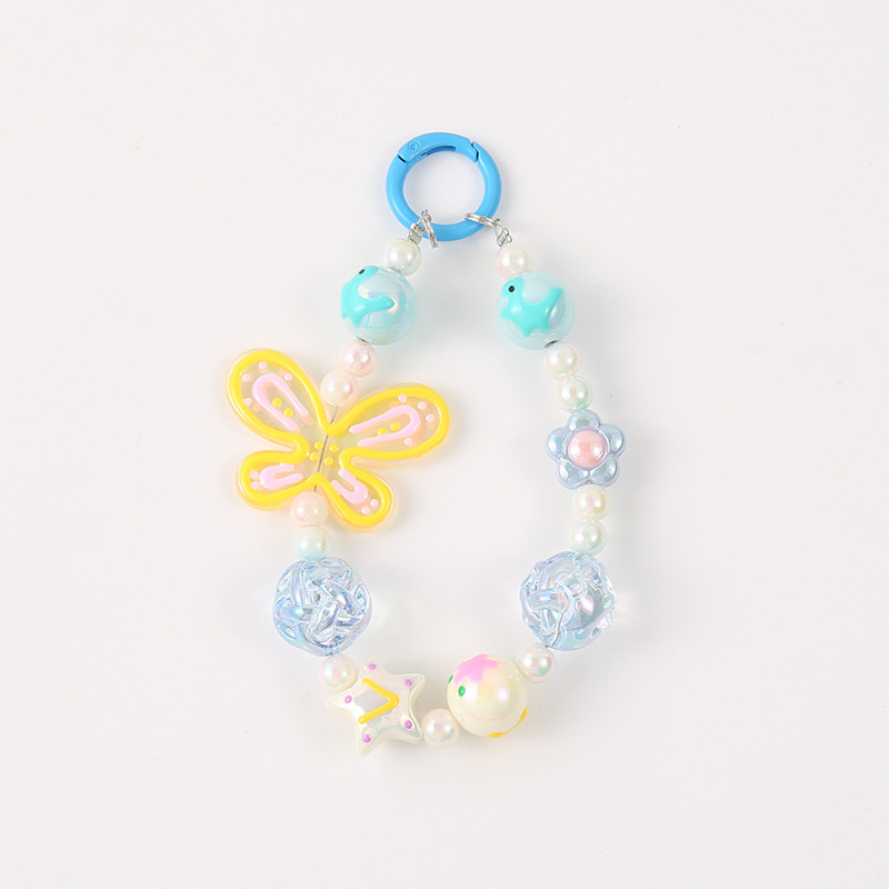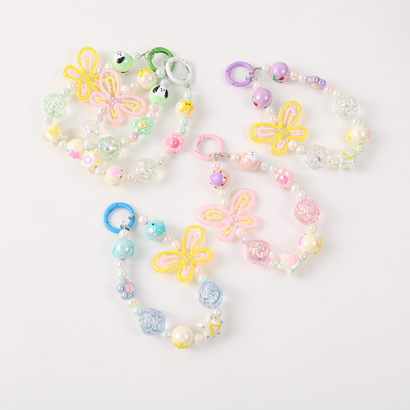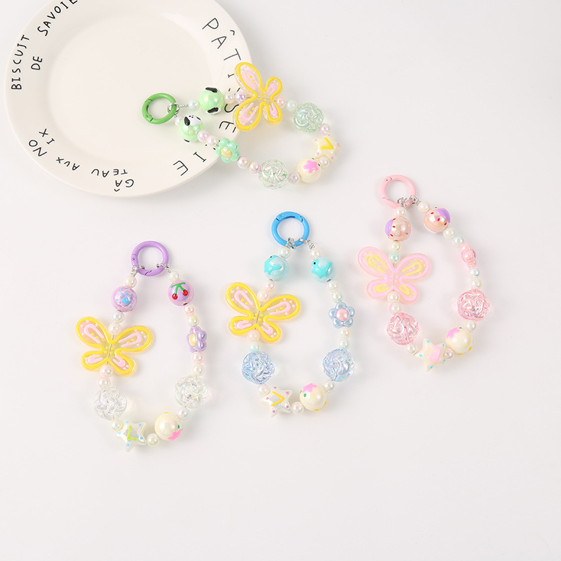 蝴蝶缤纷手机链 爆款手绘珠彩色多巴胺搭配少女挂件diy手机壳链条