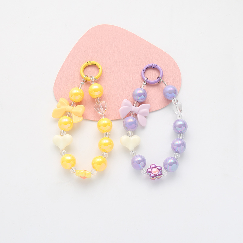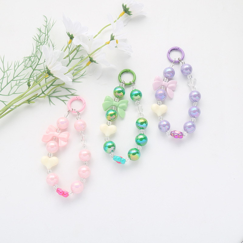 花朵手机链 短款蝴蝶结挂链diy手机壳链条挂饰手提链条挂绳桃心