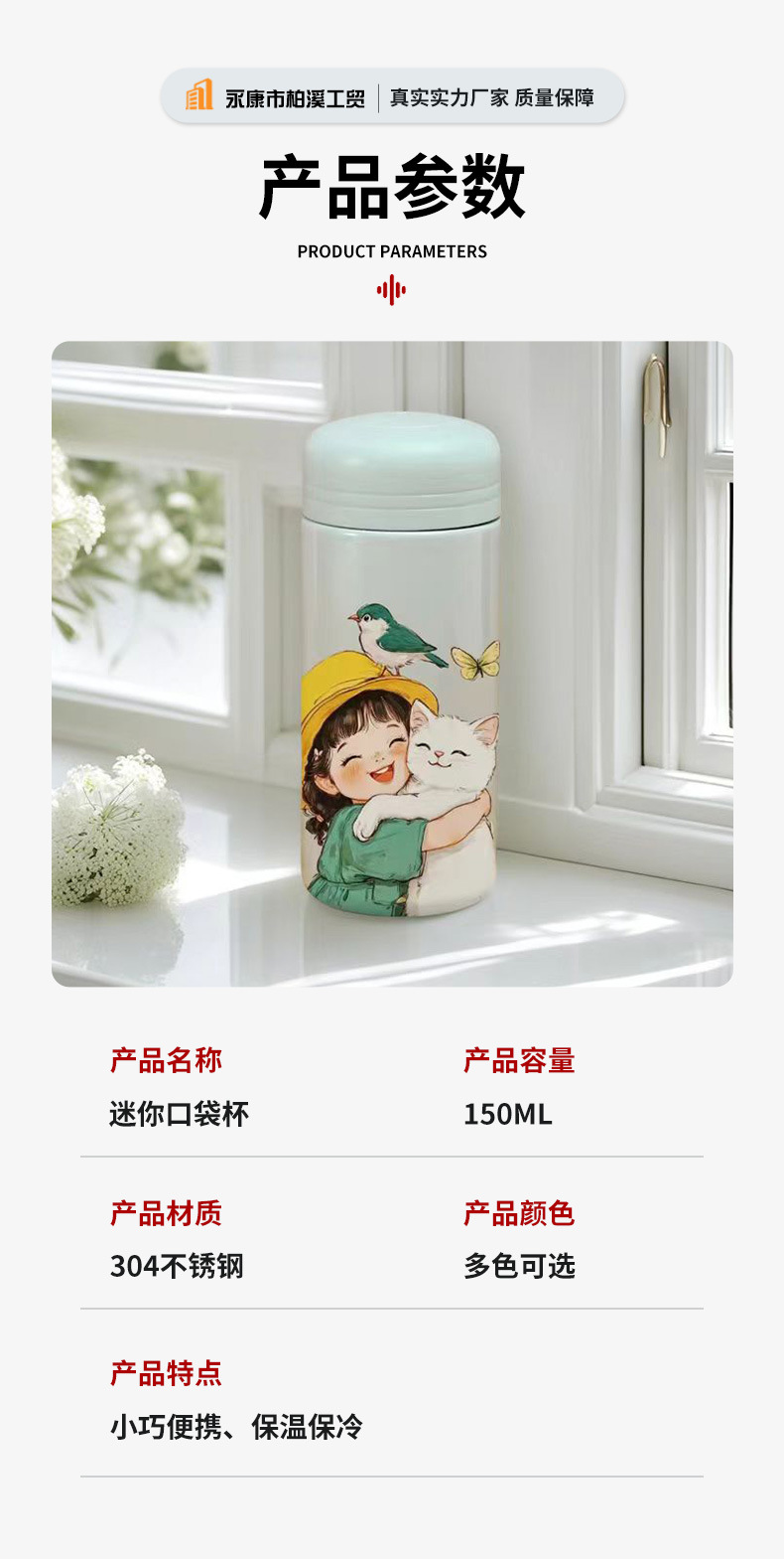 小容量迷你口袋杯304不锈钢水杯简约时尚儿童保温杯随手杯