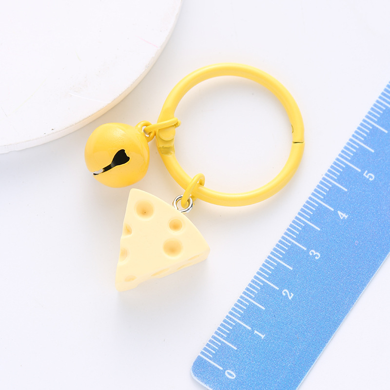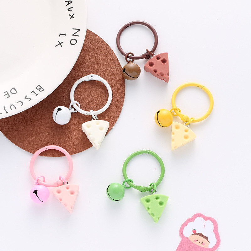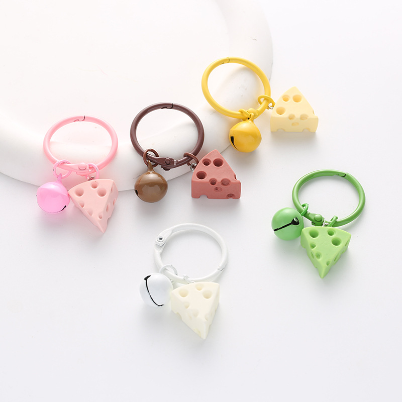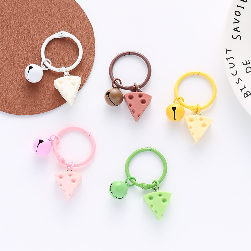 芝士奶酪钥匙扣 创意新款挂件ins糖果色铃铛包包配饰钥匙公仔挂件