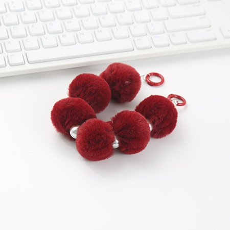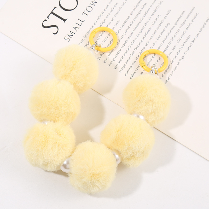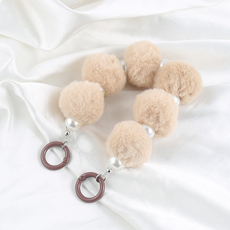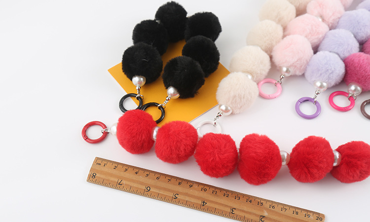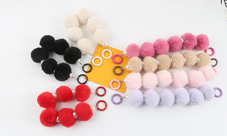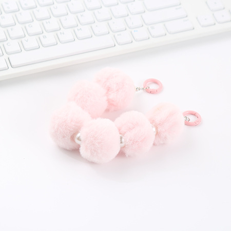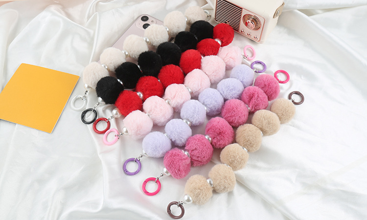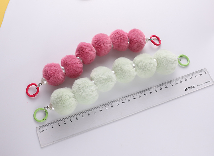 毛球手机链 diy手机壳链条毛绒链条珍珠毛球链条手机挂饰饰品