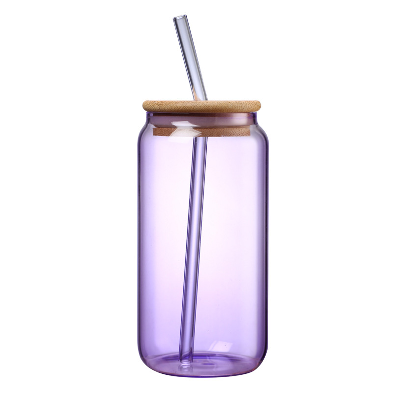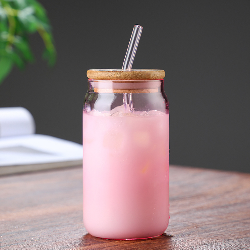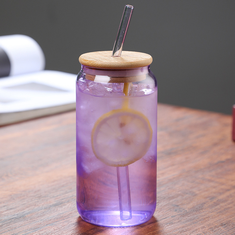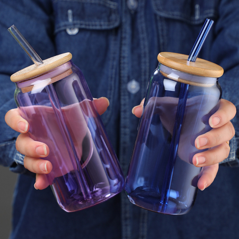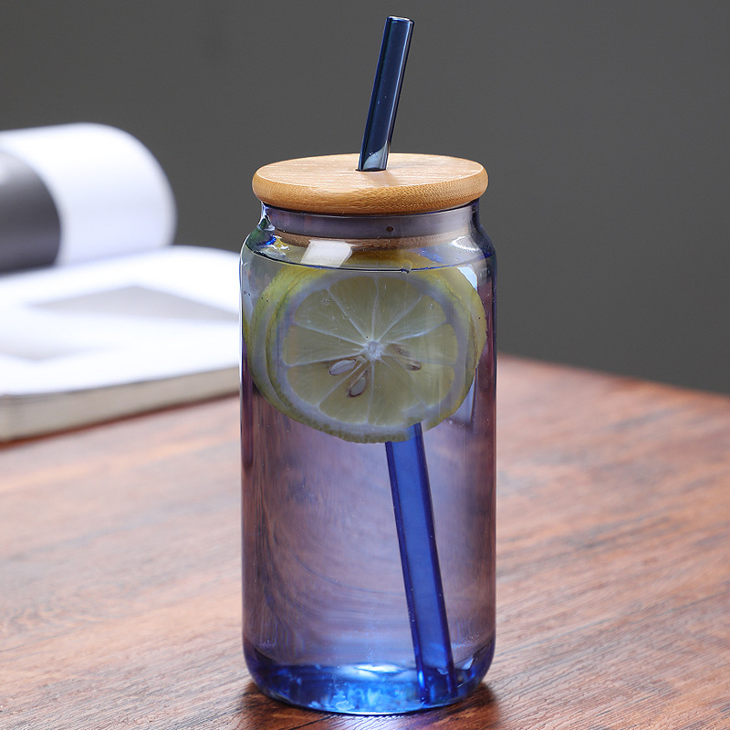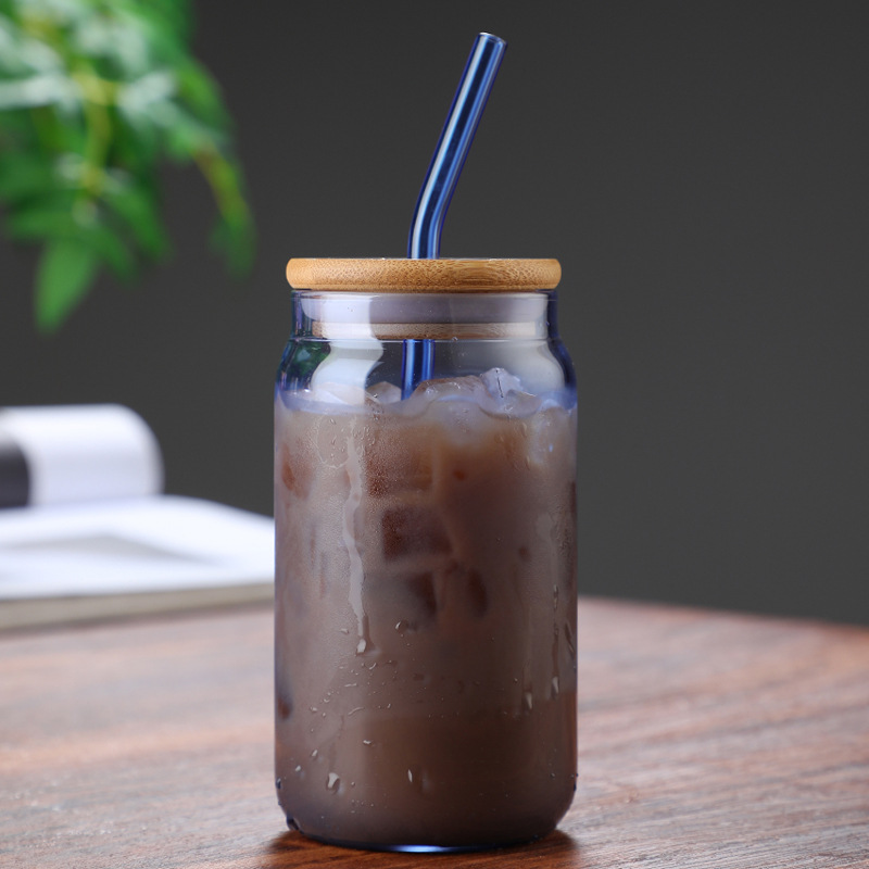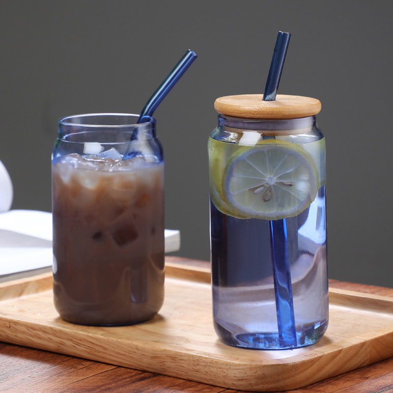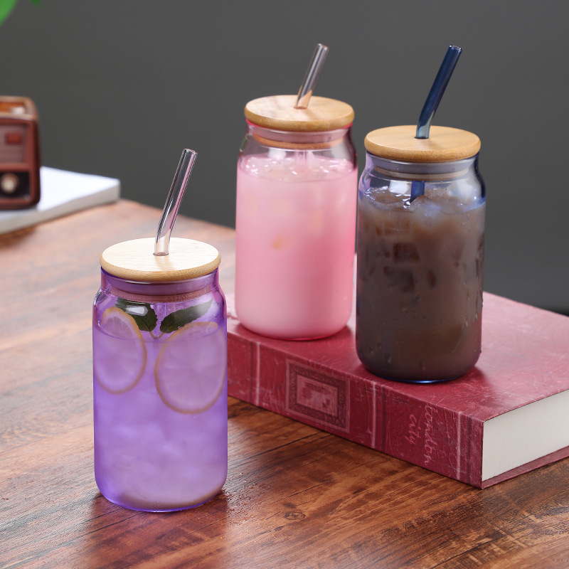 彩色带盖吸管杯玻璃高硼硅耐热玻璃杯高颜值奶茶咖啡可乐杯