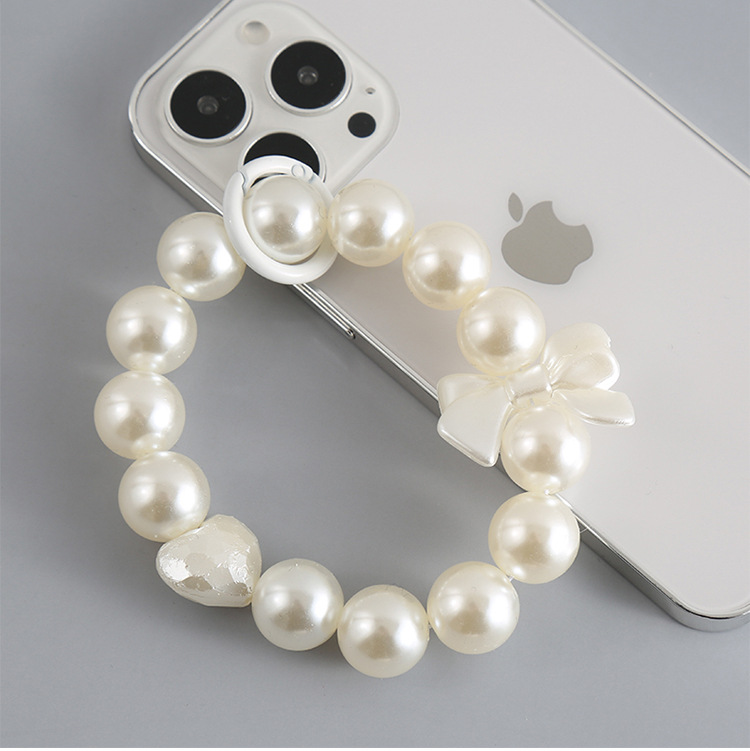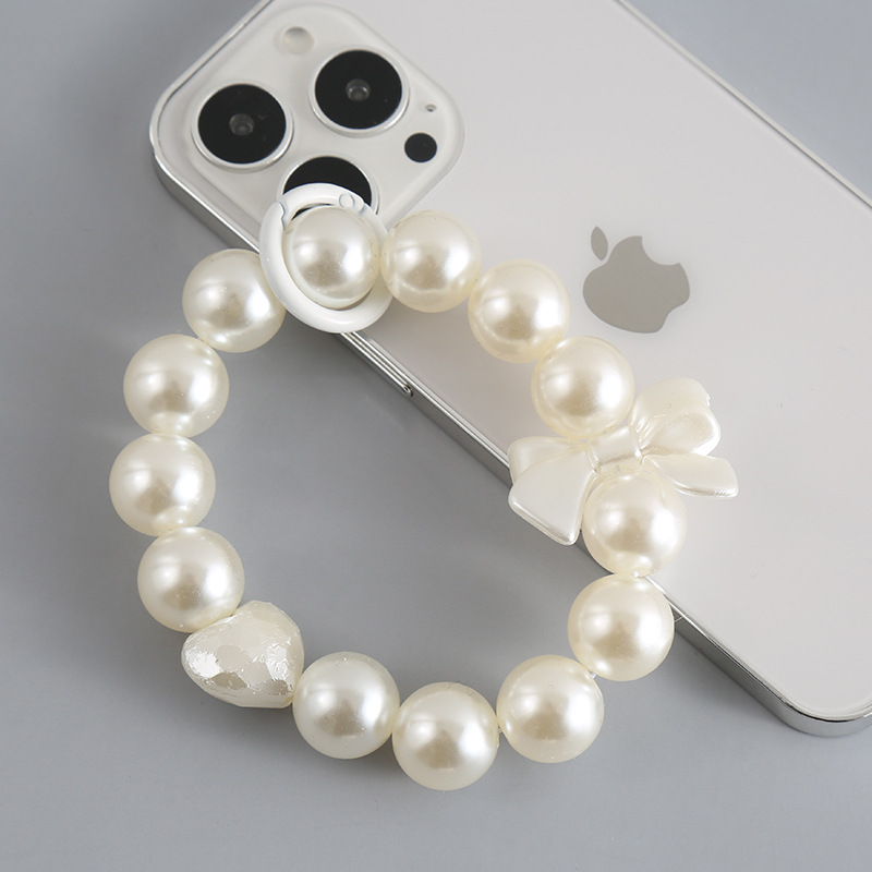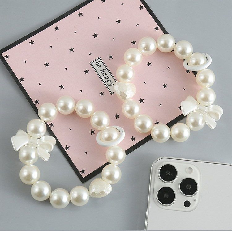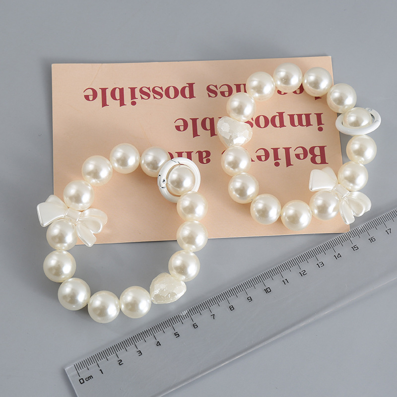 蝴蝶结珍珠手环挂件 diy手机壳链条手工串珠珍珠桃心挂饰链