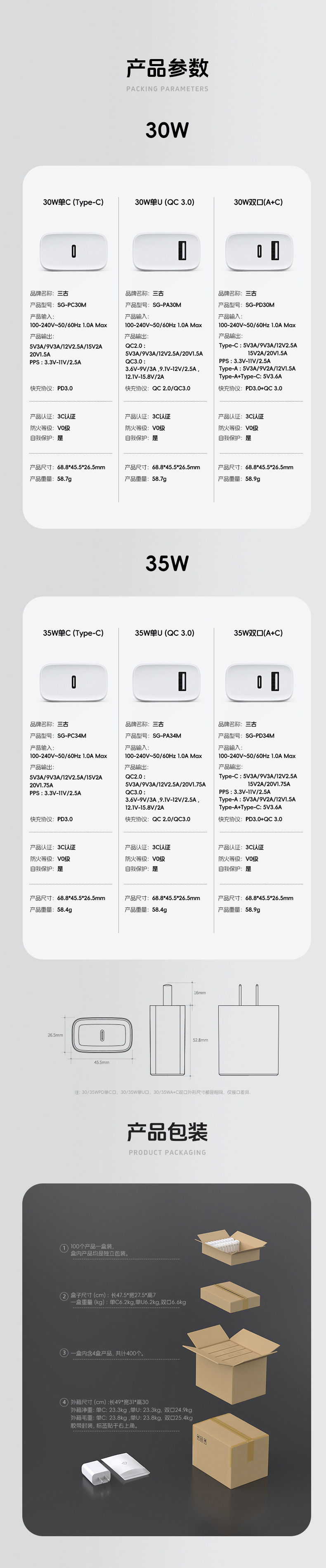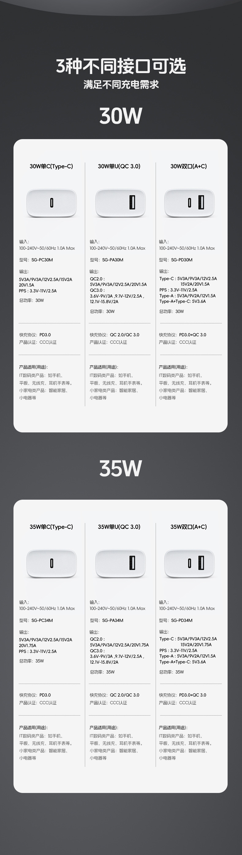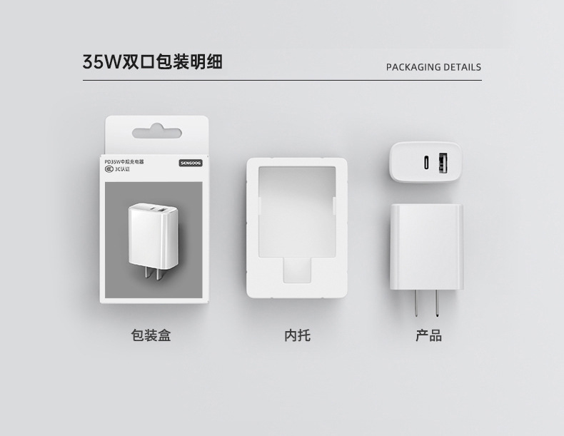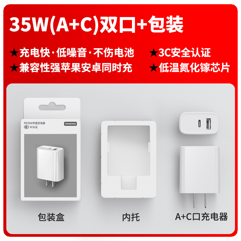 35W氮化镓PD充电头30W快充3c认证适用无线充充电器手机快充充电器