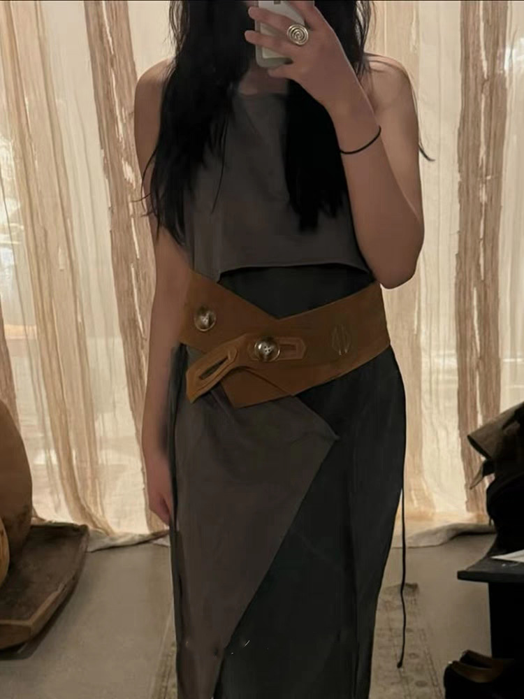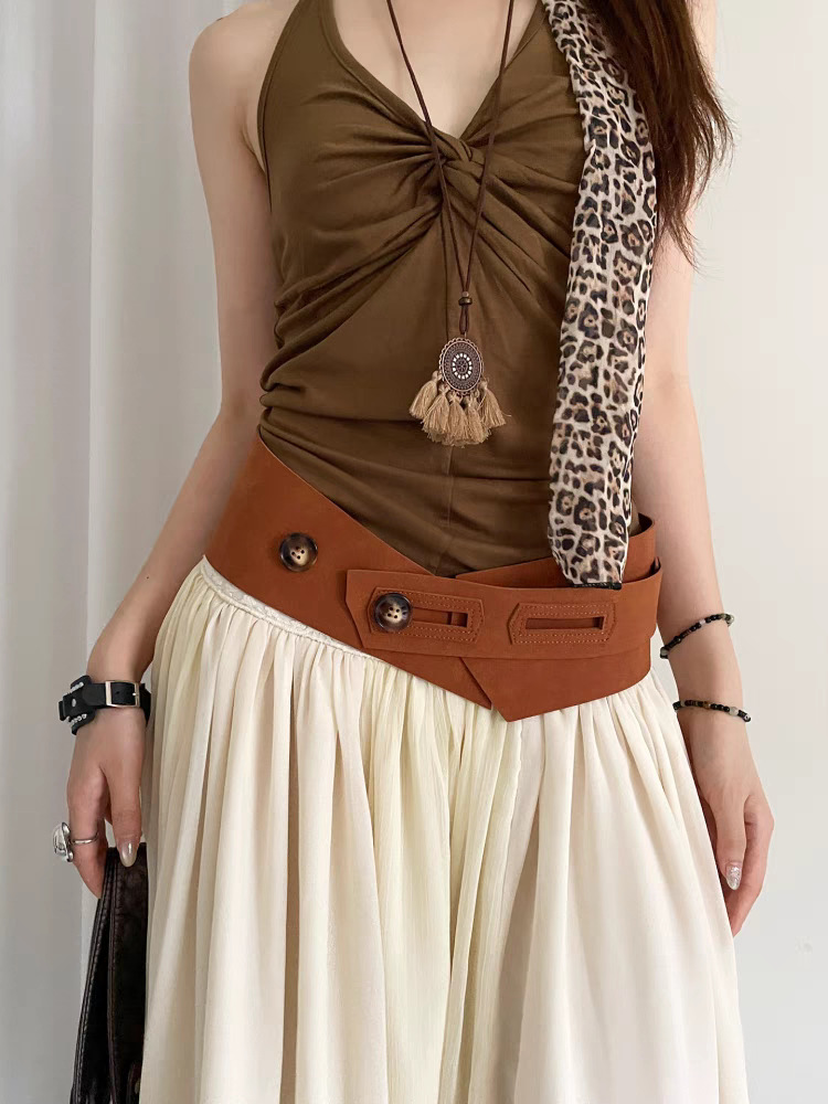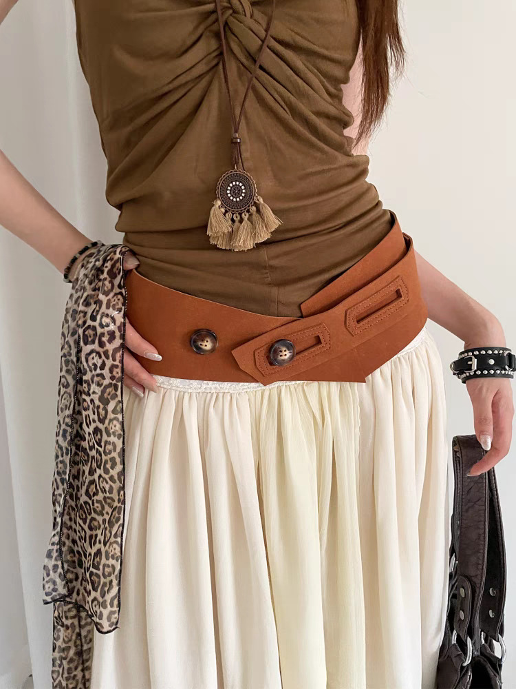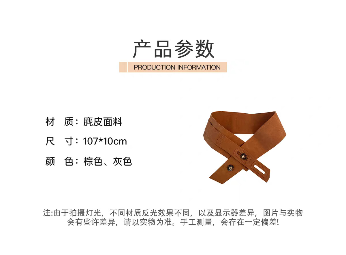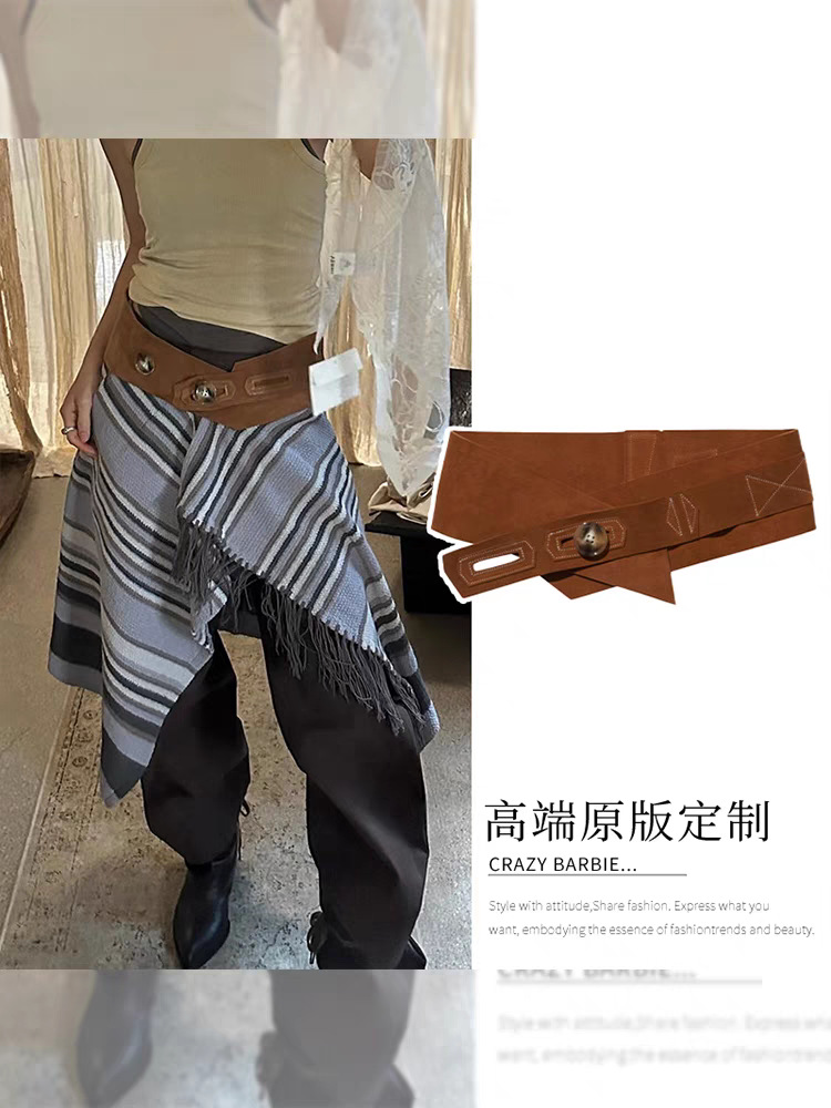 古典美式钮扣款腰带 拼接复古腰间装饰皮带 仿麂皮绒韩系腰封腰带
