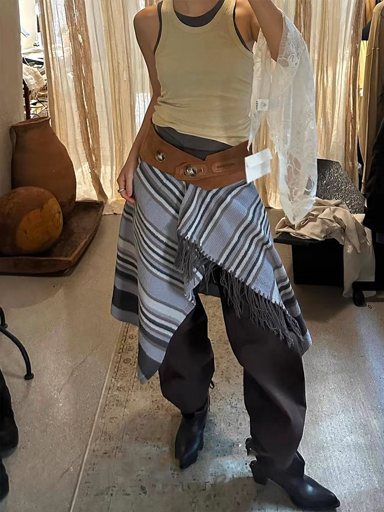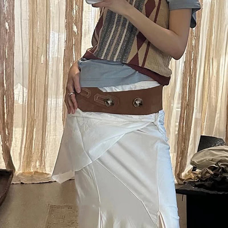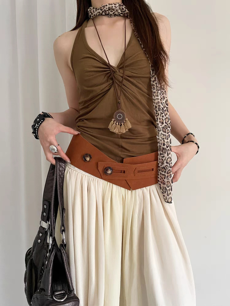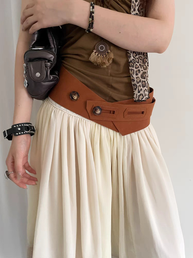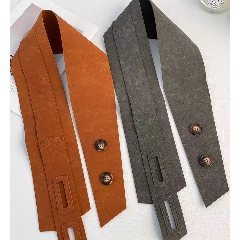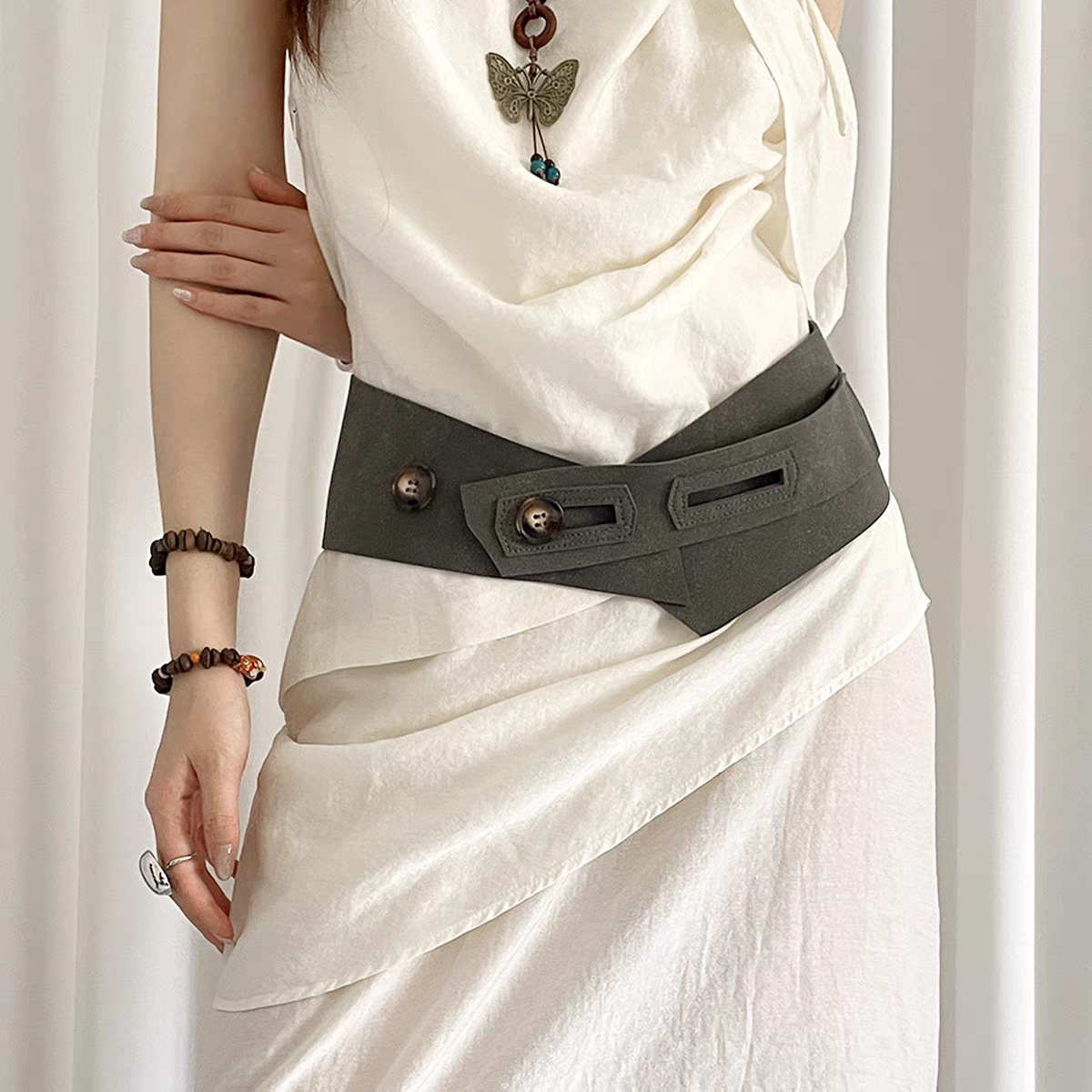 古典美式钮扣款腰带 拼接复古腰间装饰皮带 仿麂皮绒韩系腰封腰带