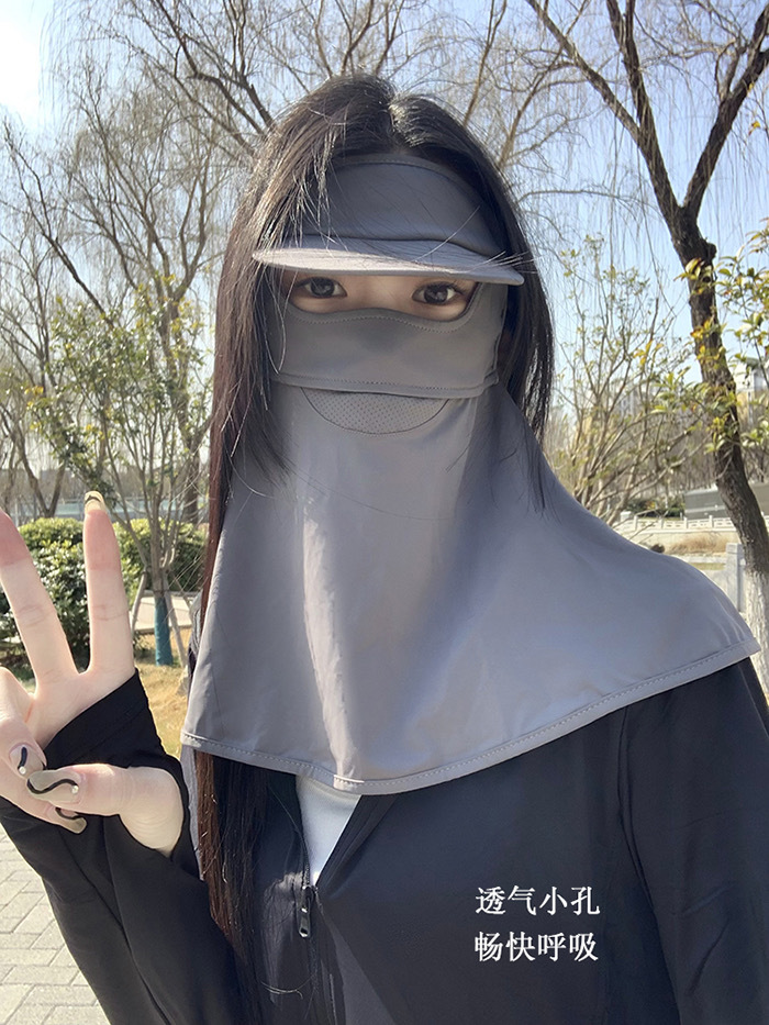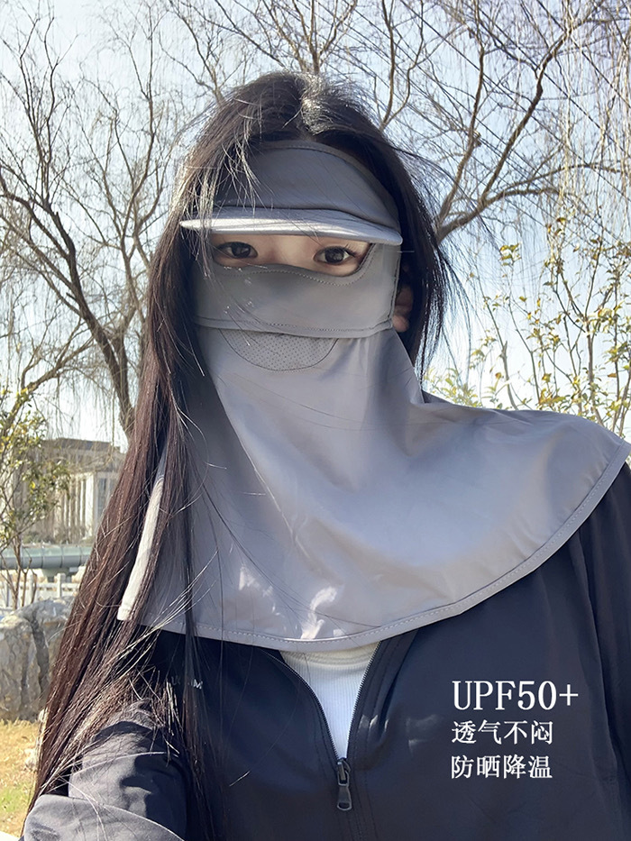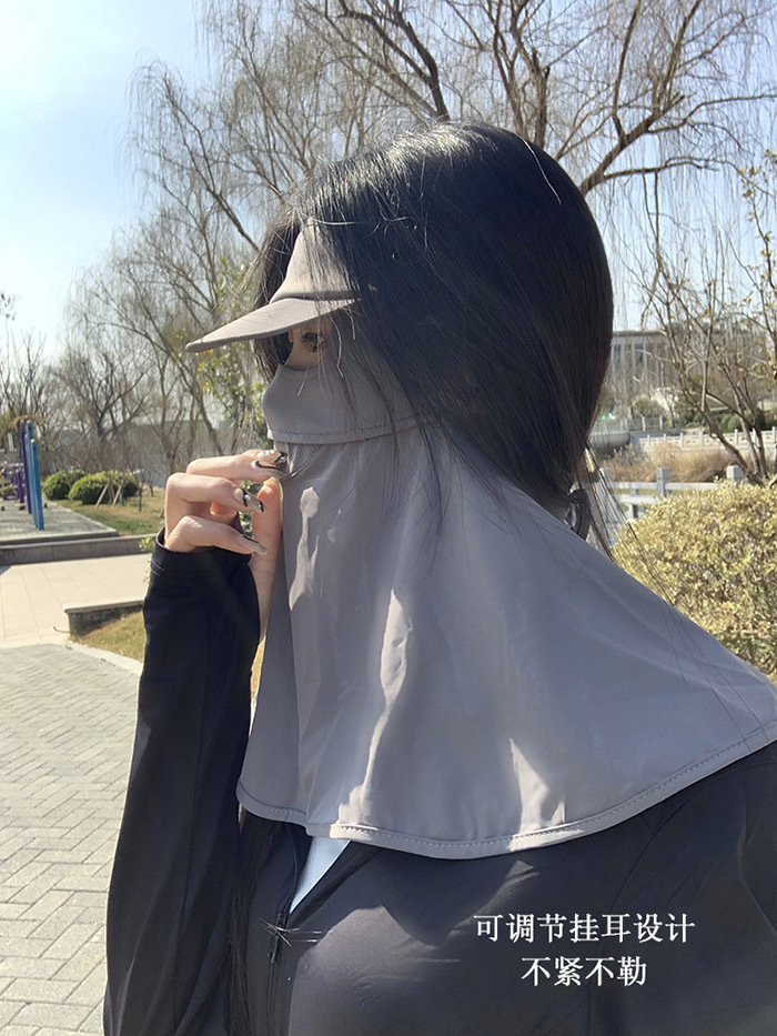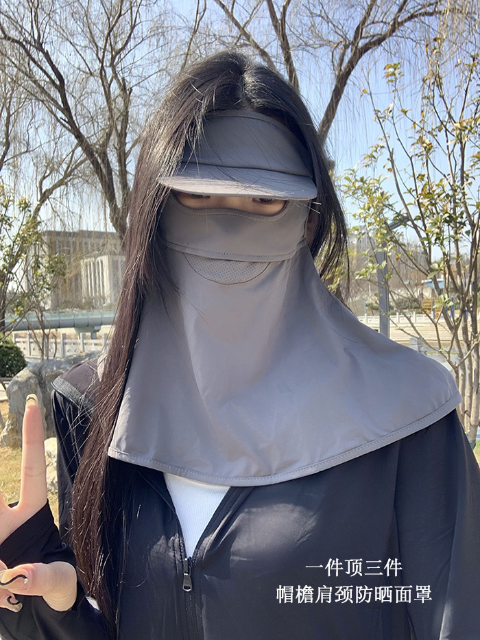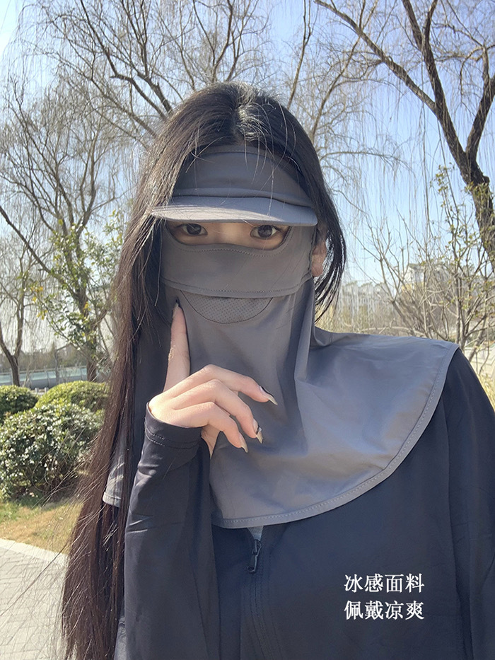 冰丝防晒面罩护颈一体遮阳帽檐子全脸脖子防紫外线夏季薄款透气女