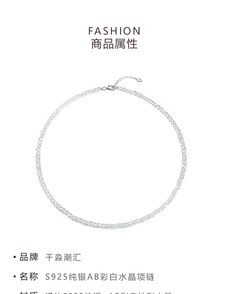 新款推荐 发光多彩施华洛水晶项链纯银925轻奢质感叠戴锁骨链夏季