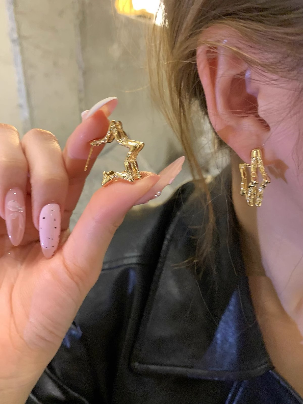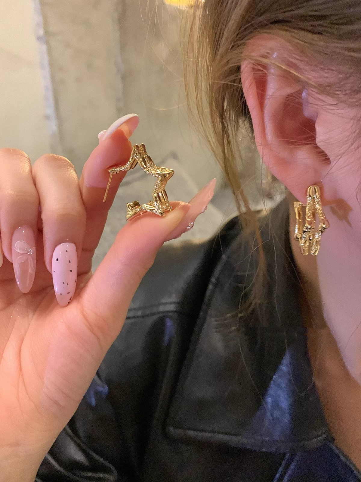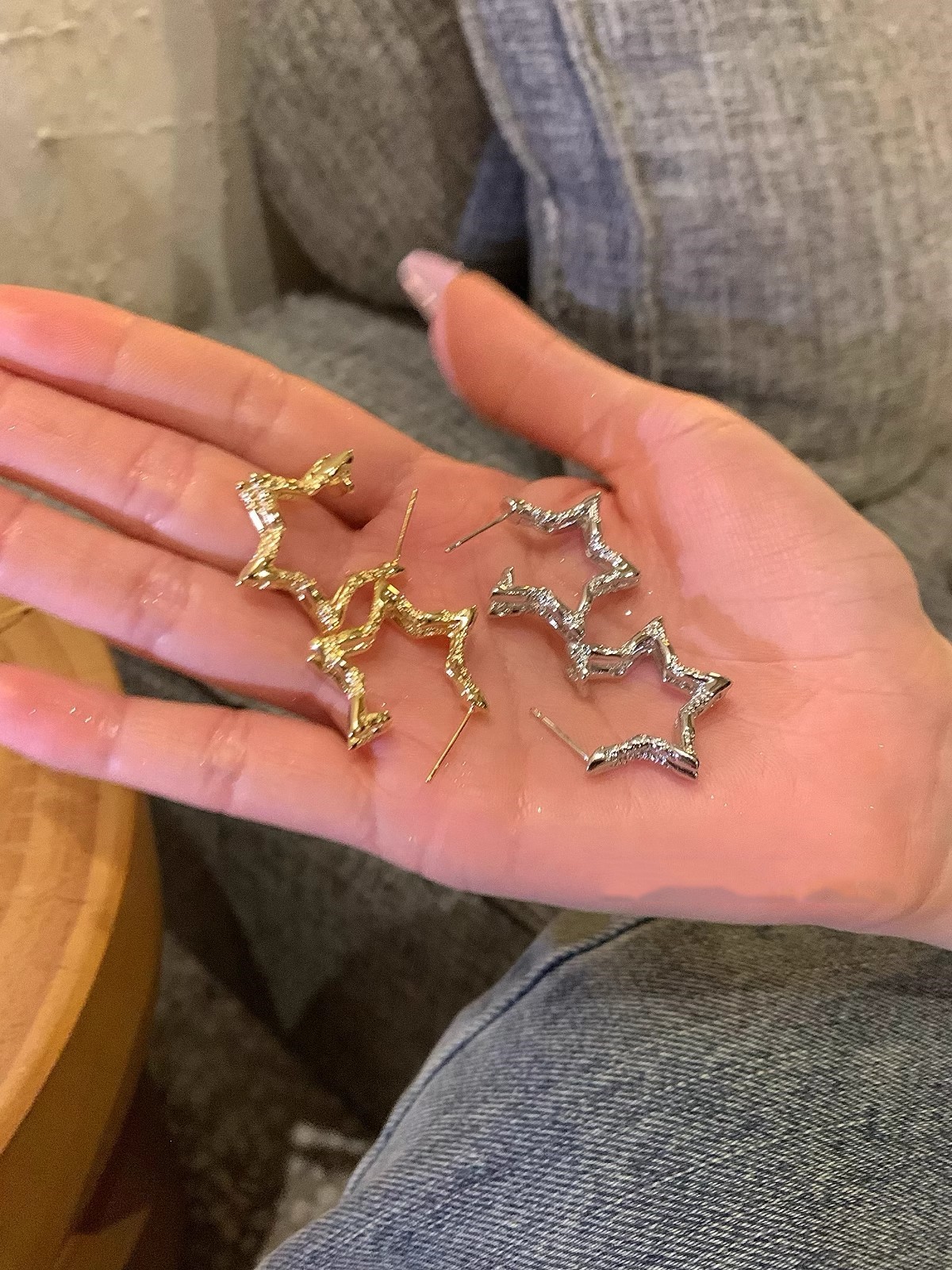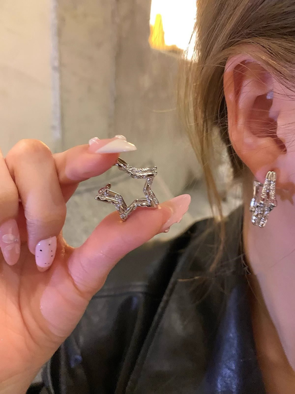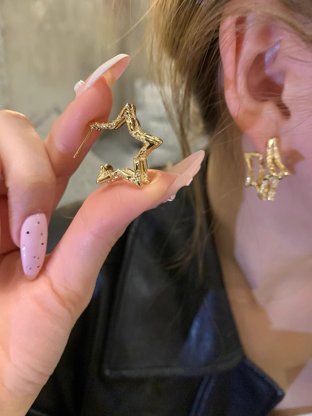 极简金属爆款五角星耳环女2025年新款耳钉冷淡风耳饰独特气质耳圈
