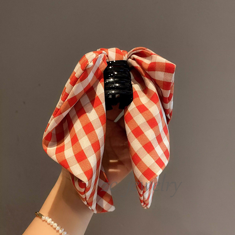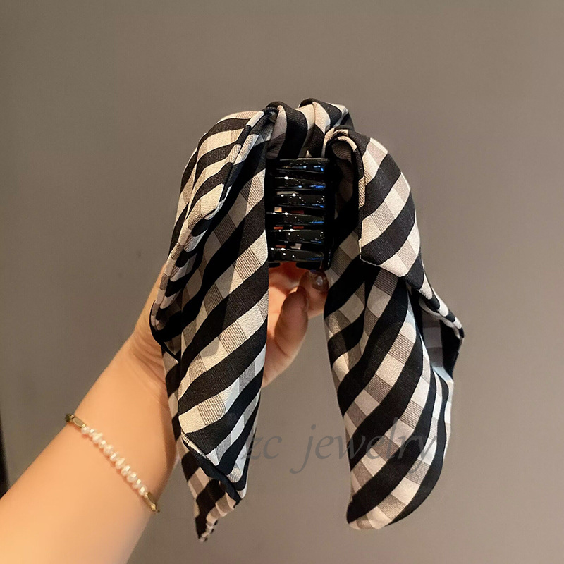 韩版高级感撞色棋盘格蝴蝶结马尾夹女时尚气质后脑勺发卡2024发饰