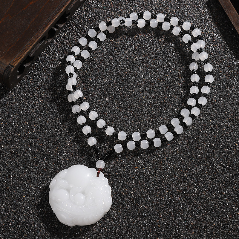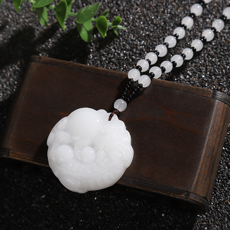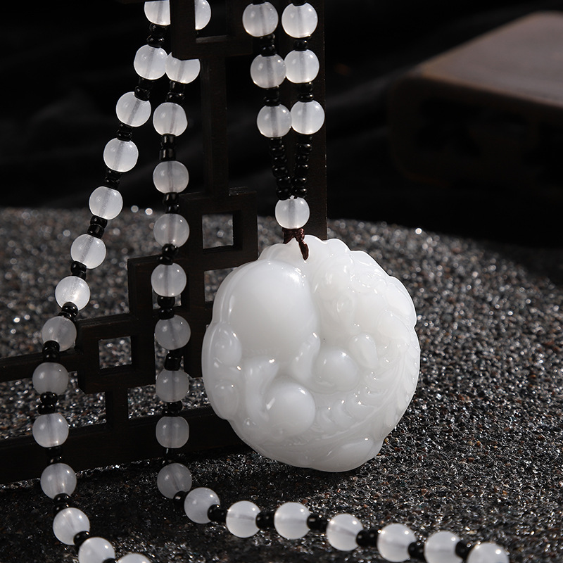 直播专供热卖复古时尚仿汉白玉仿阿富汗玉貔貅吊坠挂件项链毛衣链