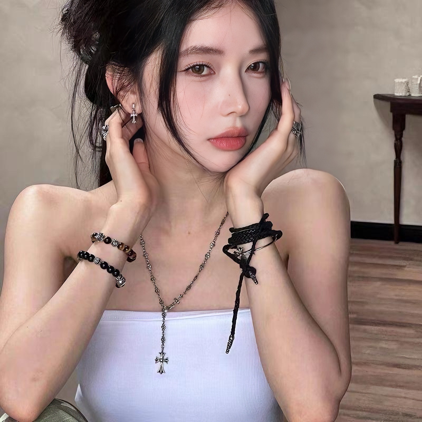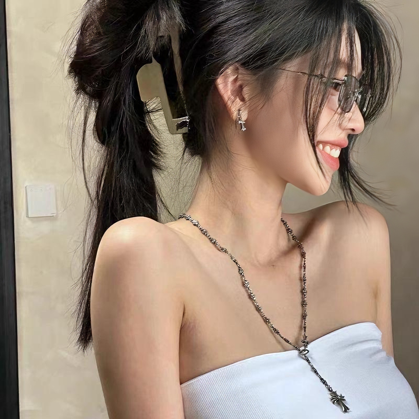 冷淡风十字架项链个性时尚街头潮流长款流苏吊坠爆款锁骨链choker