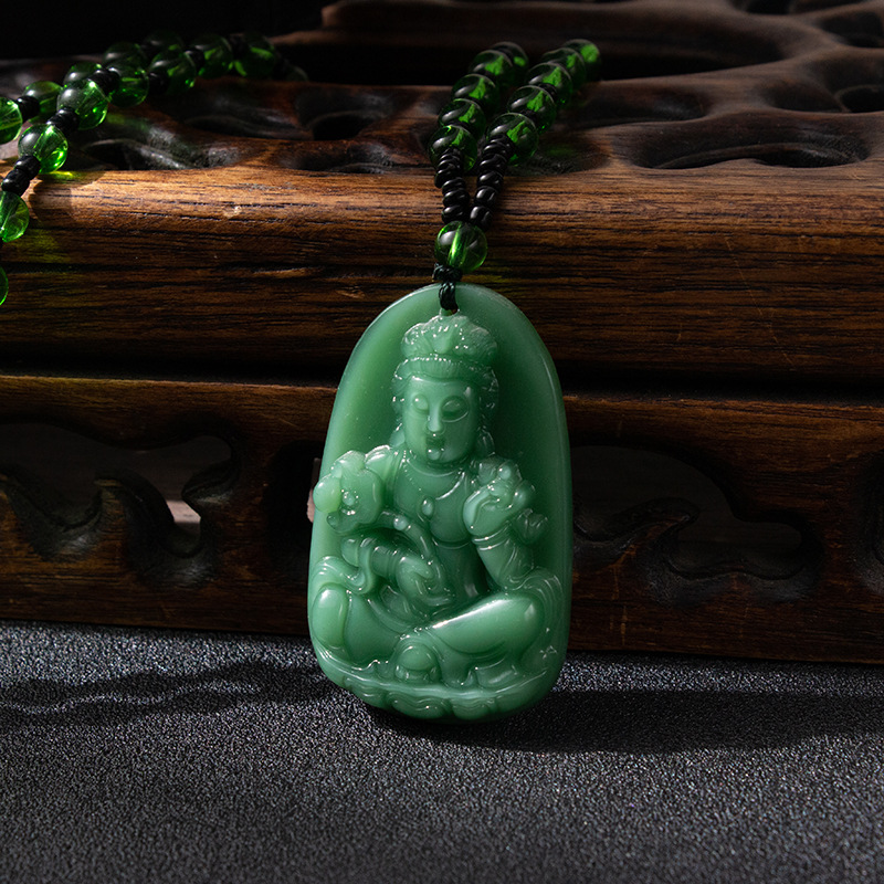 仿玉观音佛绿玉毛衣链民族风玉髓马来玉串珠毛衣链草绿项链绳玉绳
