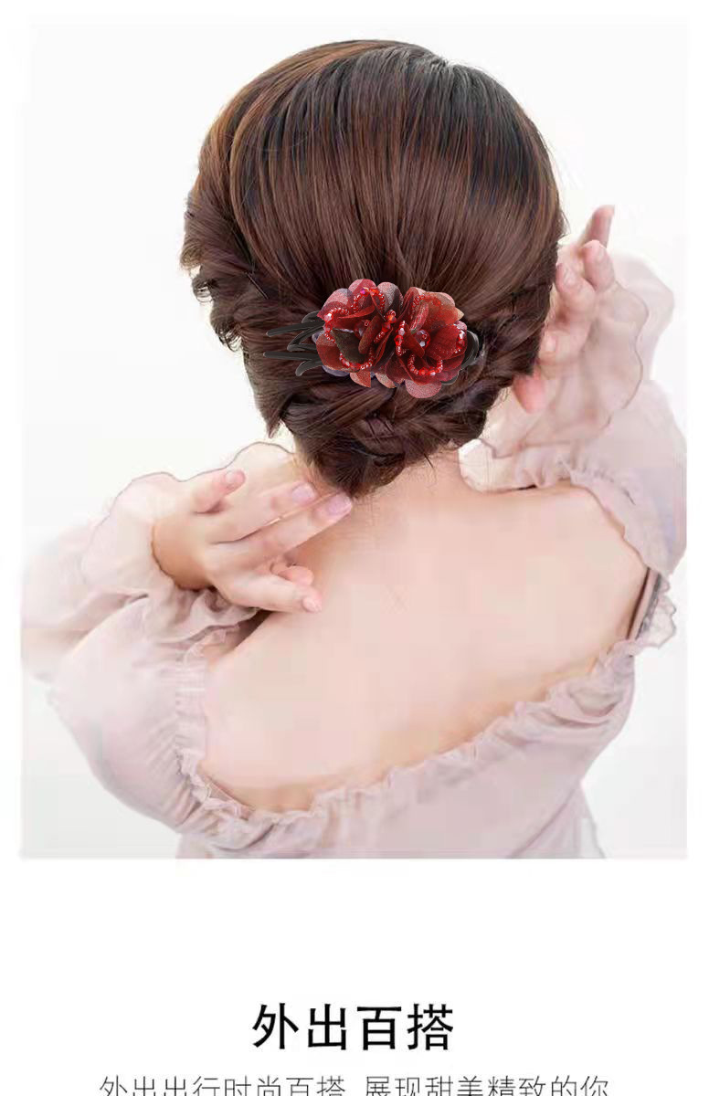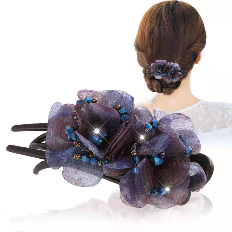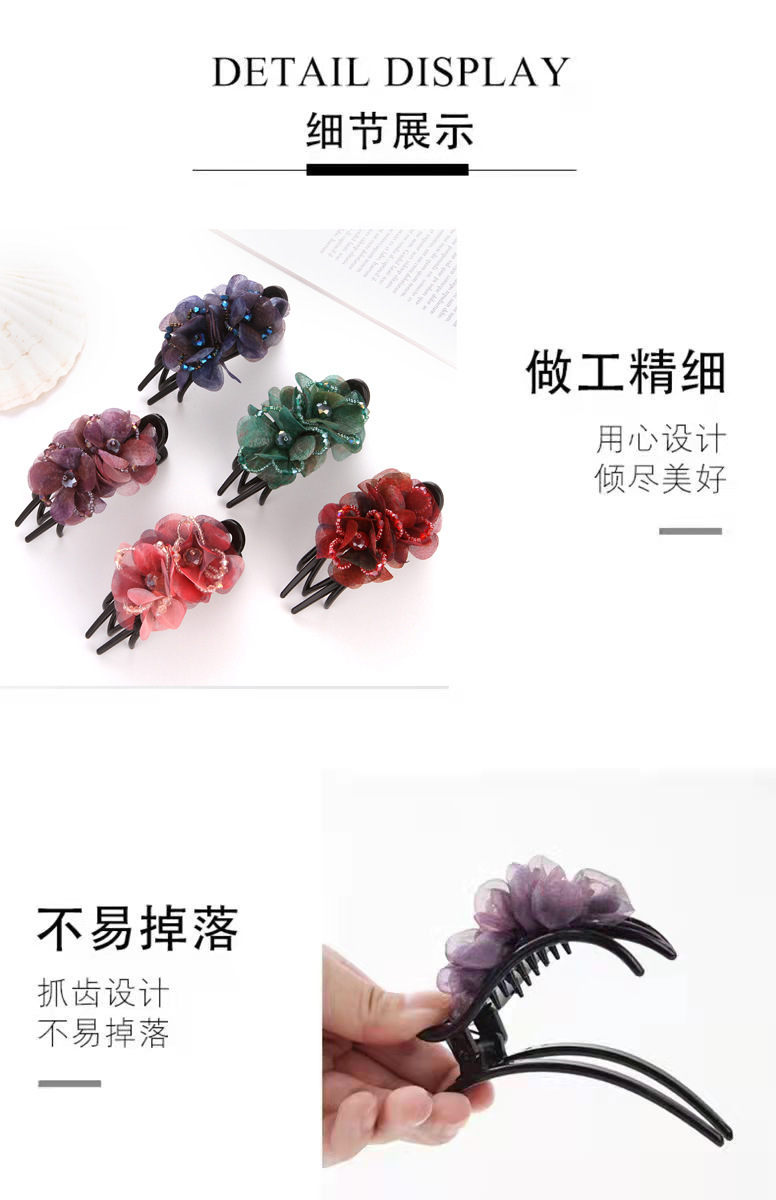 新款鸭嘴夹发饰气质玫瑰花朵绢纱水晶高档扎头发盘发马尾抓夹头饰