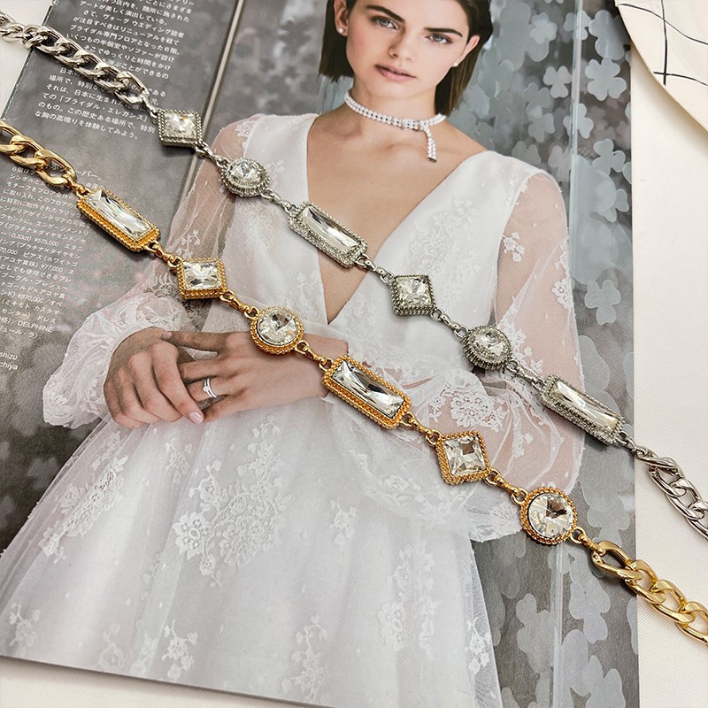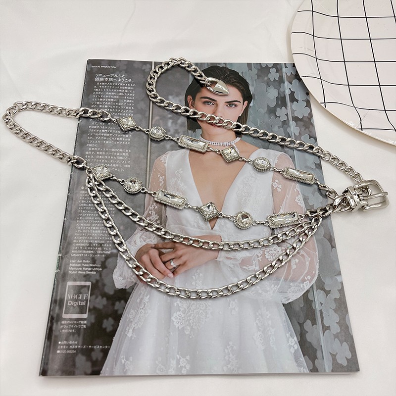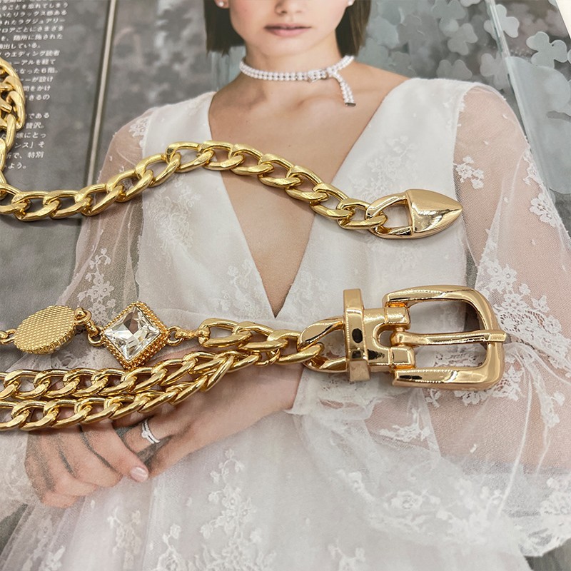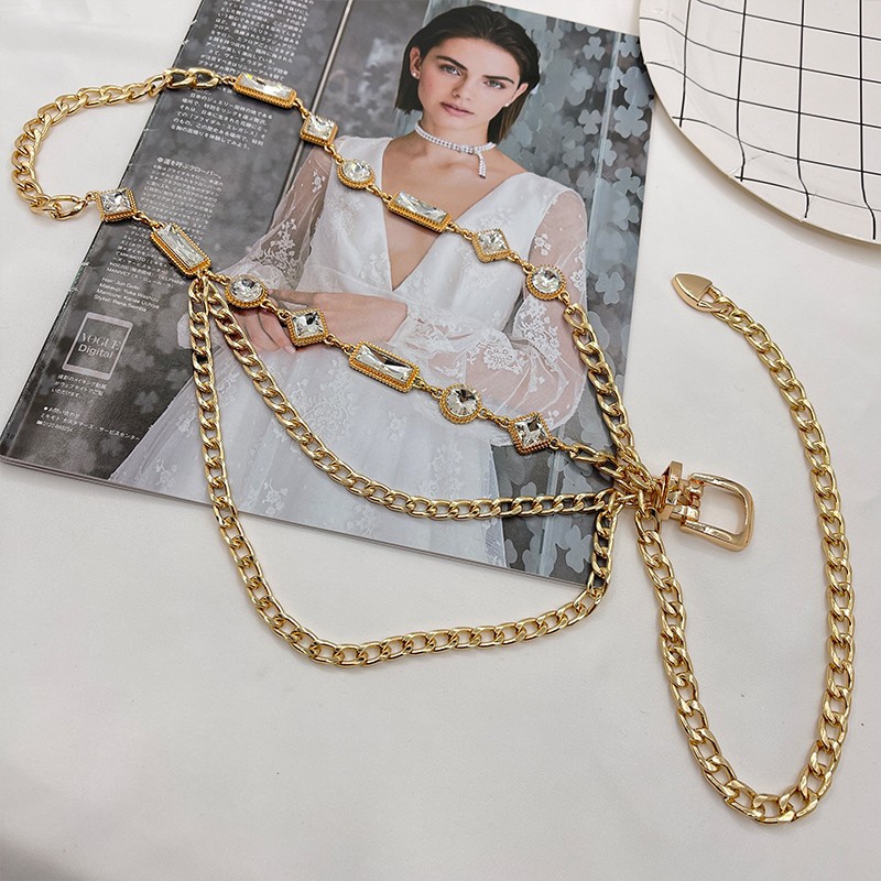 跨境高级感小香风腰链配饰女时尚百搭金属多层链条束腰水钻腰带