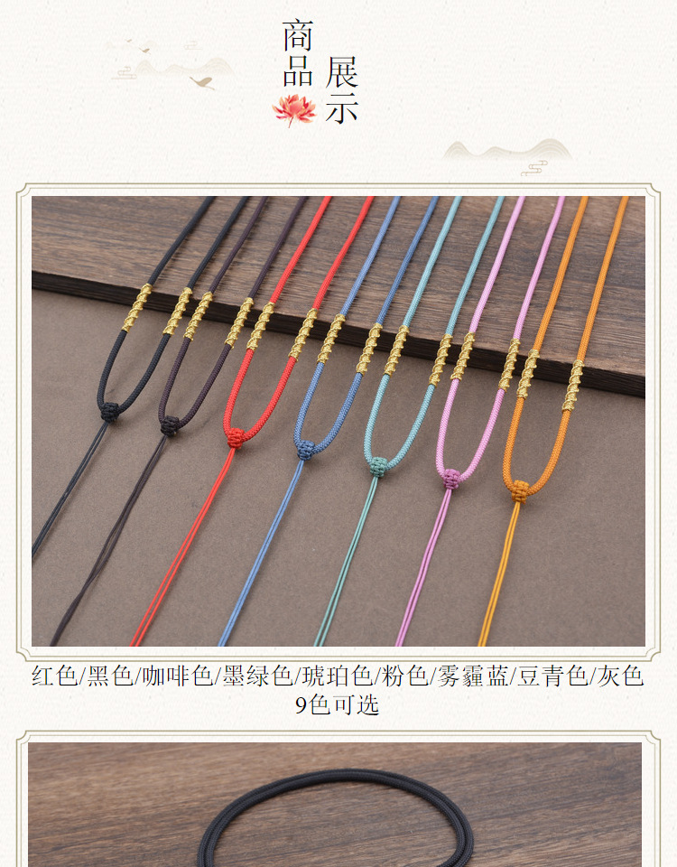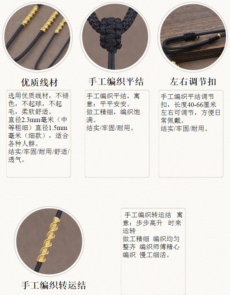 黄金玉器蜜蜡玉牌貔貅手编挂绳男吊坠绳女挂坠绳子手工编织项链绳
