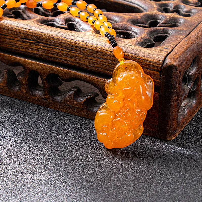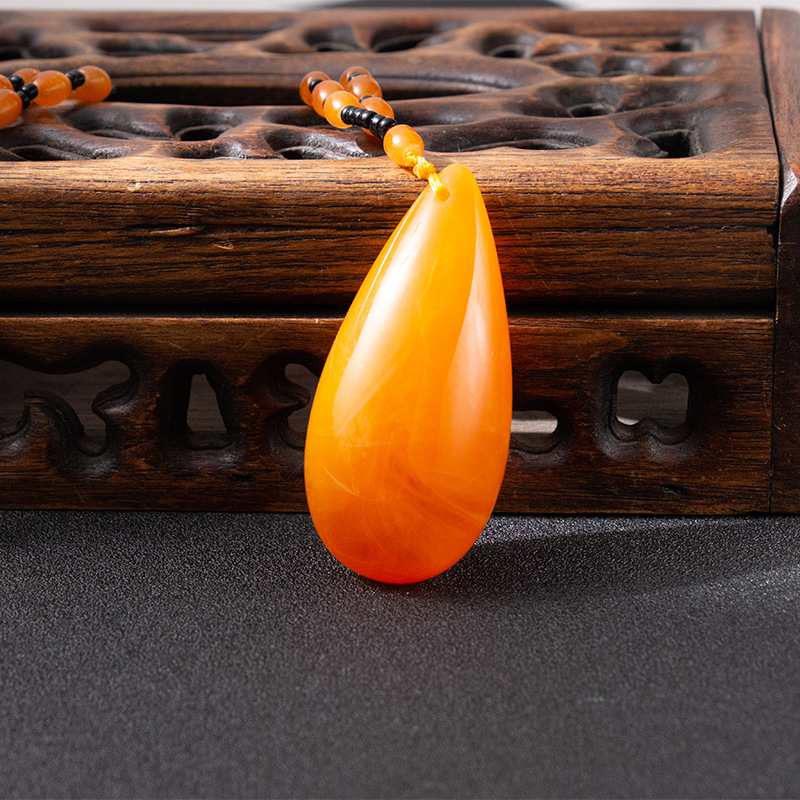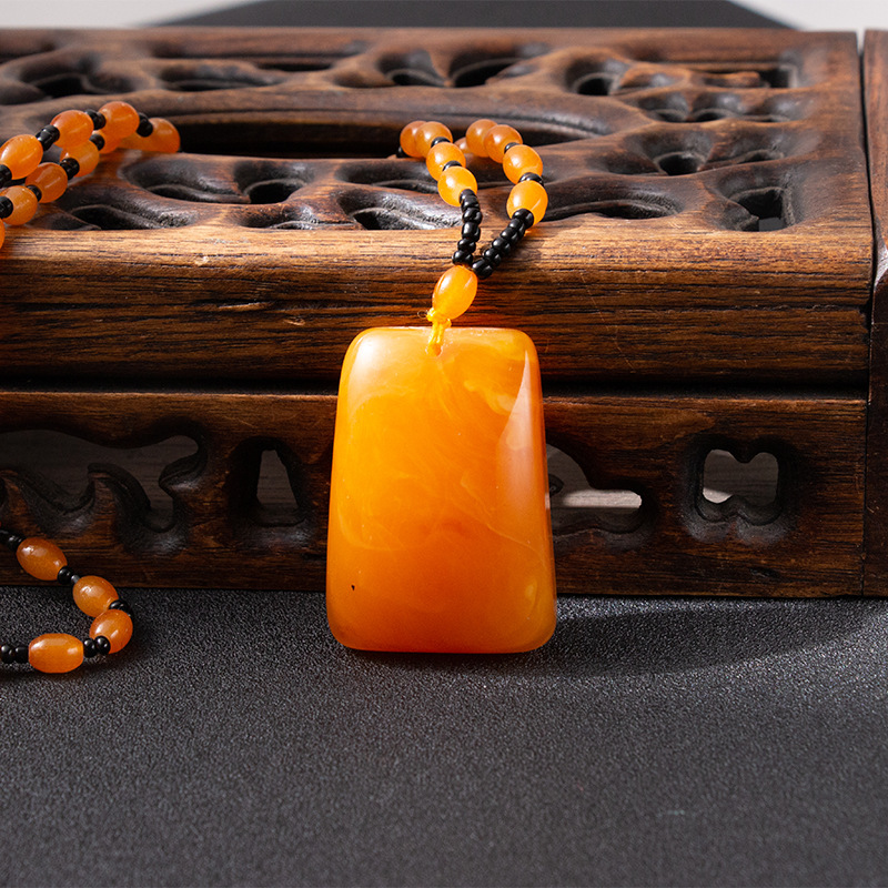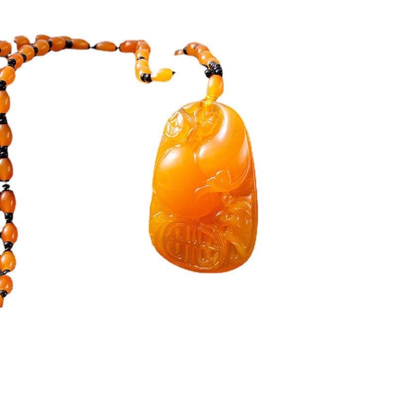 串珠项链绳老蜜蜡吊坠鸡油黄二代仿蜜蜡毛衣链民族风时尚服装装饰