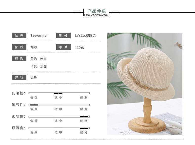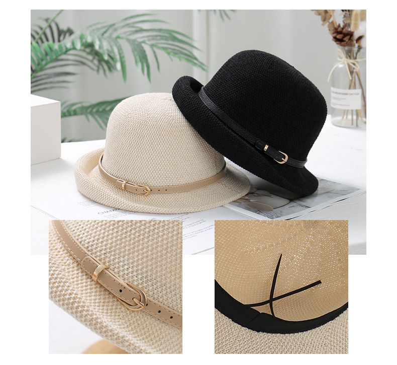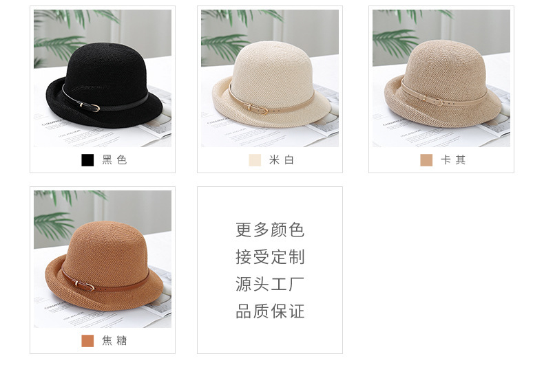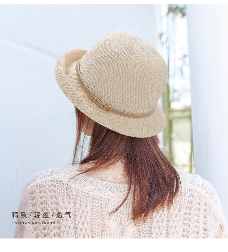 经典款春夏针织透气金属皮带扣渔夫帽女度假出游遮阳防晒卷边盆帽