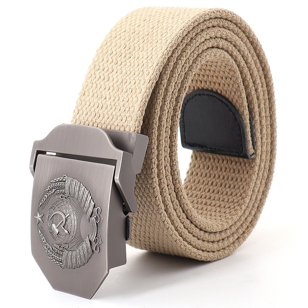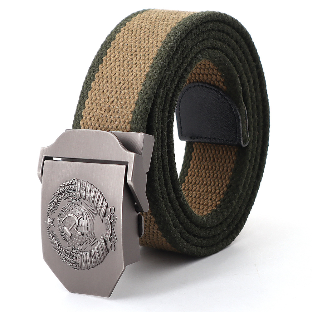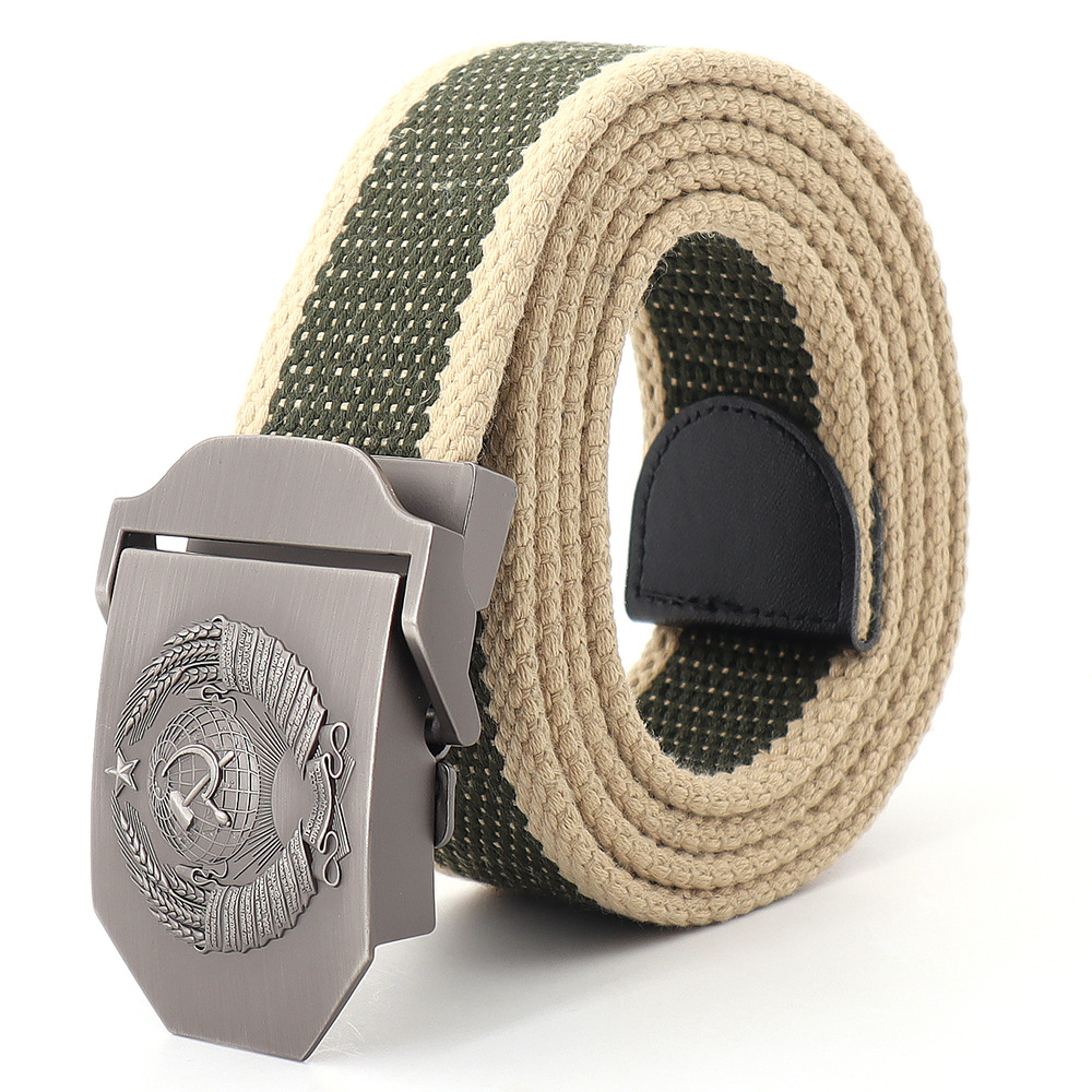 俄语系加厚帆布腰带男士户外学生军训女休闲裤合金腰带批发跨境