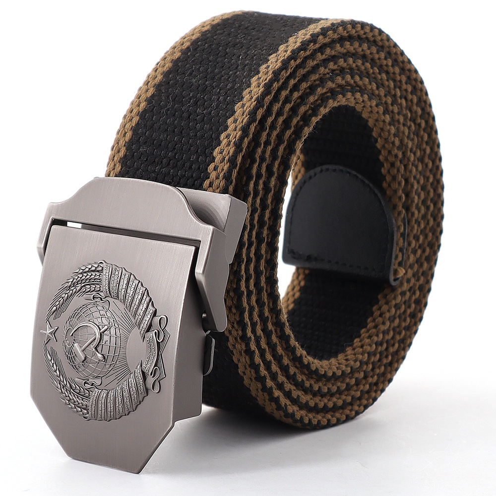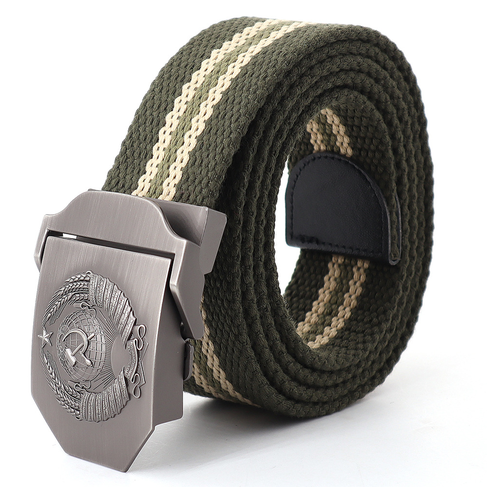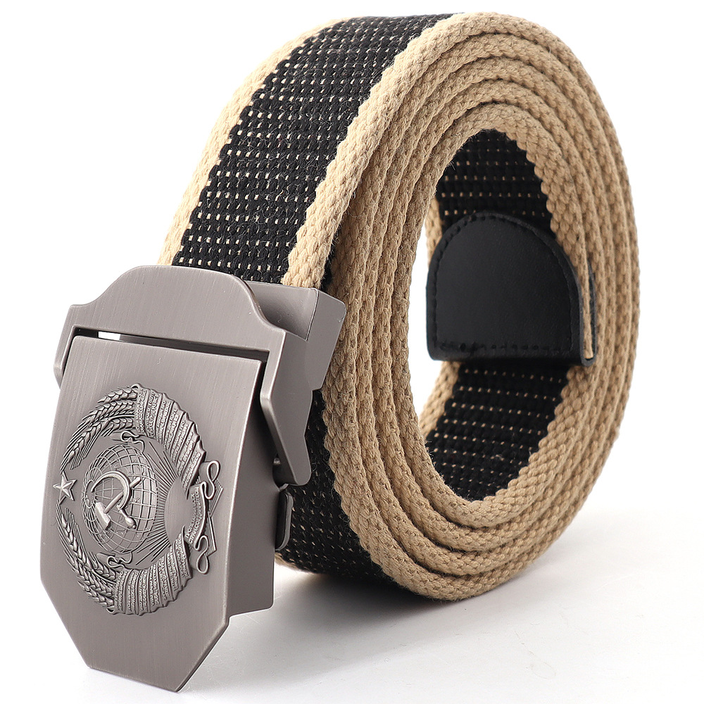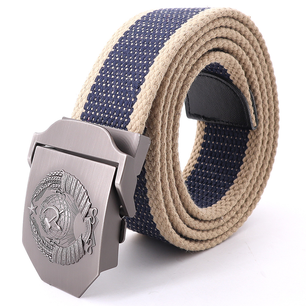 俄语系加厚帆布腰带男士户外学生军训女休闲裤合金腰带批发跨境