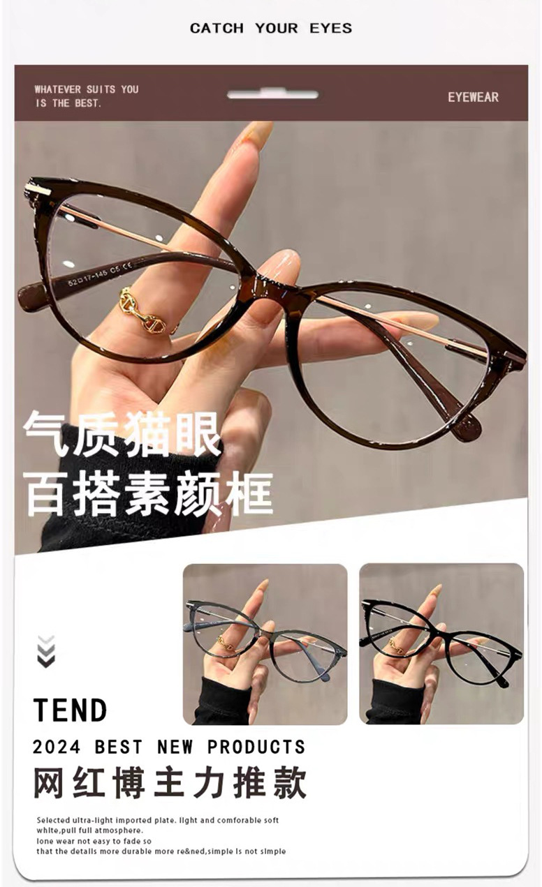 新款超轻韩版猫眼老花镜防蓝光时尚ins抖音爆款高颜值显年轻个性