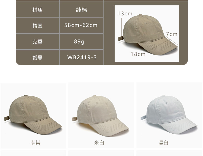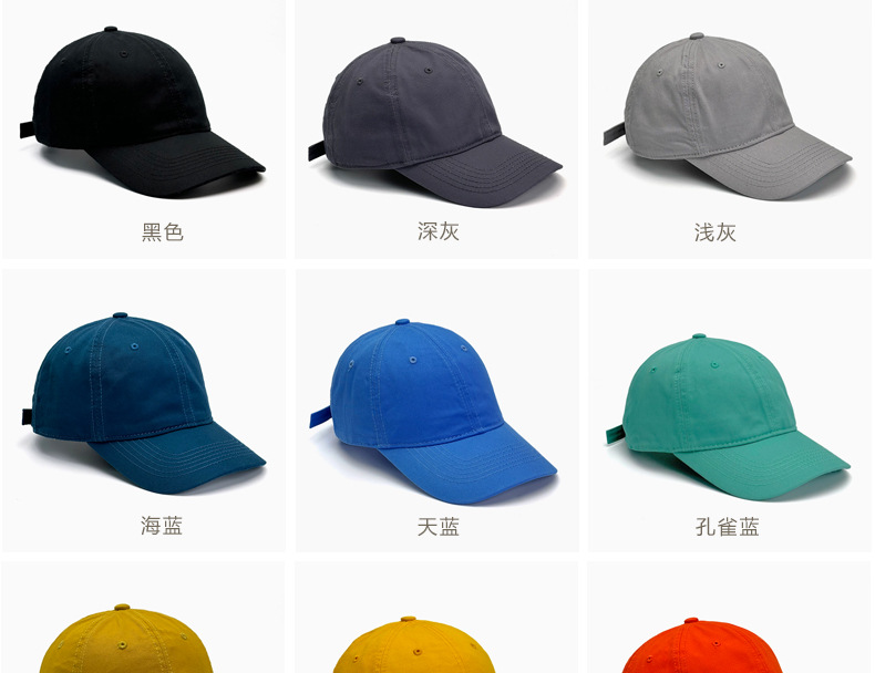 欧美跨境纯棉加深加大鸭舌帽男遮阳女软顶弯檐光板棒球帽批发定制