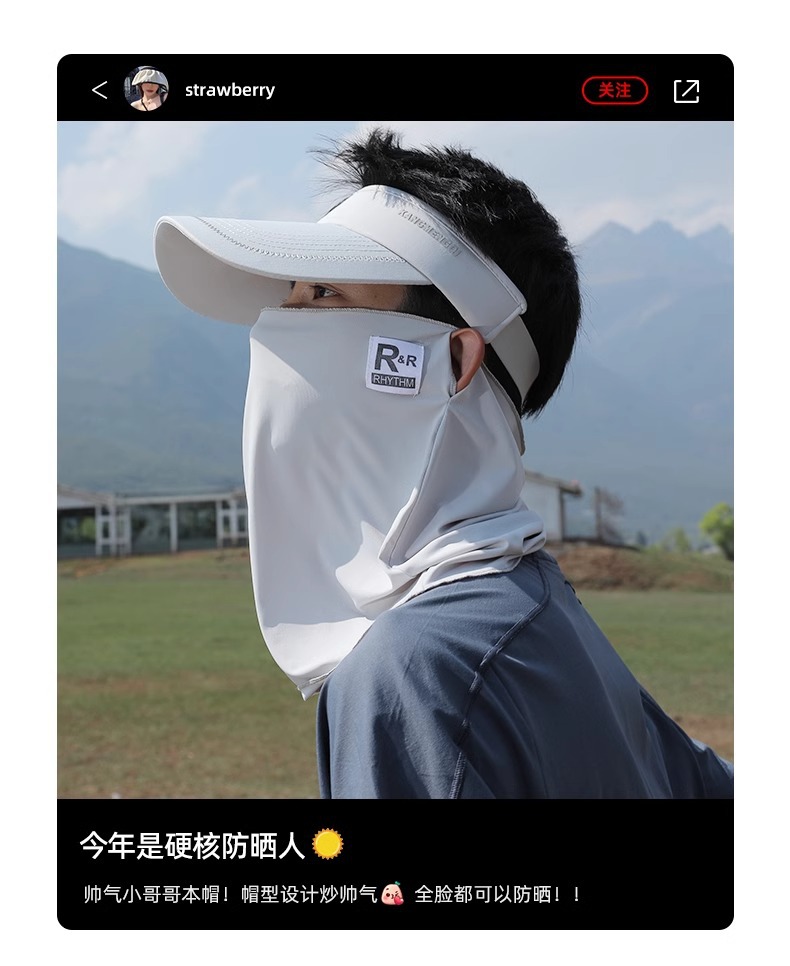 冰丝空顶帽户外钓鱼运动男士夏季遮阳防晒帽面罩骑车遮全脸鸭舌帽