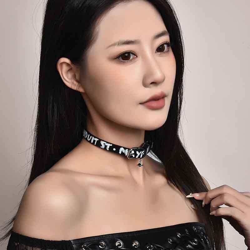 西太后Chocker黑色三层皮绳朋克摇滚土星坠项链辣妹项圈八芒星