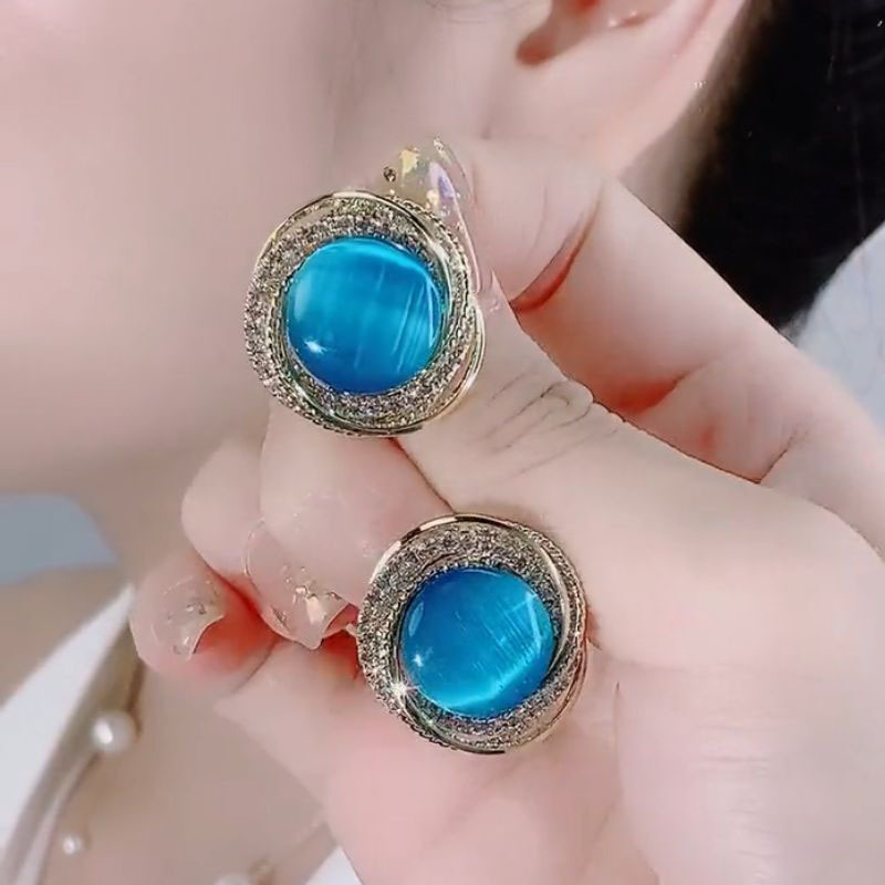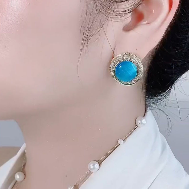 轻奢高级感圆形环绕镶钻猫眼石耳环2022新款耳钉简约大气复古耳坠