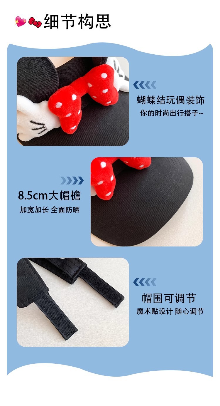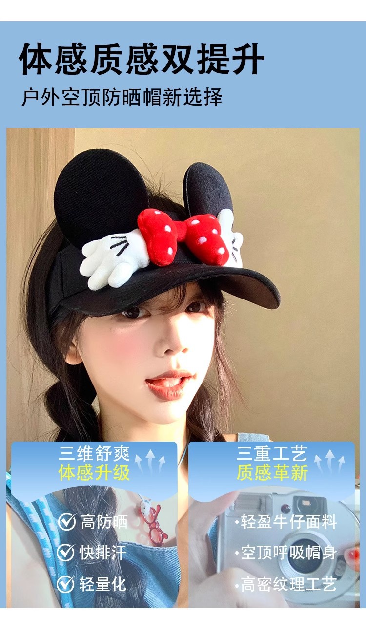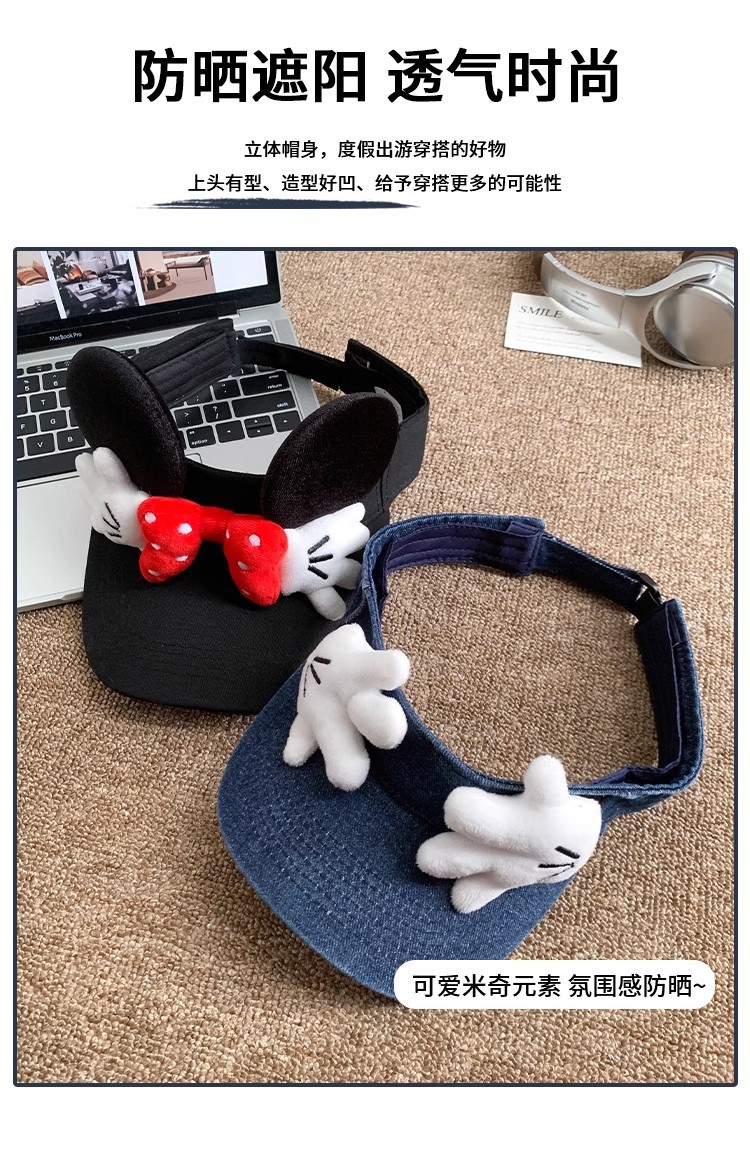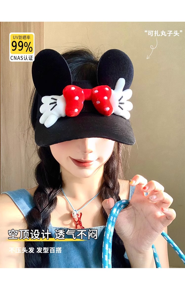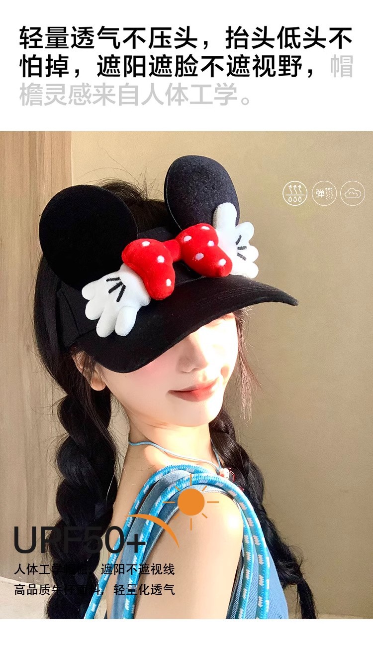 可爱卡通米奇小手蝴蝶结空顶帽女夏季薄款显脸小出游遮阳