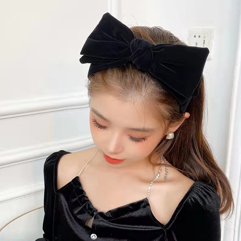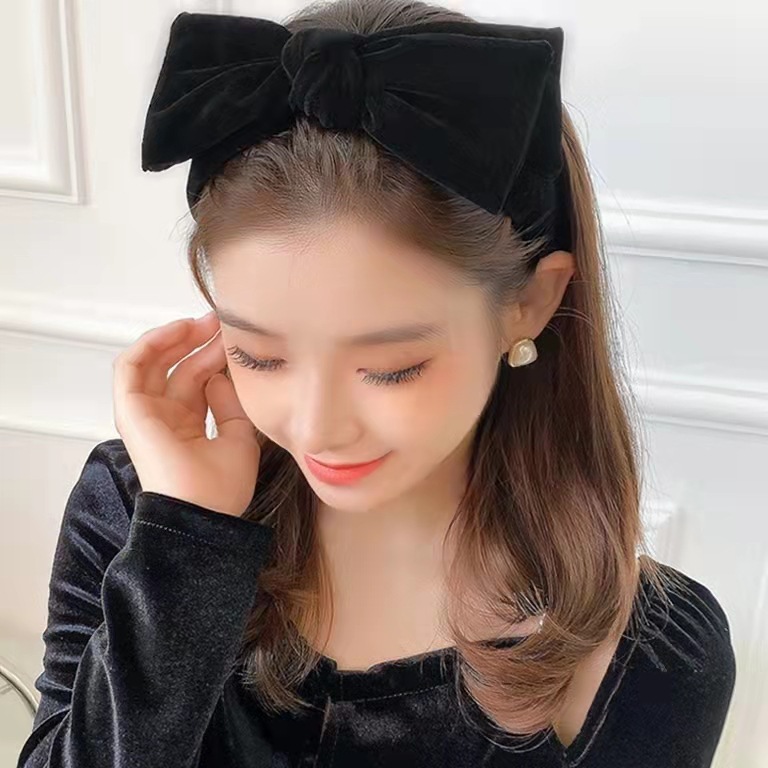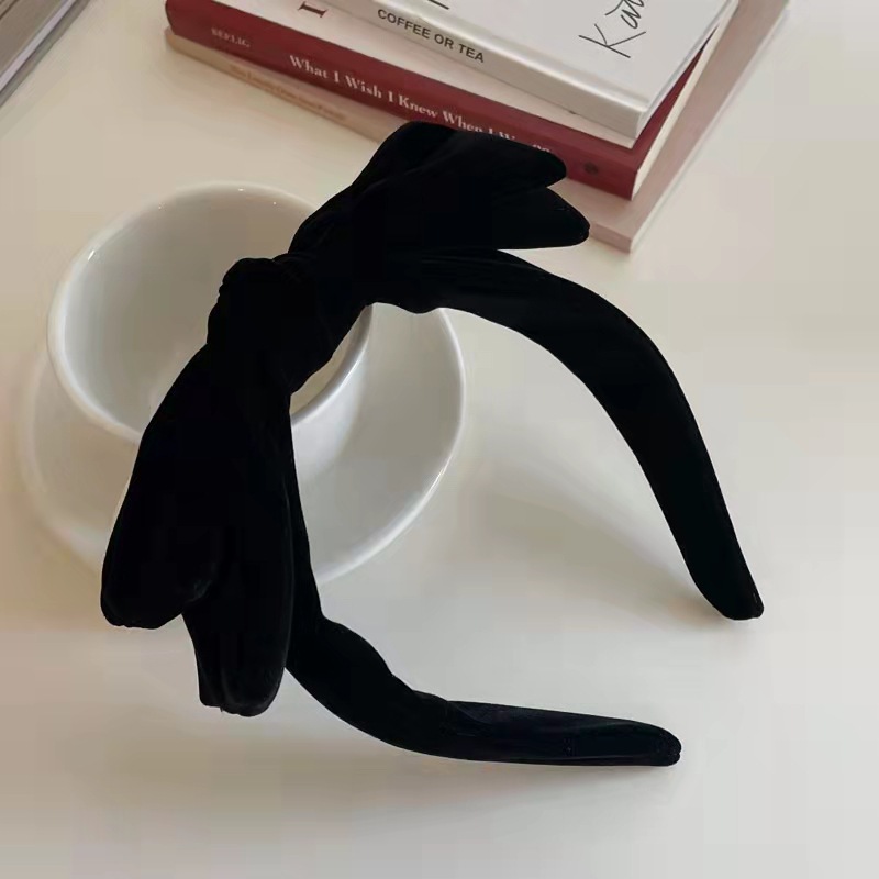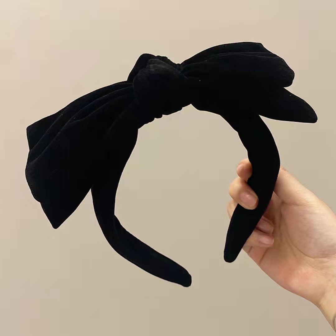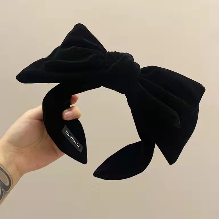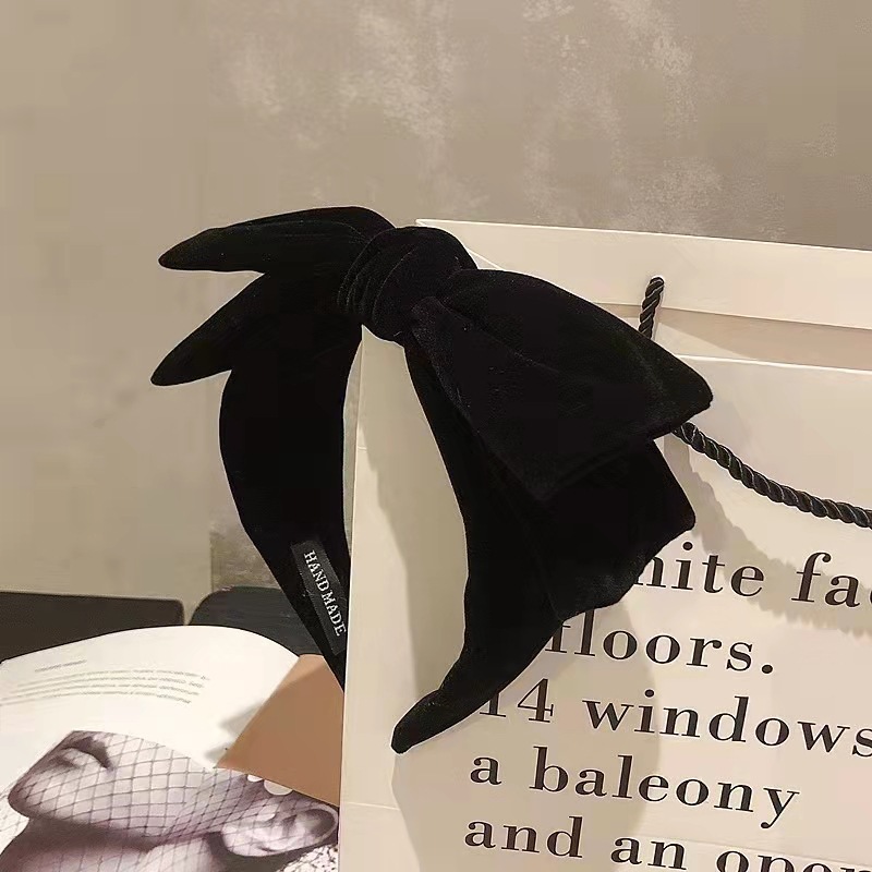 复古蝴蝶结黑色丝绒发箍秋冬简约高级感头箍法式发捆高颅顶头饰
