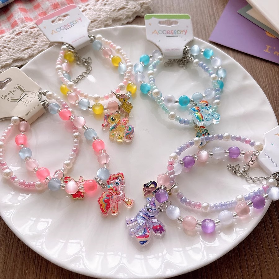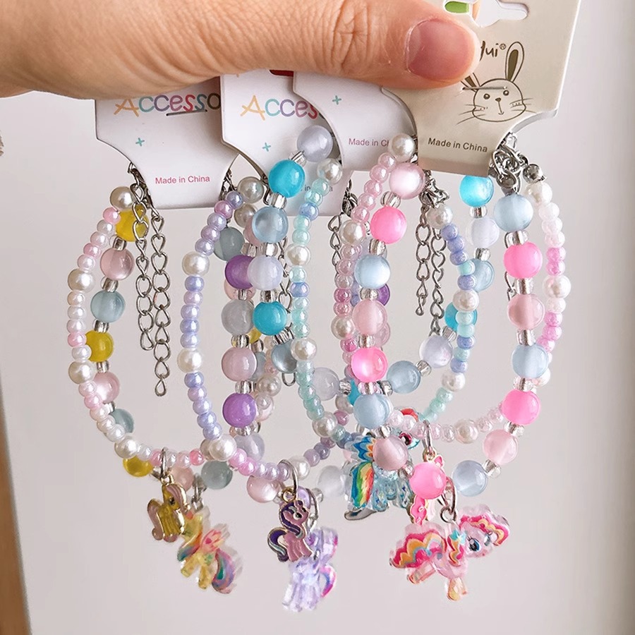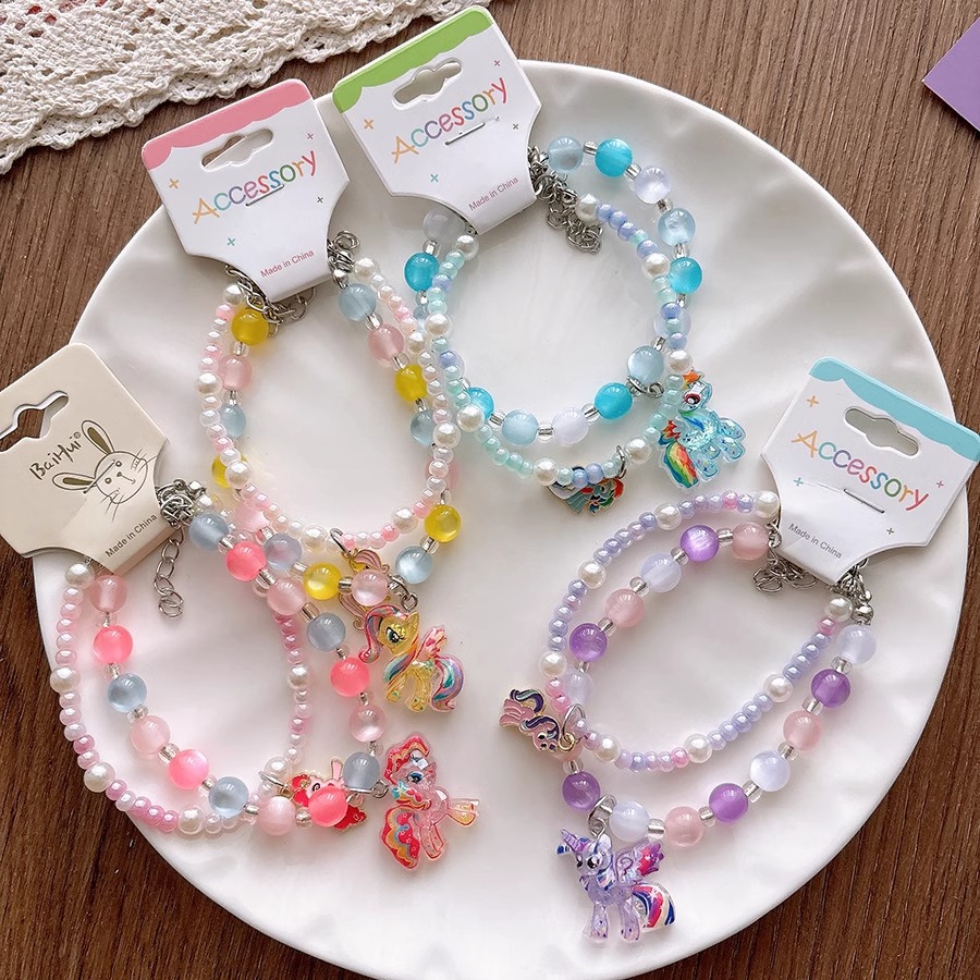 韩系儿童可爱树脂彩色卡通人物公主项链女童初春挂链手链耳夹组合