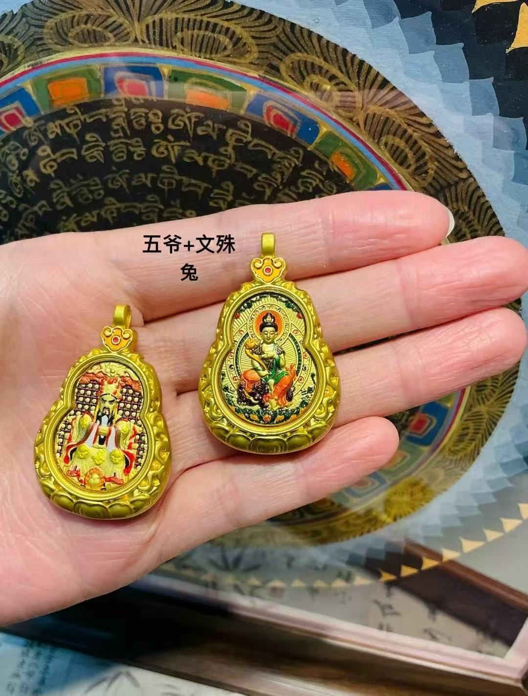 金色葫芦款八大守护神五爷双面立体唐卡吊坠随身佛牌挂件吊坠