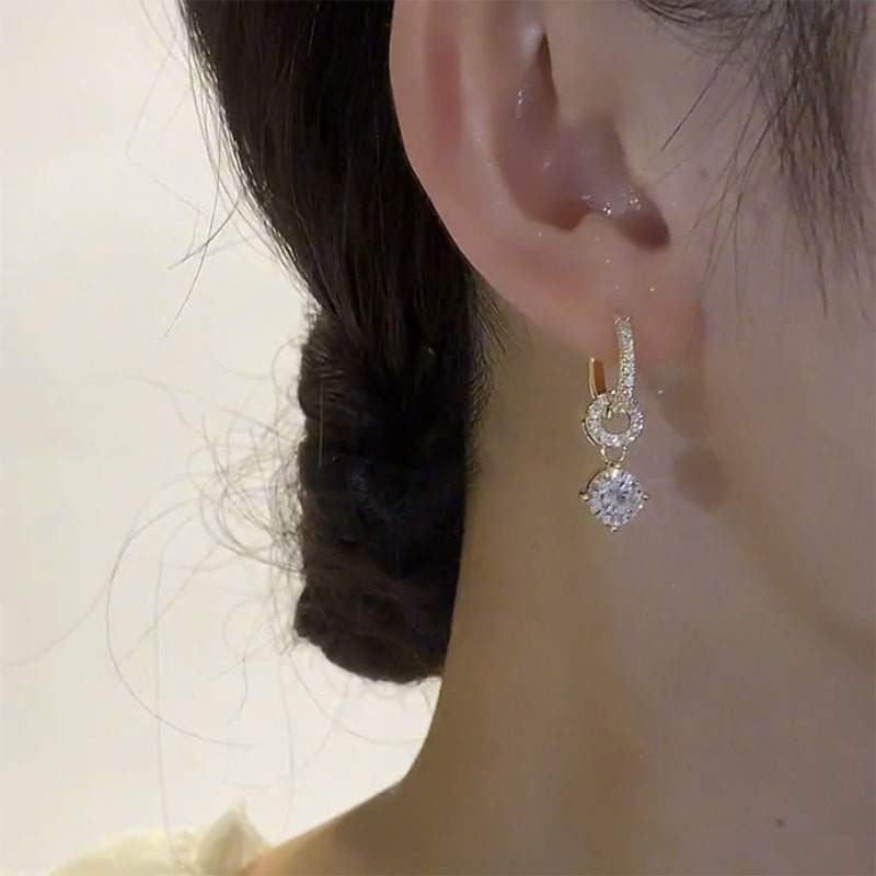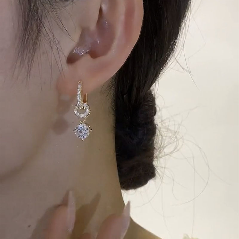 2023年新款潮气质锆石镶嵌小圆环耳扣耳圈女生设计感精致百搭耳饰