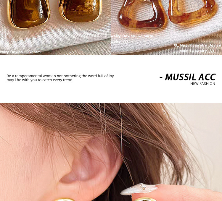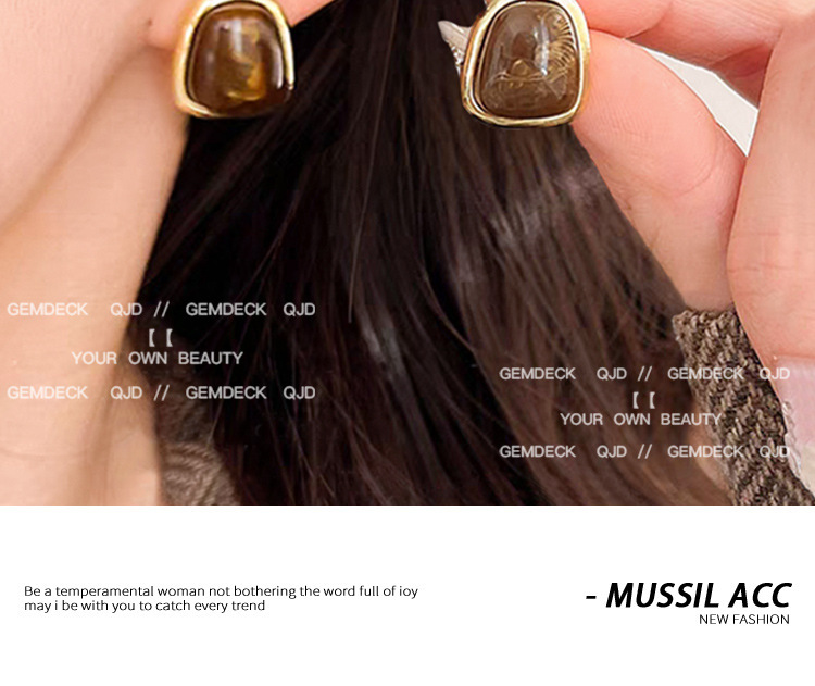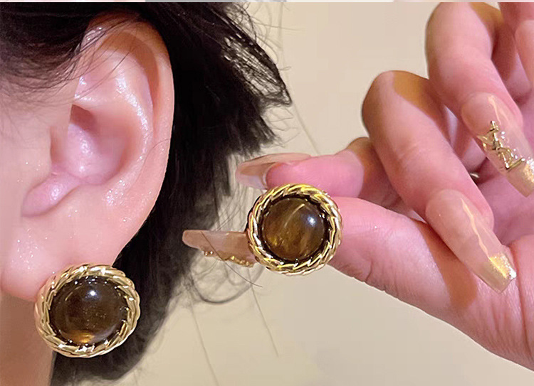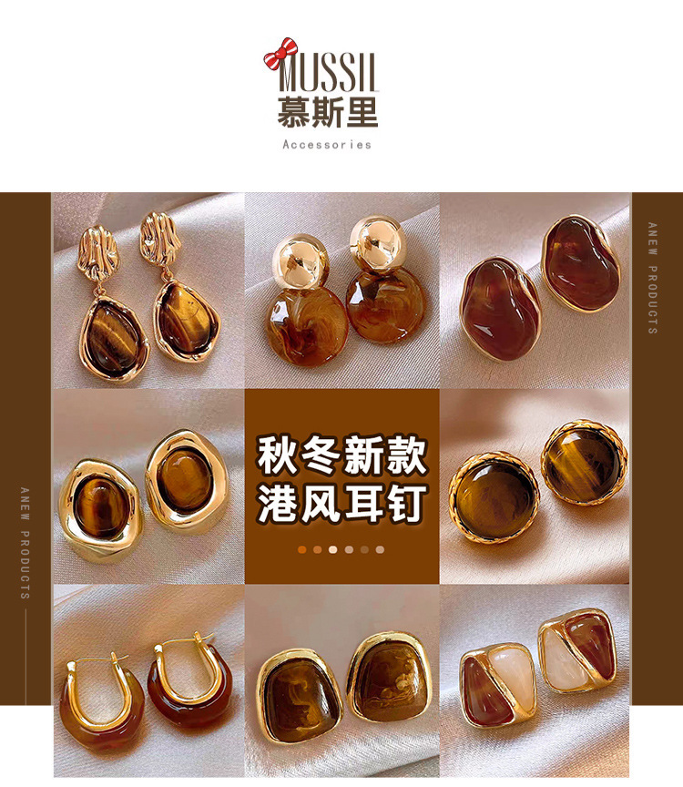 跨境爆款秋冬咖色高级感耳钉女2024年新款潮气质耳环复古港风耳饰