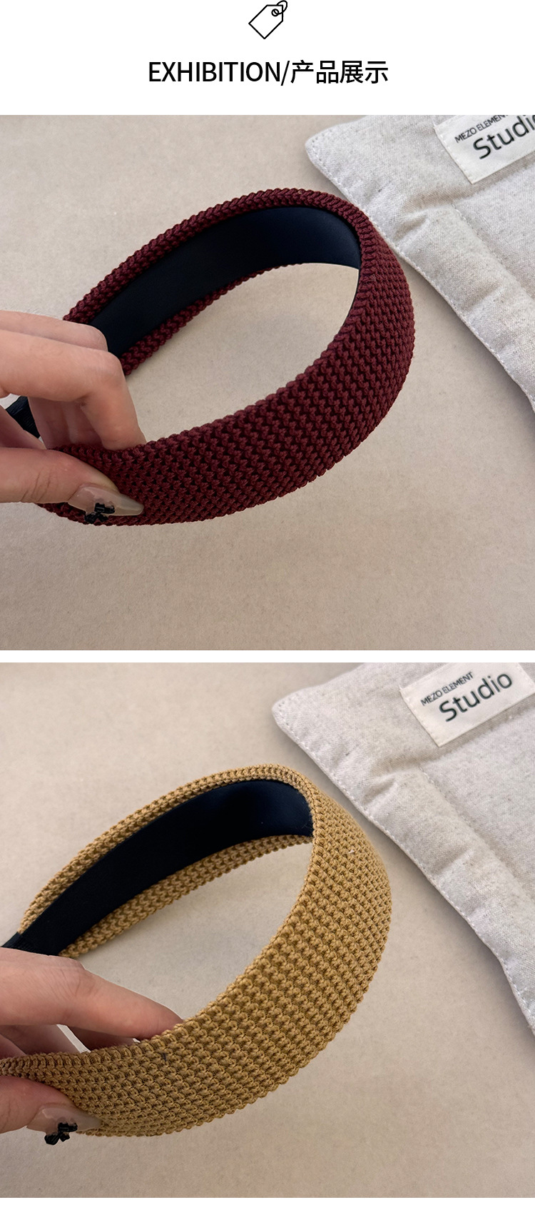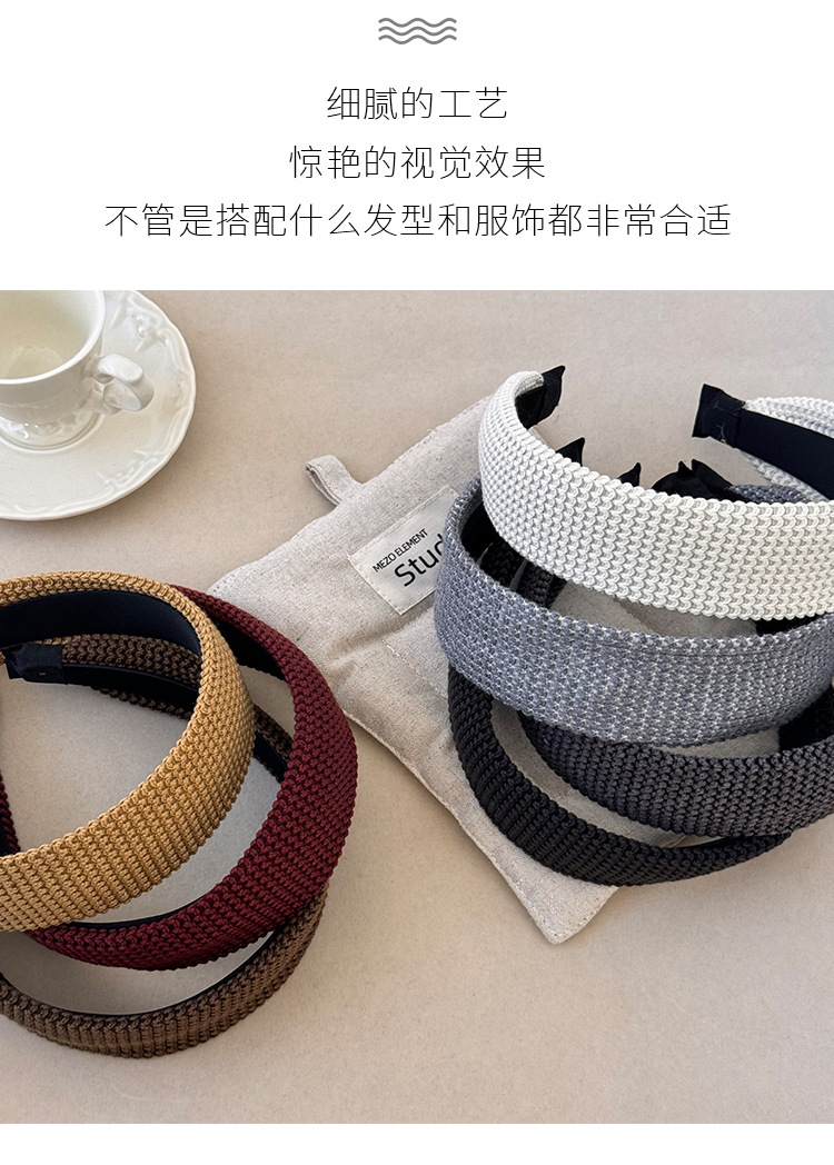 韩国纯色高级宽版毛线发箍女生2024新款精致简约小众设计百搭头箍