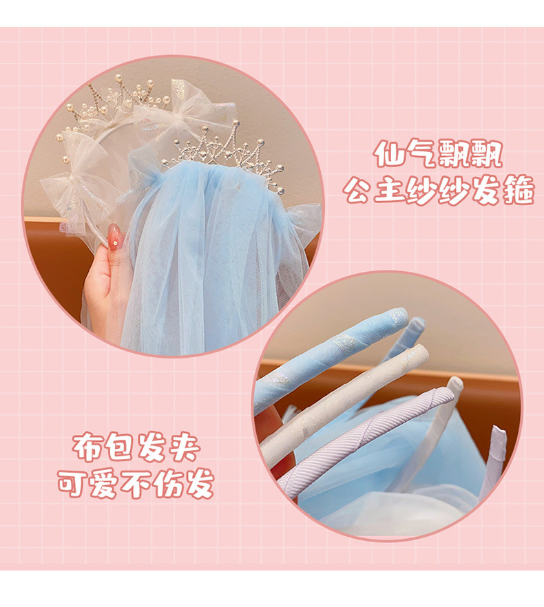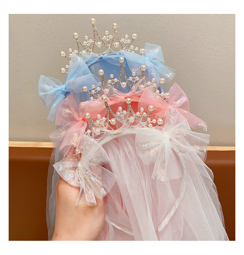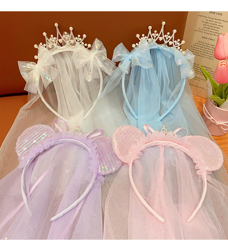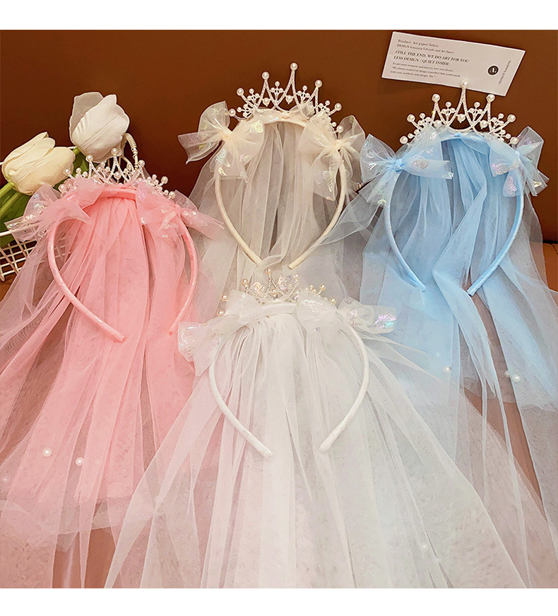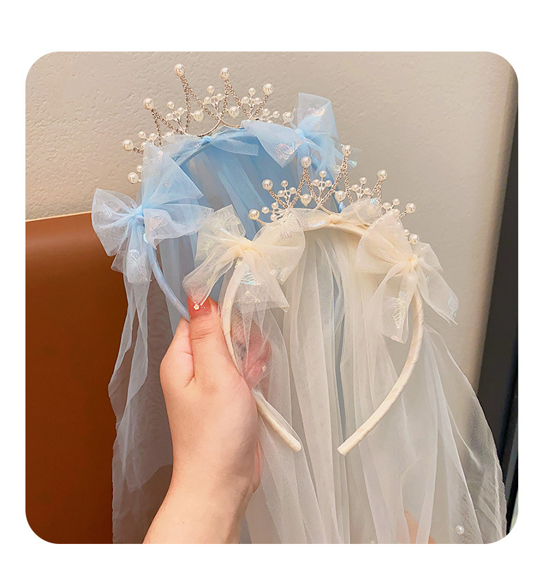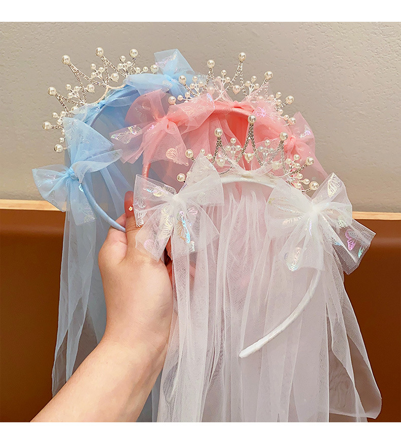 儿童蝴蝶结公主裙头纱皇冠宝宝生日爱莎头饰发夹花童婚纱发饰女童