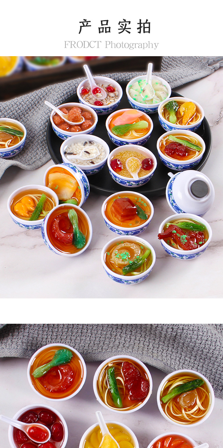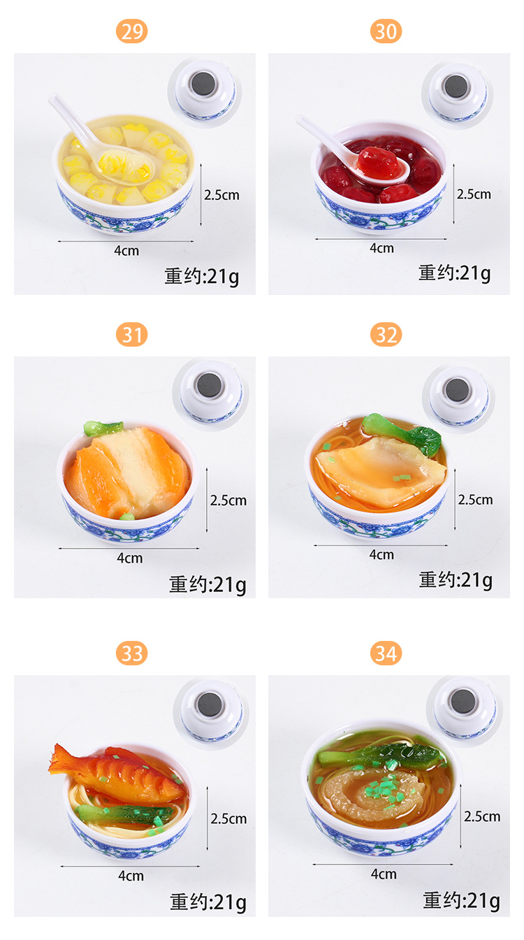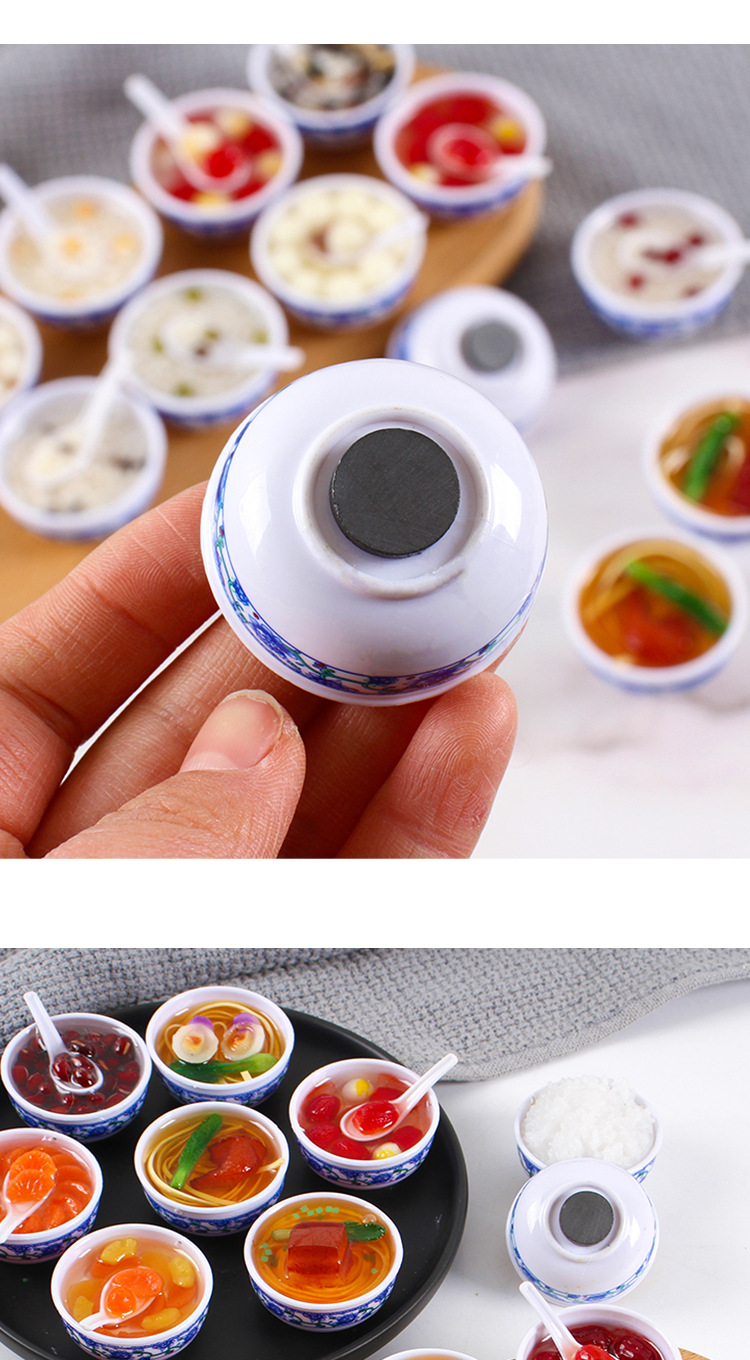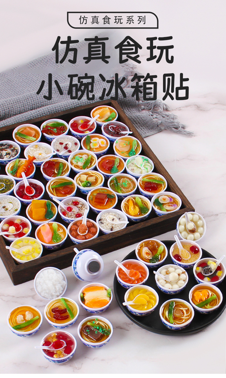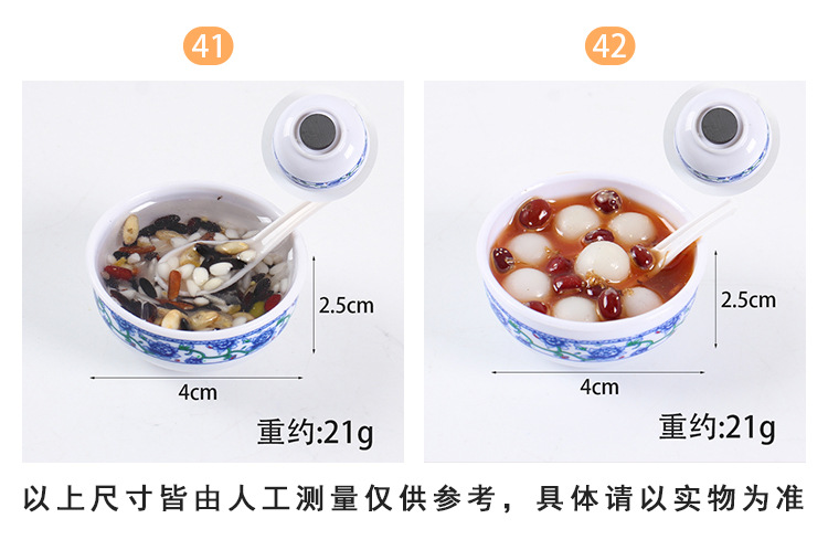 4cm仿真大白碗甜汤碗面条碗冰箱贴中国风青花瓷碗微缩食玩小碗菜