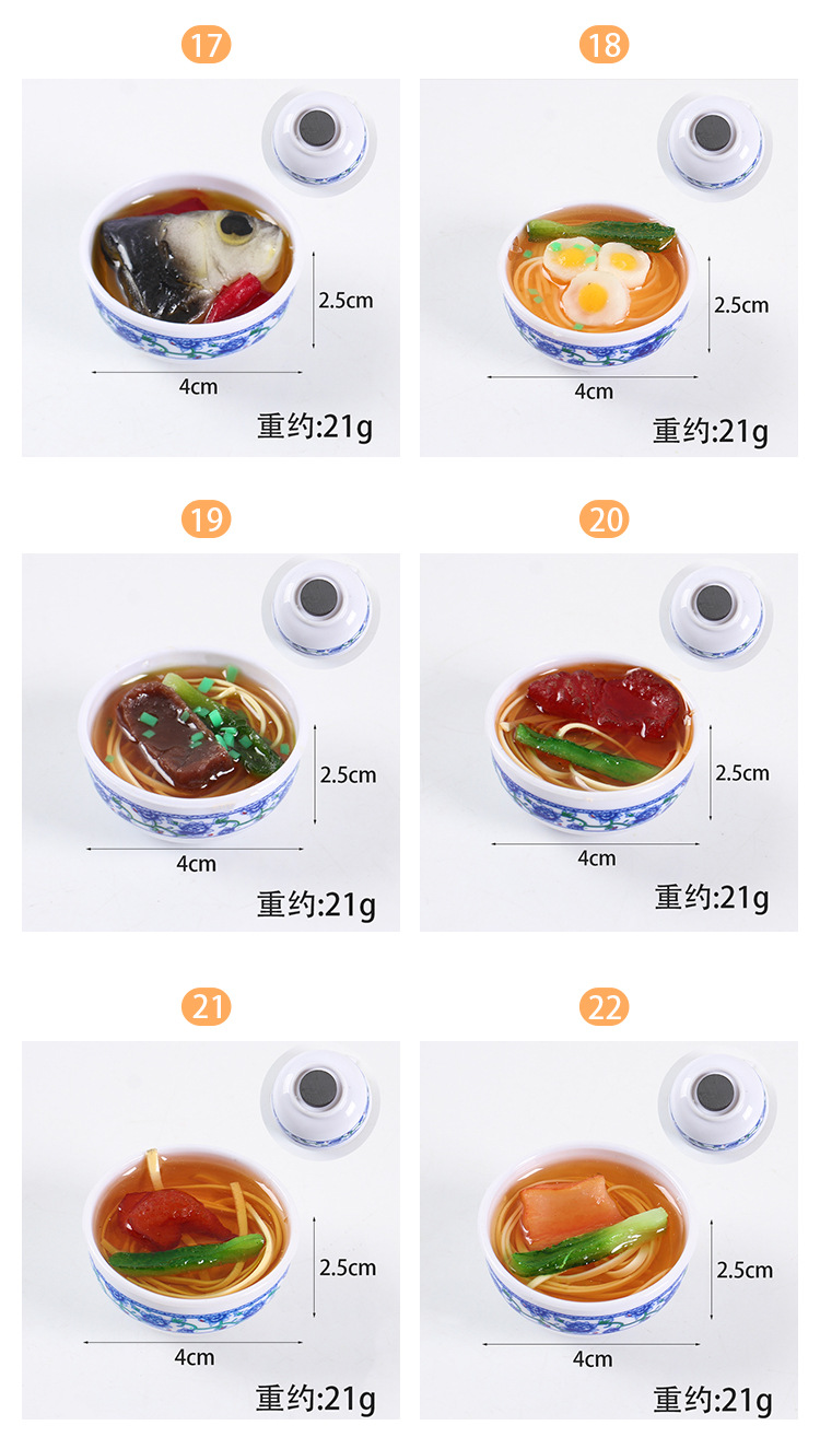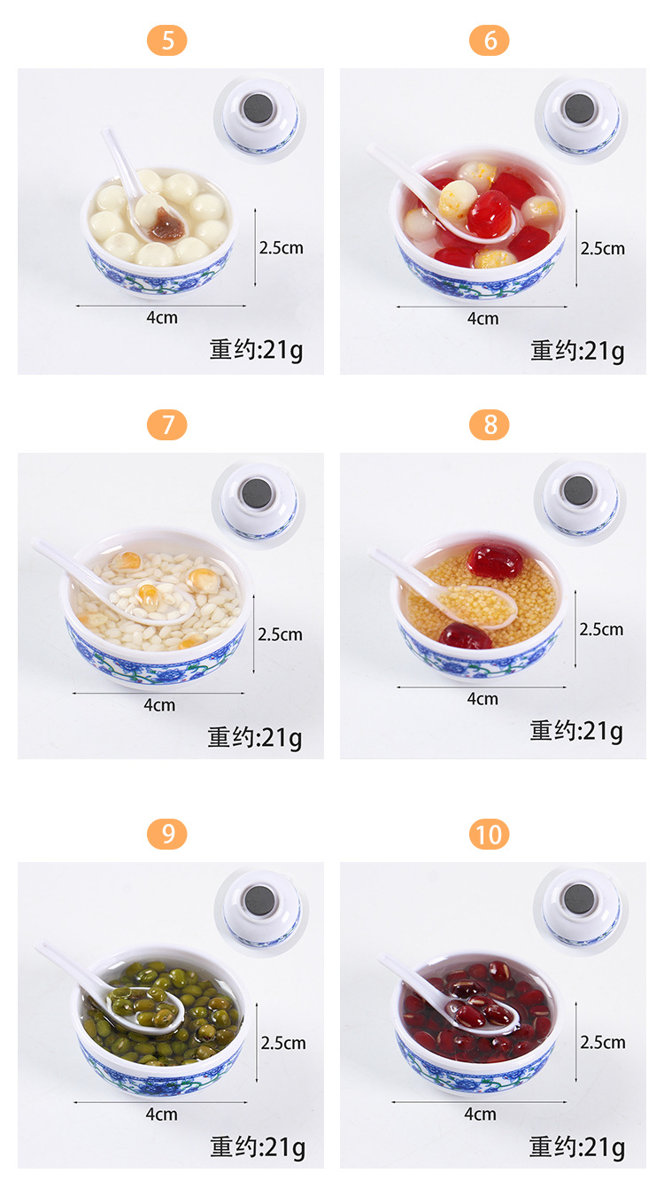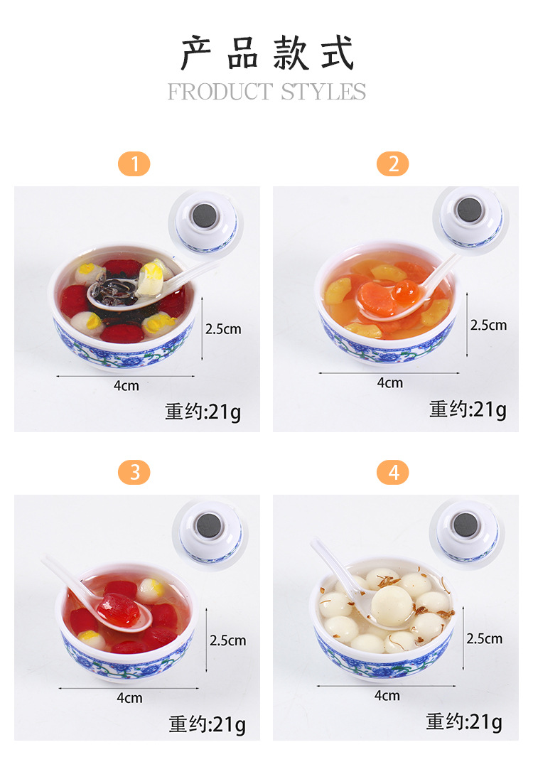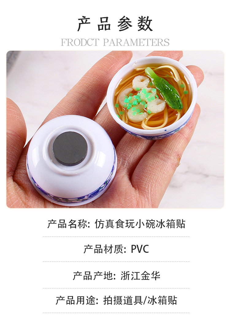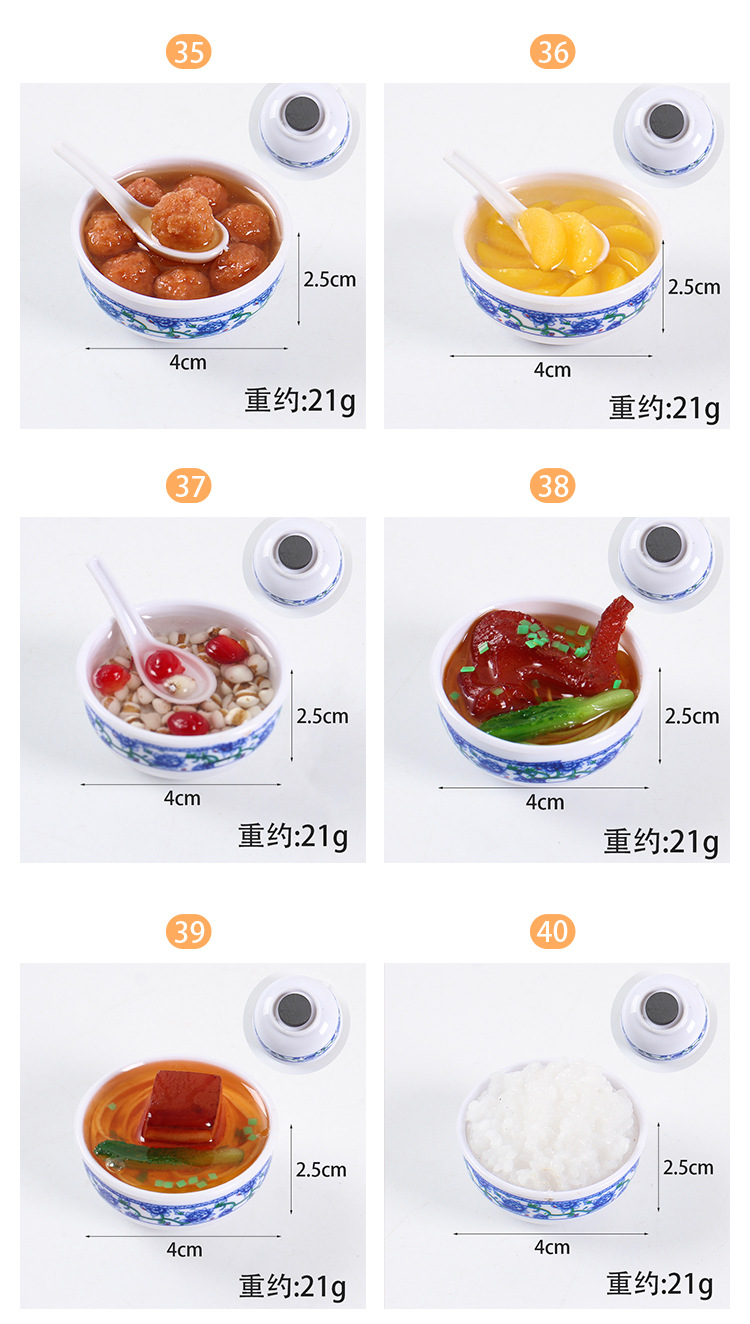 4cm仿真大白碗甜汤碗面条碗冰箱贴中国风青花瓷碗微缩食玩小碗菜