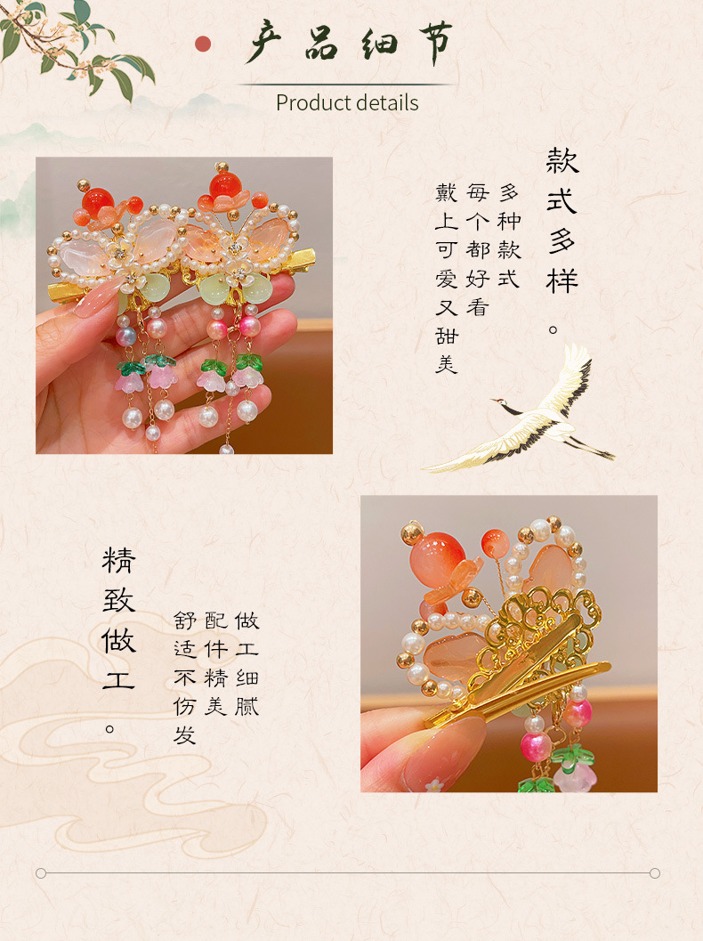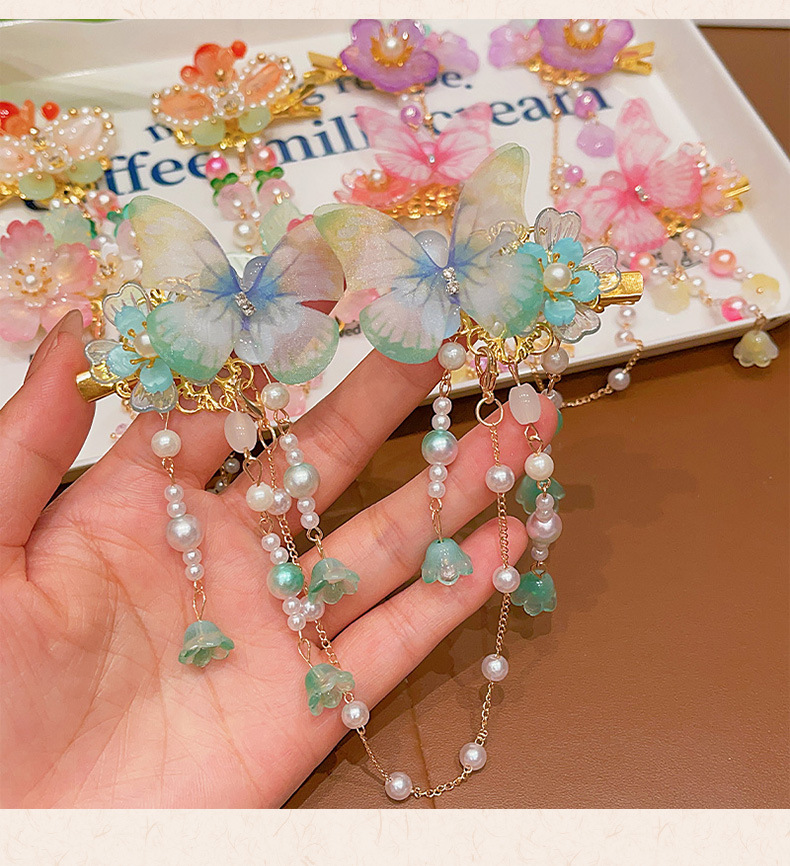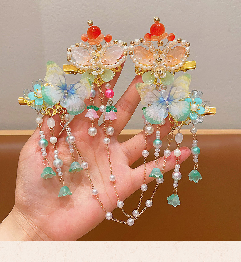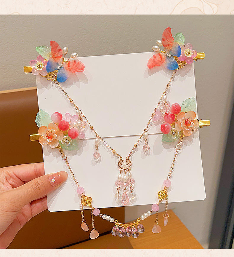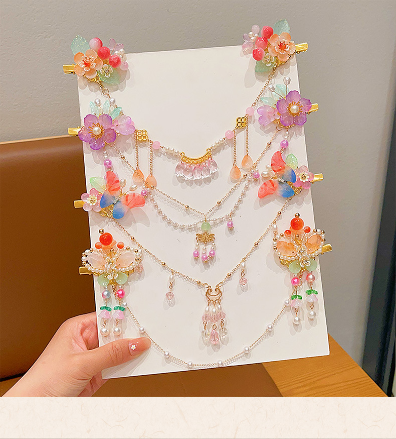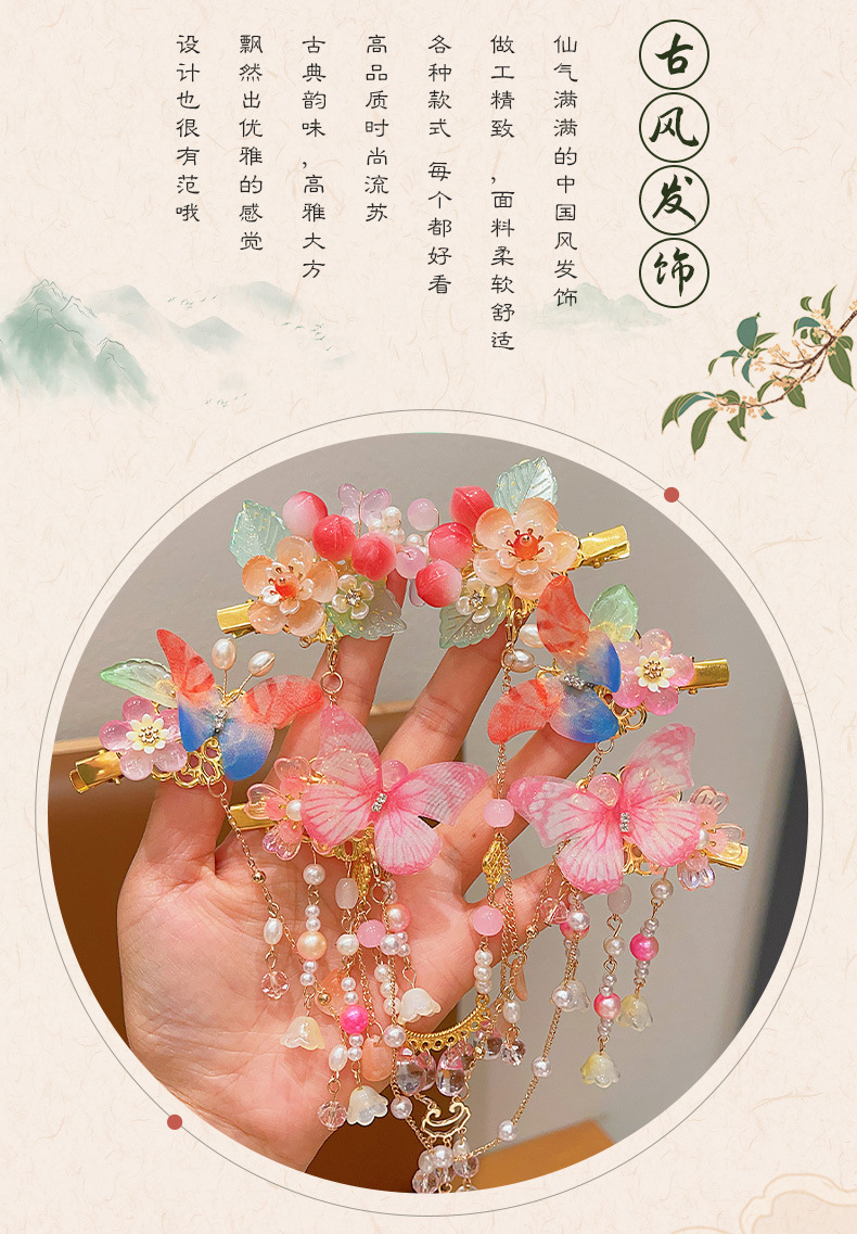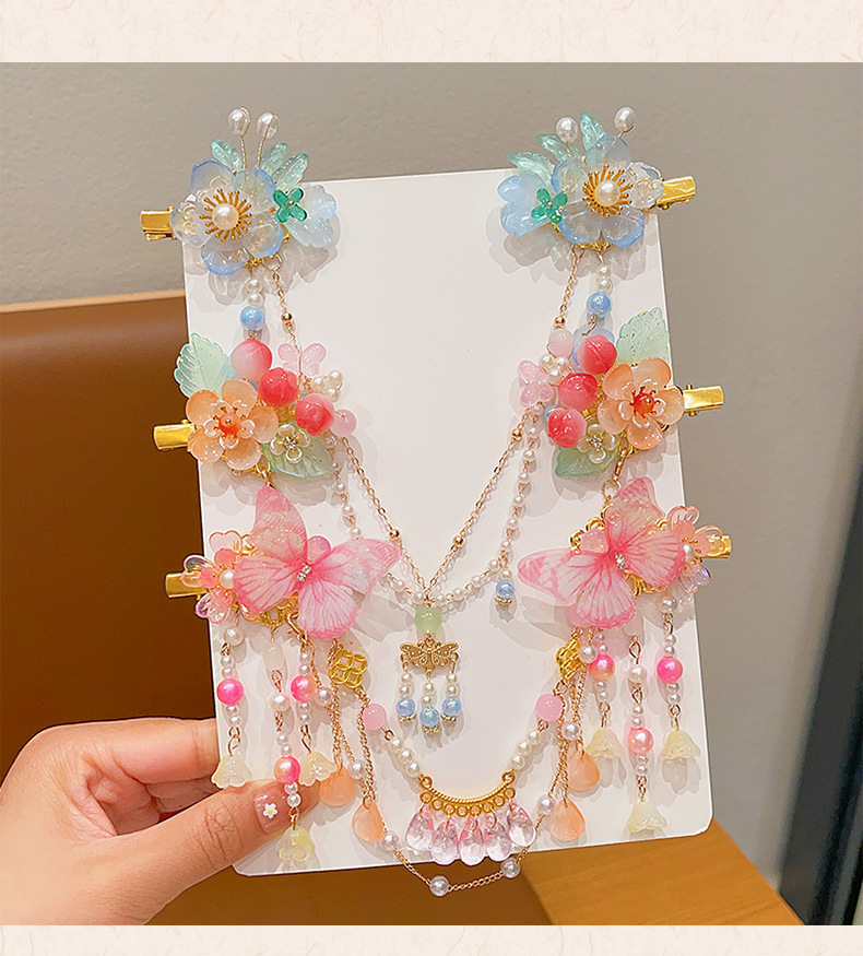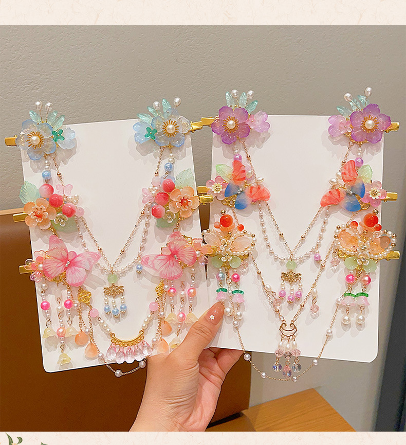 花朵流苏额头链女童古风发饰儿童汉服发夹小女孩眉心链发卡头饰品