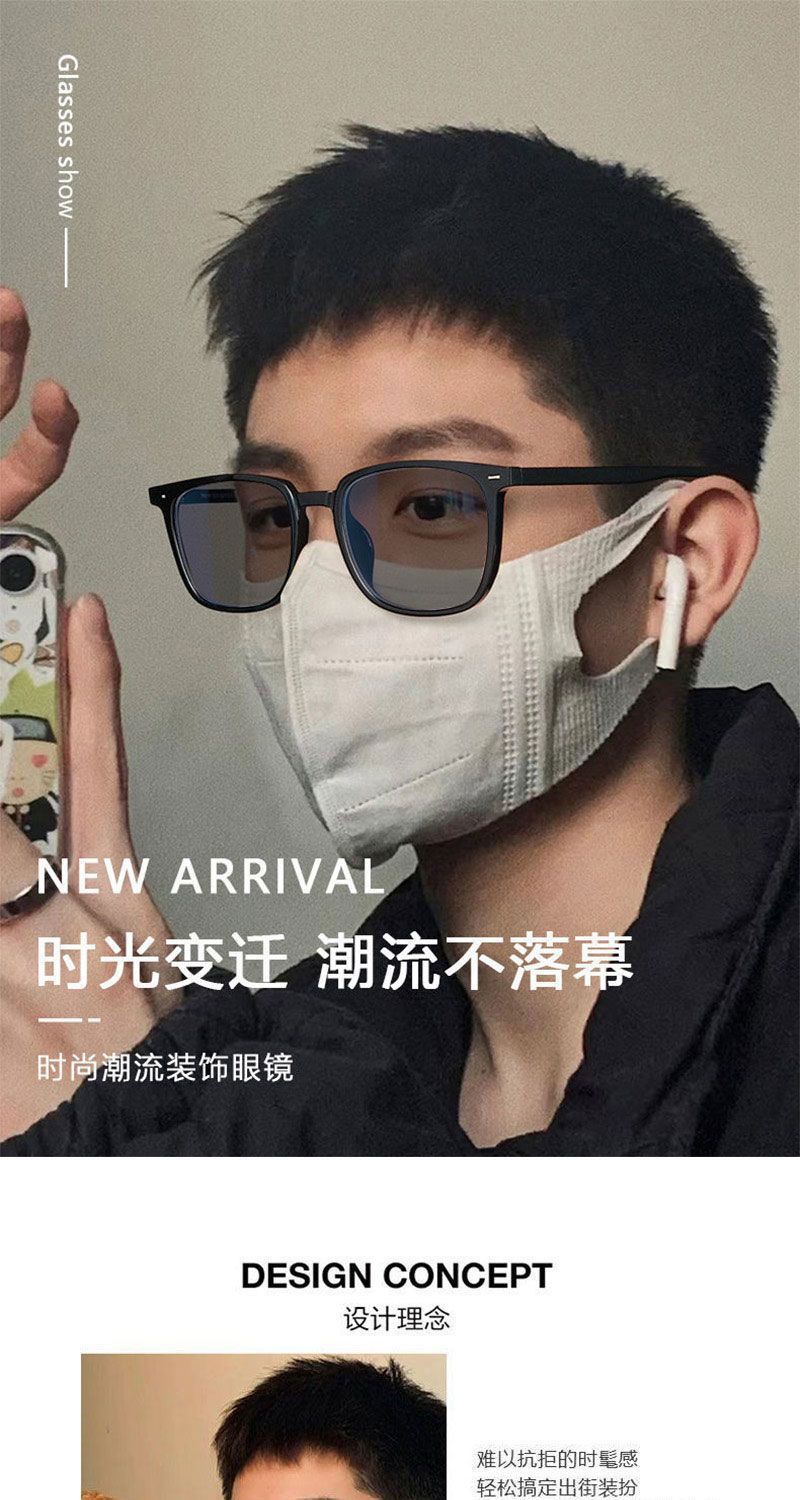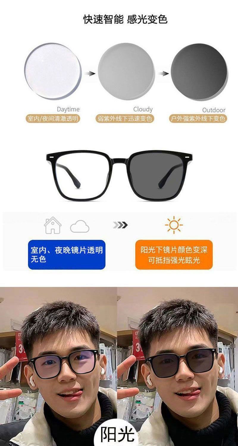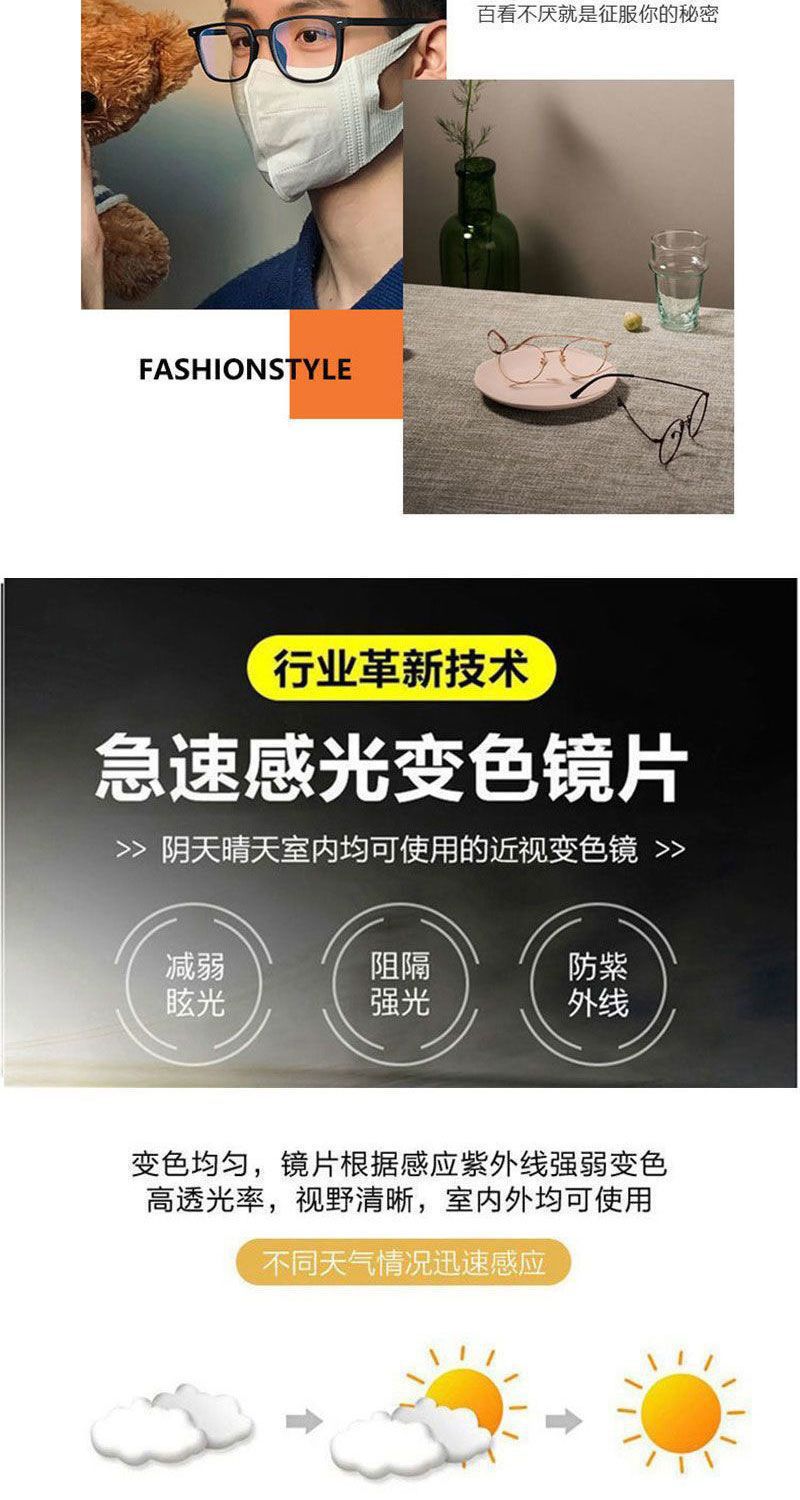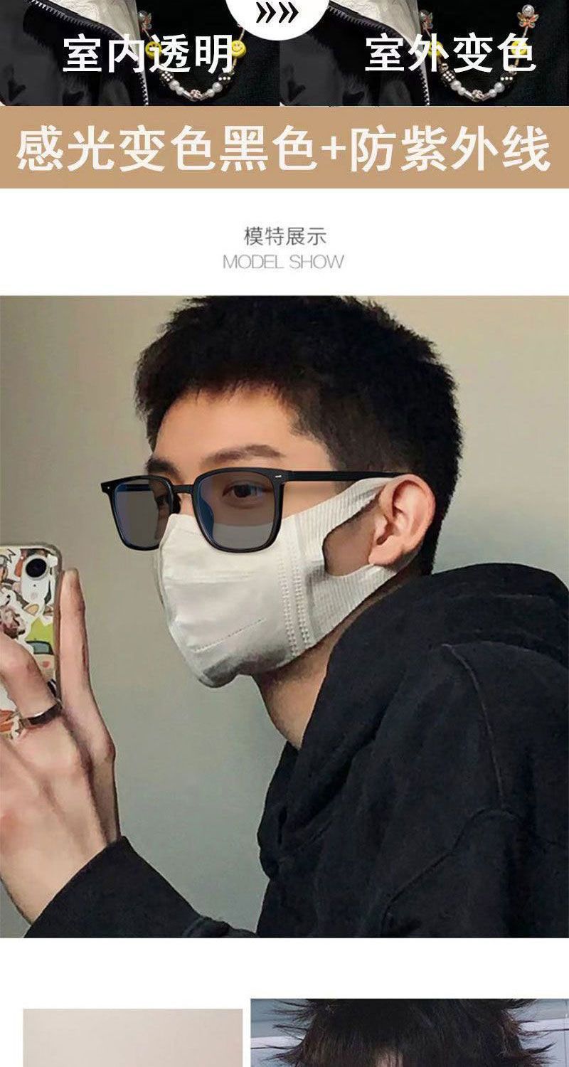 新款小红书同款复古方框A变色平光镜时尚潮流男女防蓝光近视眼镜