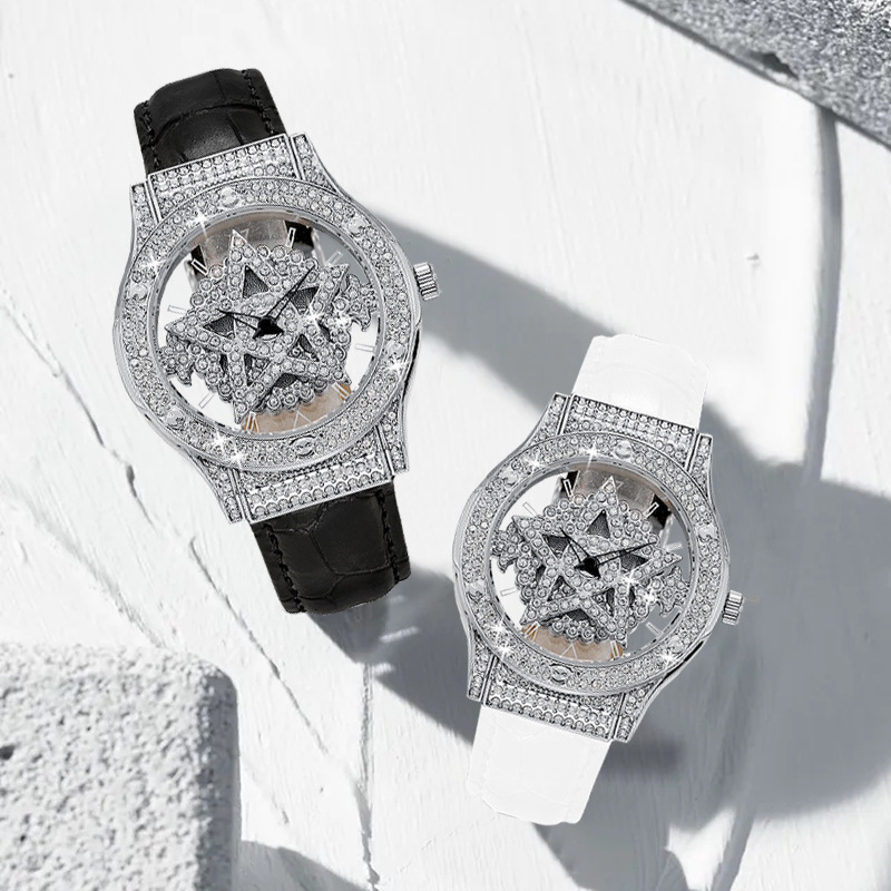 时来运转五芒星轻奢女士手表女小众满钻手表批发一件代发现货