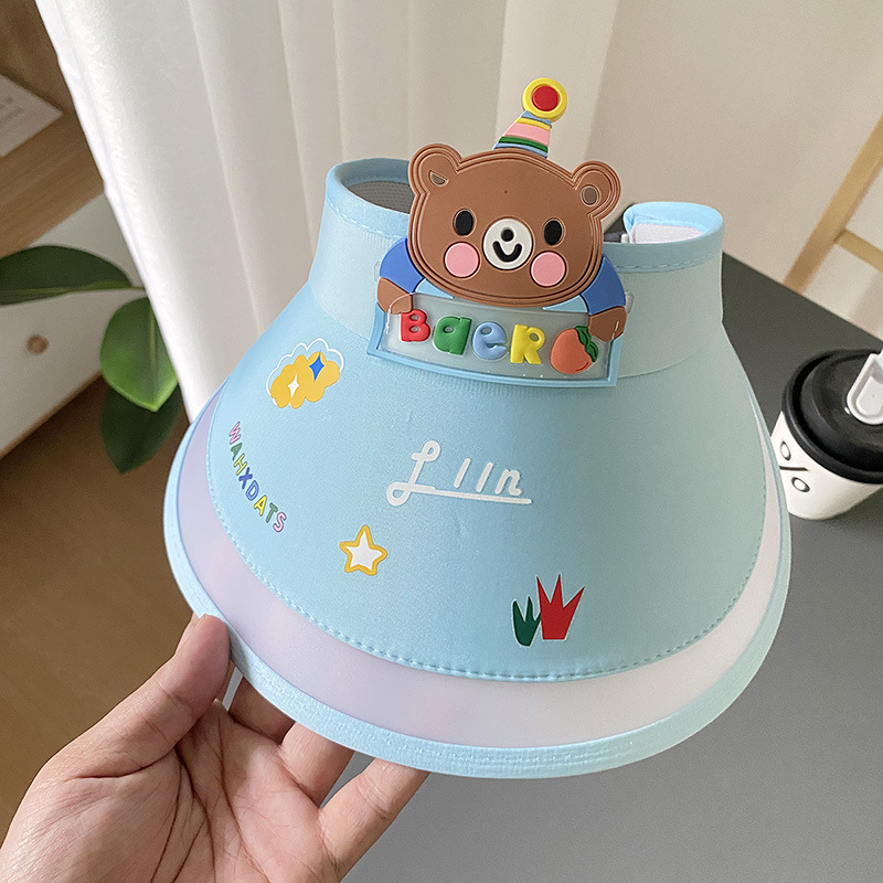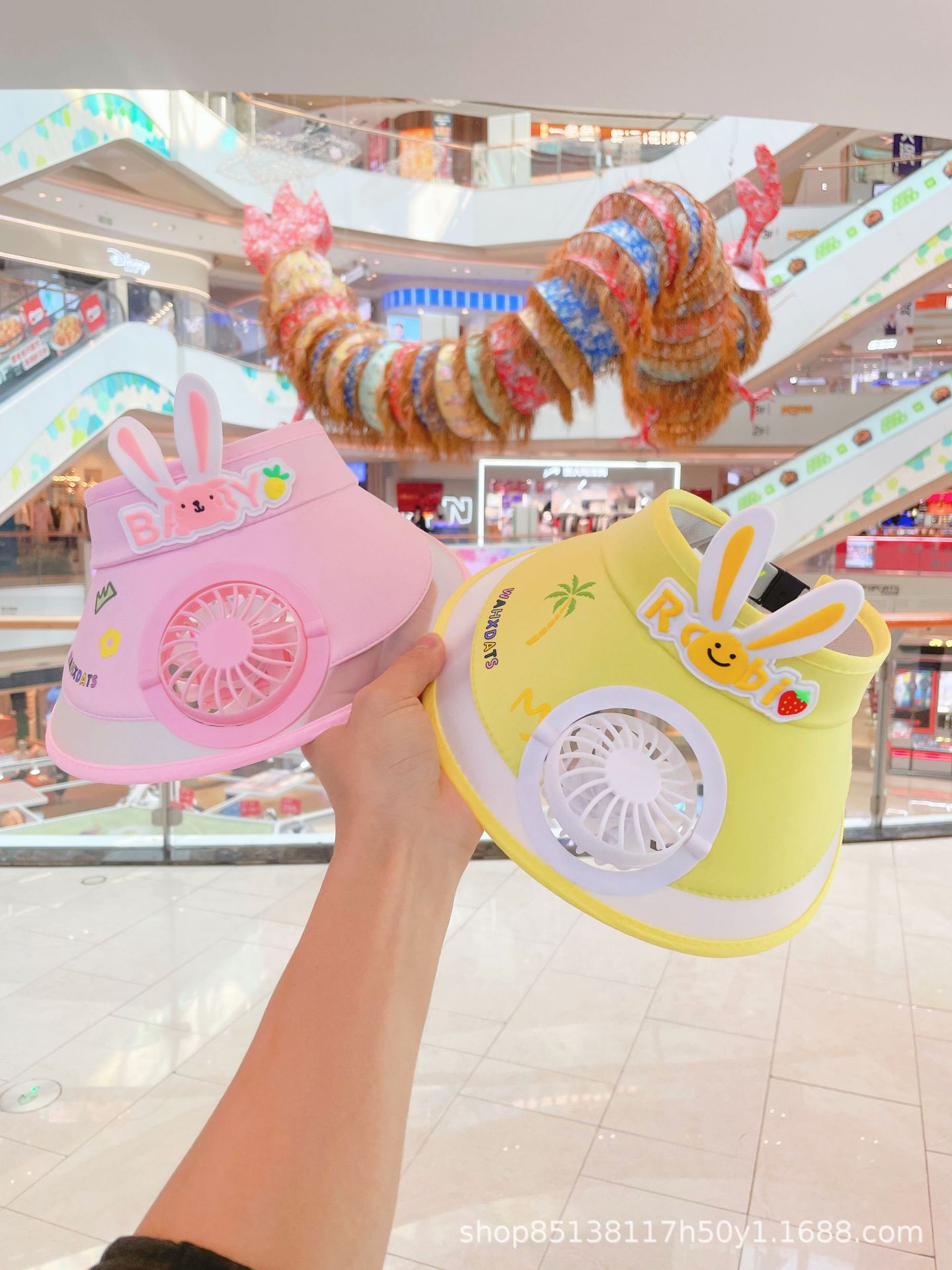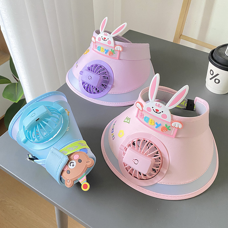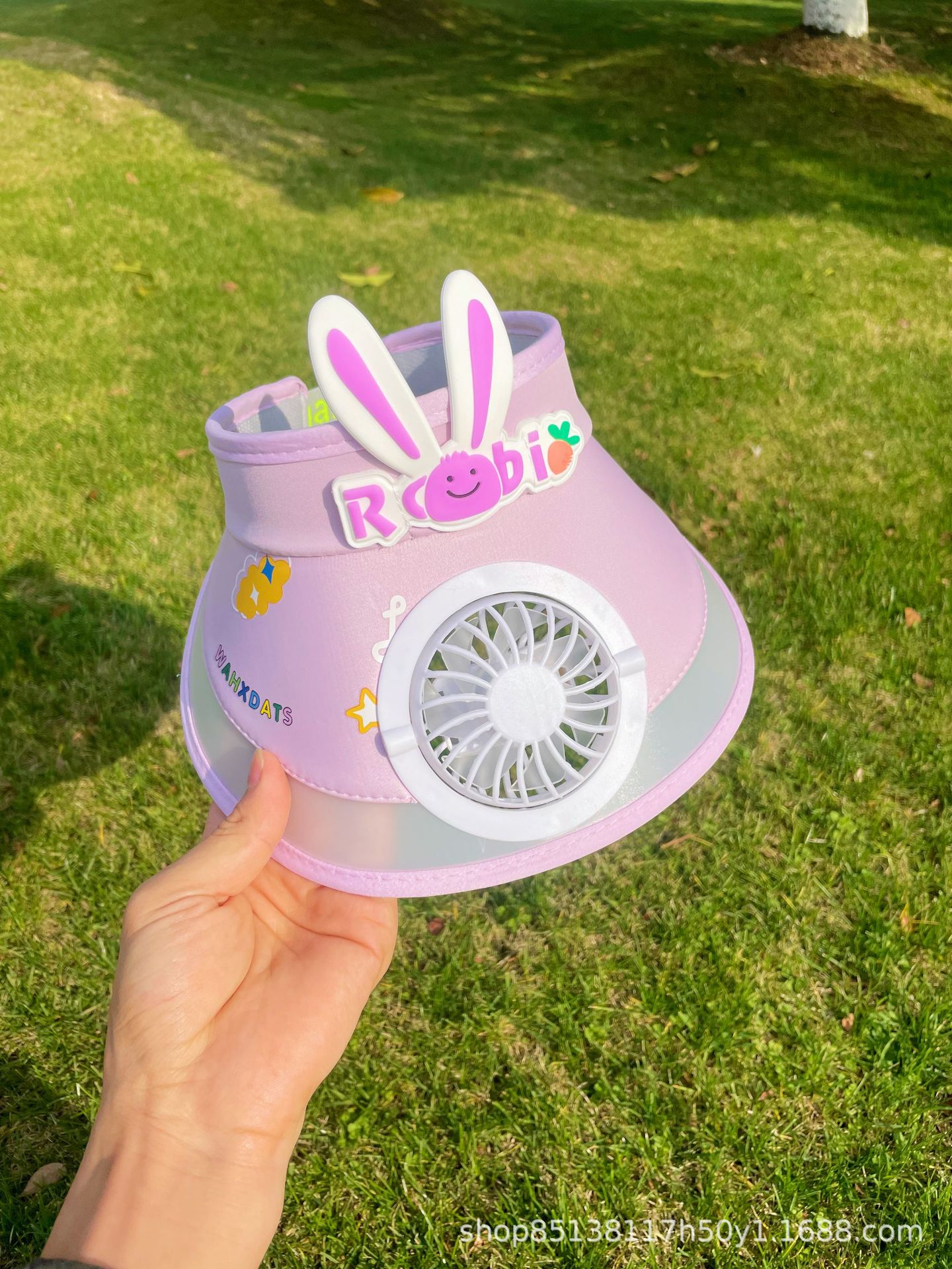 儿童带风扇空顶防晒帽子宝宝夏季新款小朋友男孩女童遮阳帽太阳帽