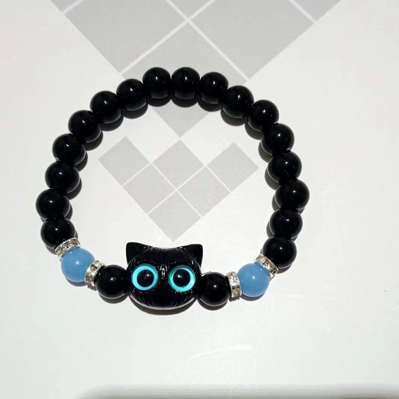 夜光呆萌黑白猫咪串珠手串轻奢小众闺蜜情侣可爱小猫发光手链手串