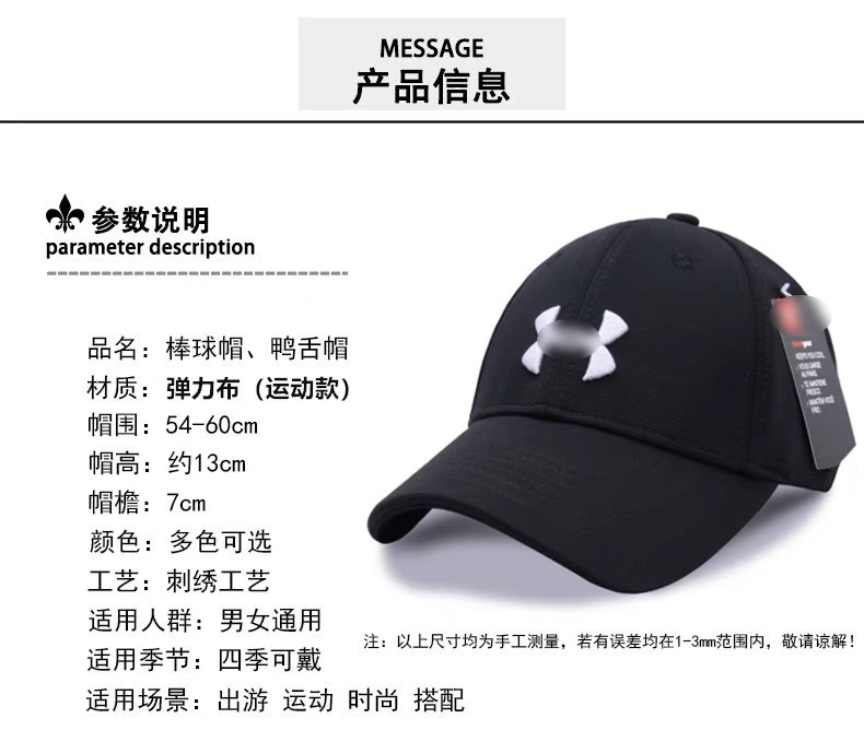 新款UA帽子男女秋夏百搭休闲刺绣棒球帽户外运动鸭舌帽防晒遮阳帽