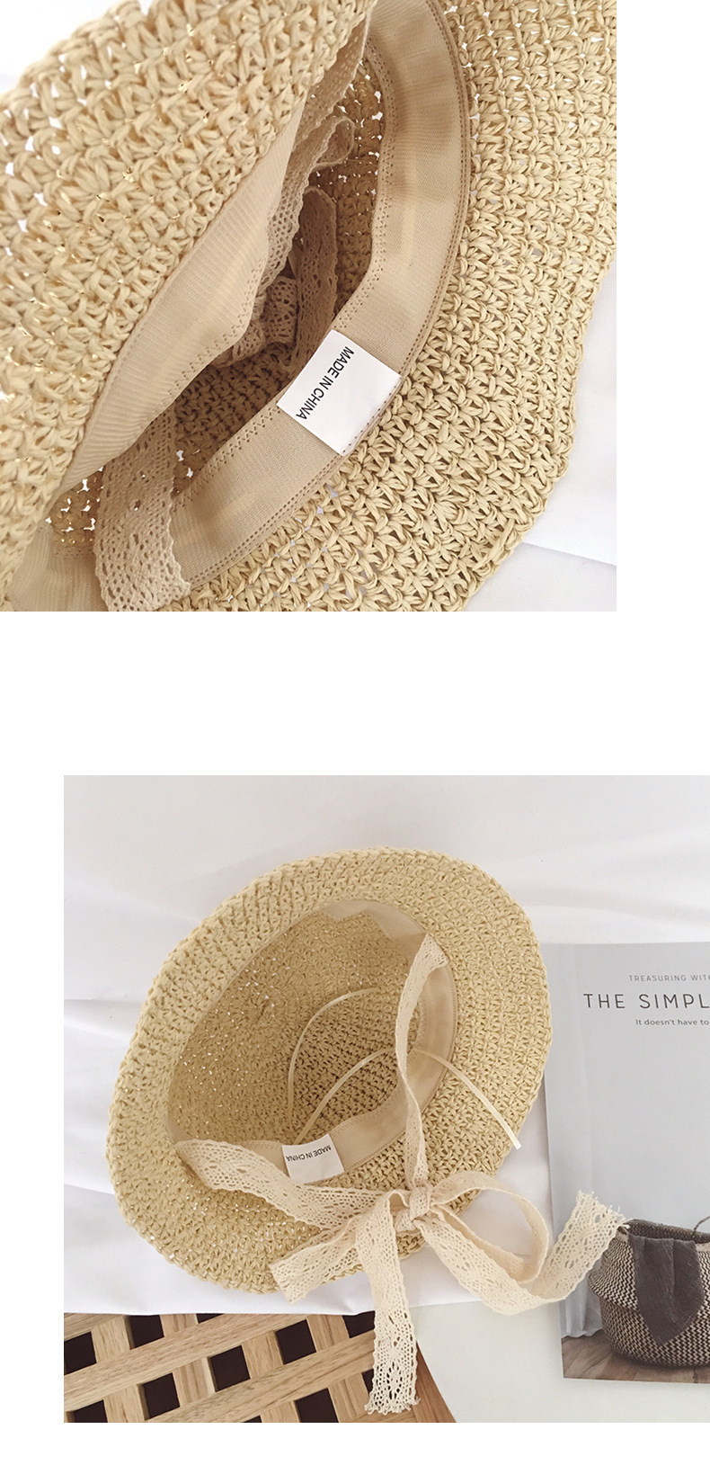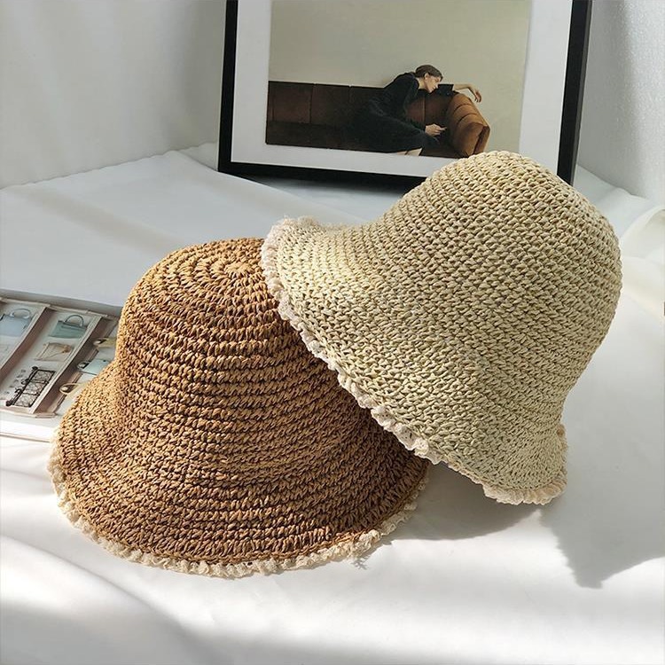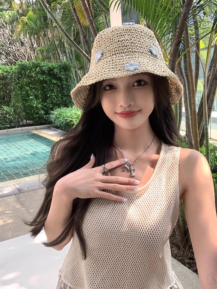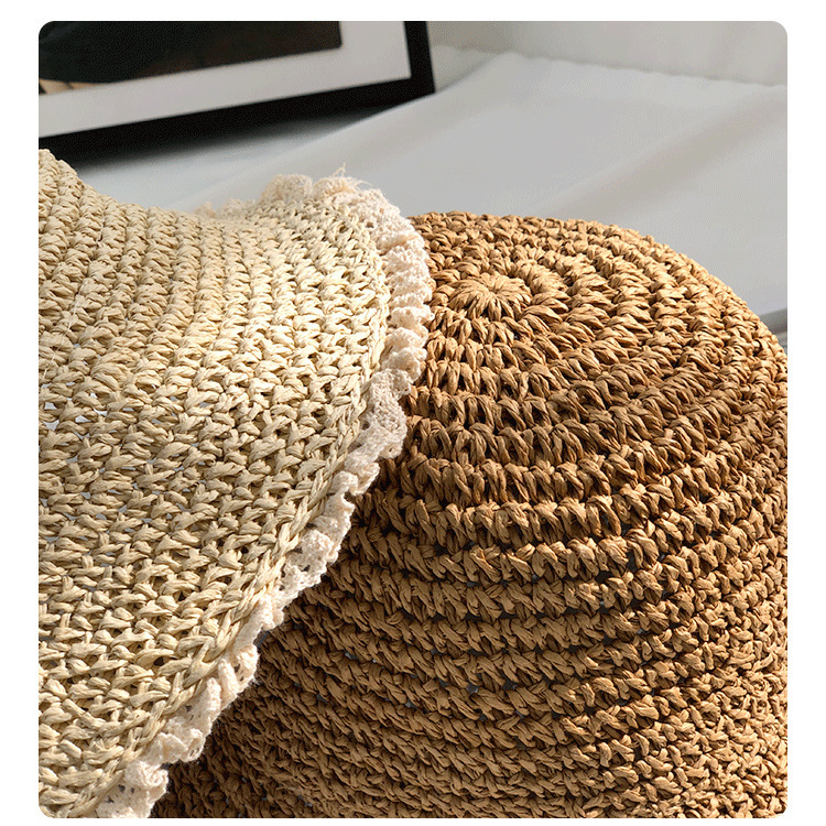 夏季手工钩针帽女式沙滩遮阳防晒透气时装草帽旅行户外折叠太阳帽