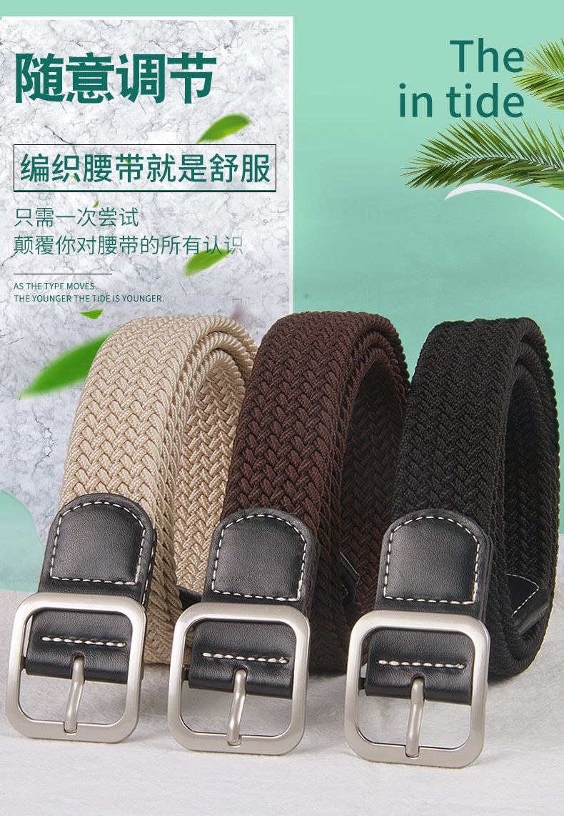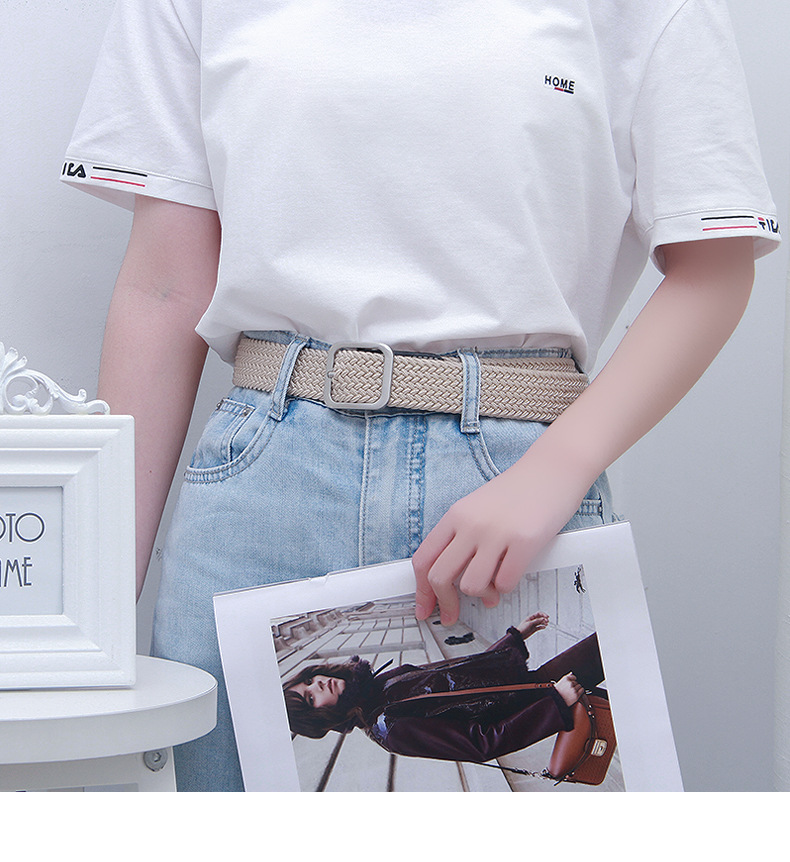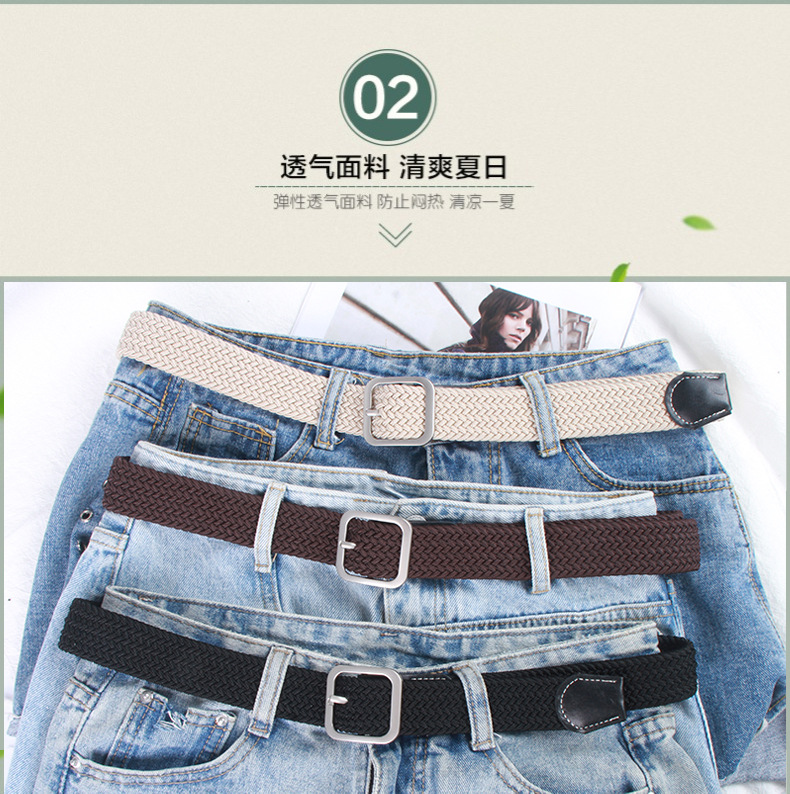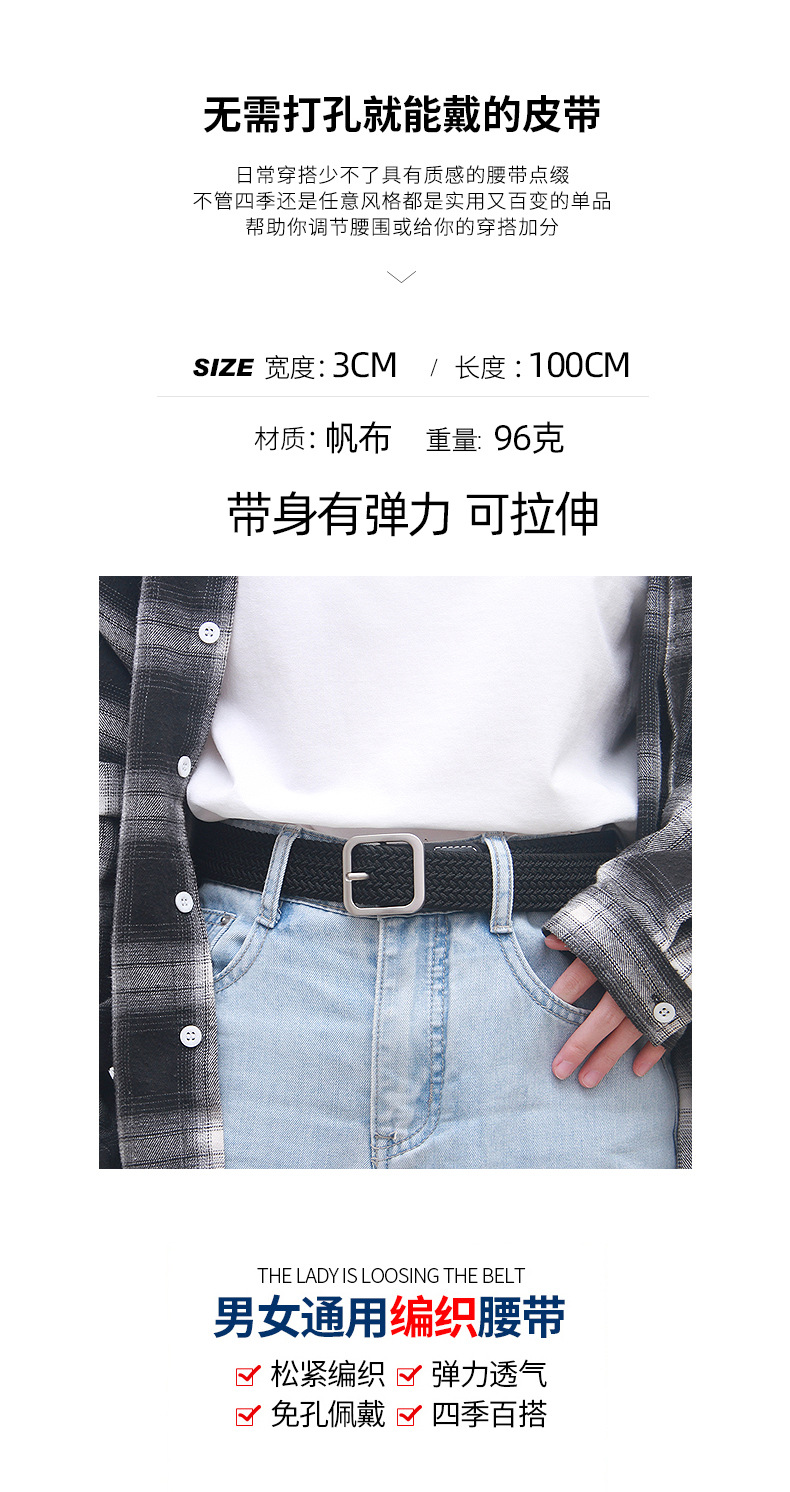 帆布编织腰带女士弹力松紧裤带男女韩版百搭休闲针扣皮带女学生