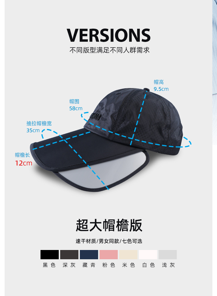 防晒棒球帽子夏季薄款加宽遮阳透气鸭舌帽大帽檐速干帽子跑步女