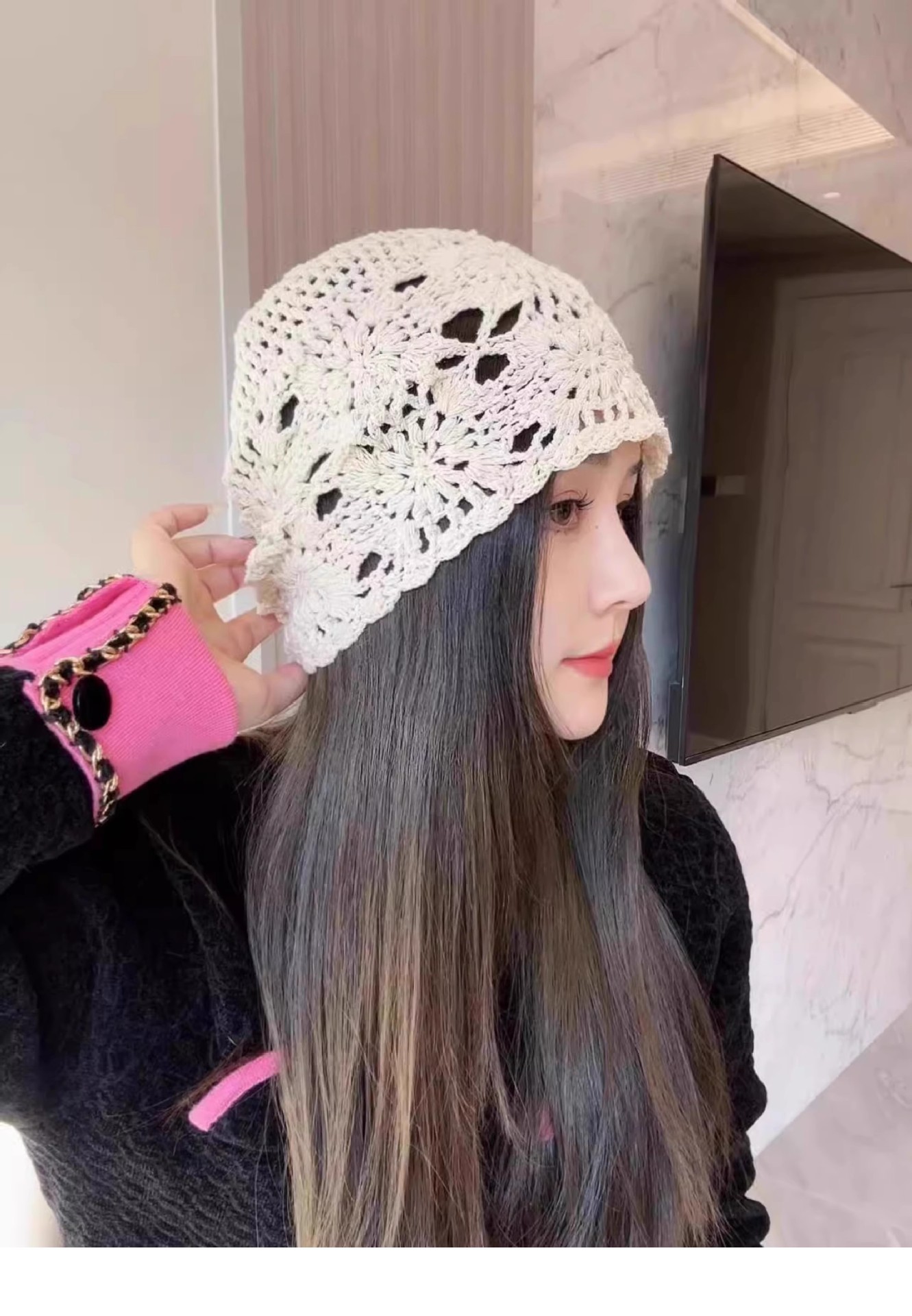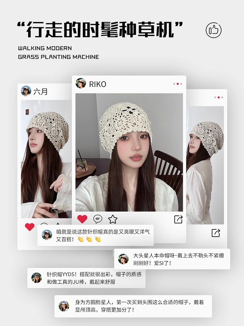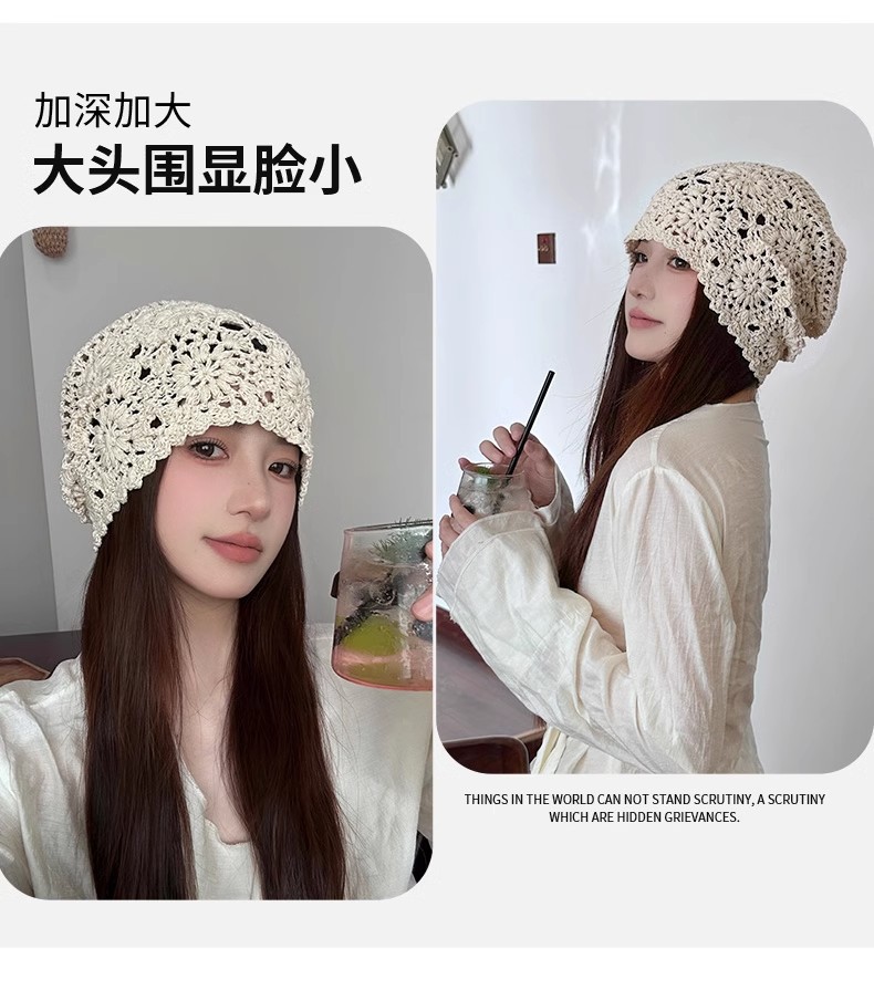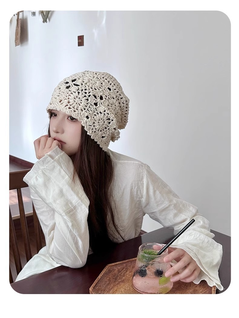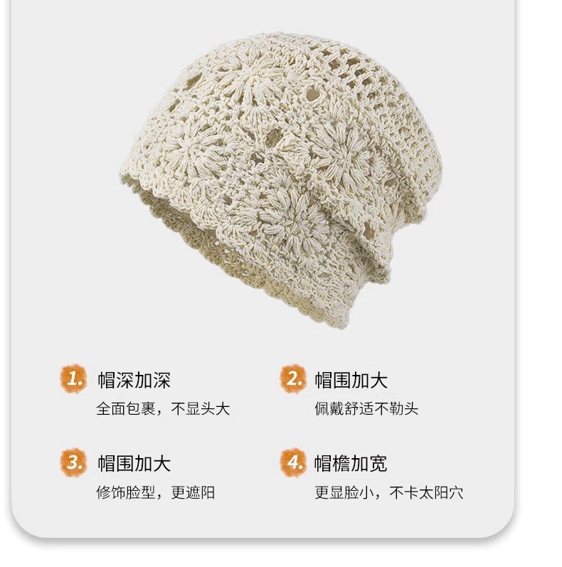 镂空编织包头帽子女日系薄款毛线帽2024新款针织帽堆蕾丝帽休闲