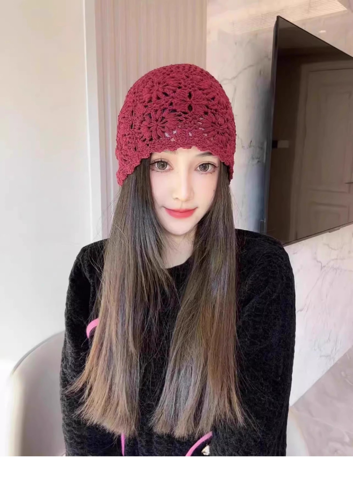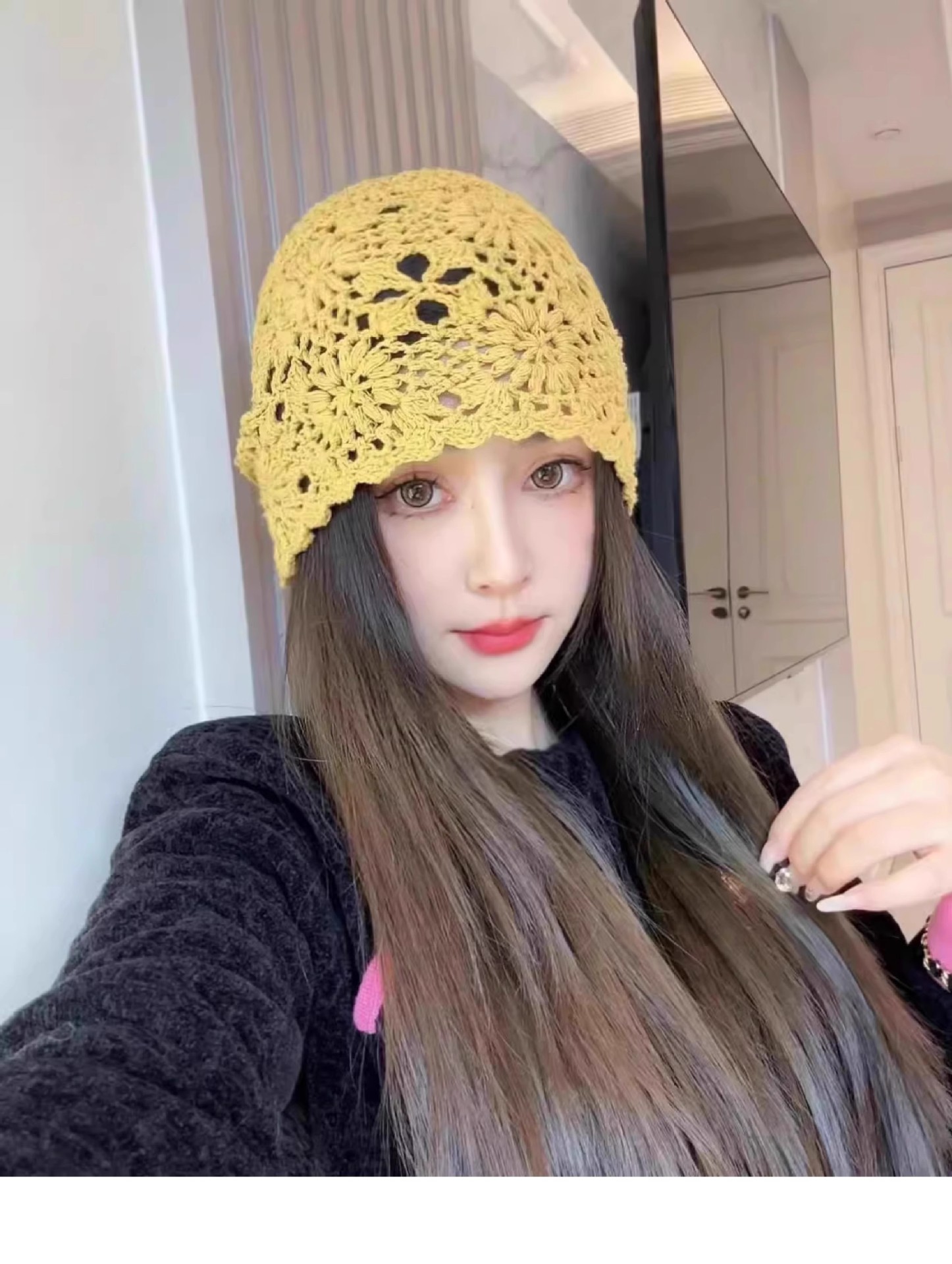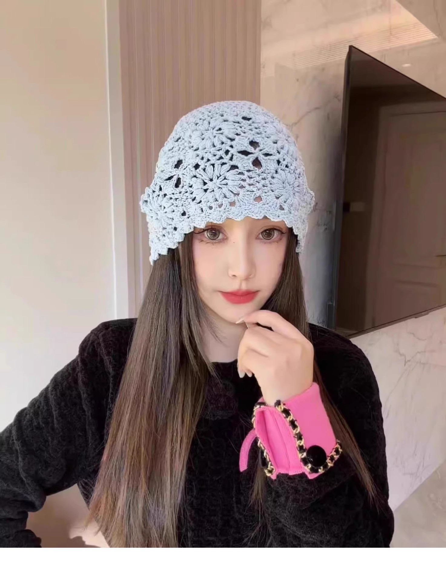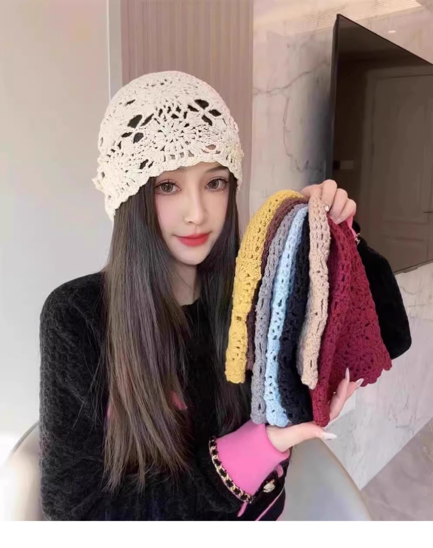 镂空编织包头帽子女日系薄款毛线帽2024新款针织帽堆蕾丝帽休闲